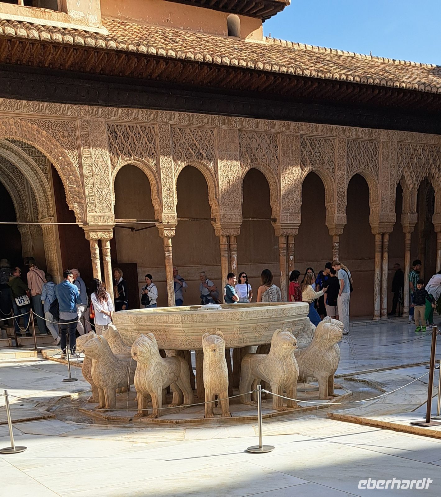 Zu den bekanntesten Teilen der Alhambra gehören die Nasridenpaläste, und der Löwenhof .Diese Elemente spiegeln die kulturelle Blütezeit der islamischen Kunst und Wissenschaft während des Mittelalters wider.