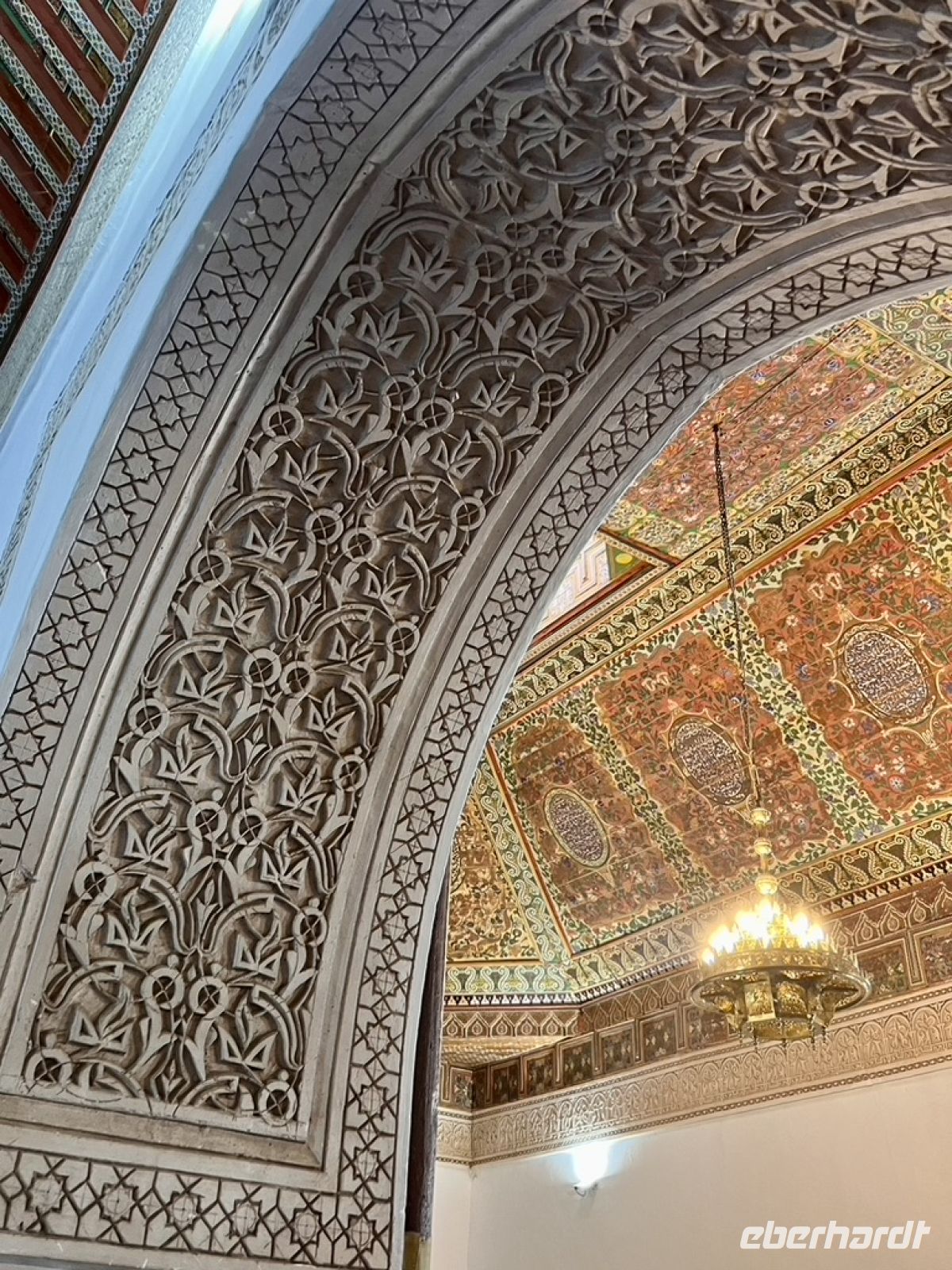 Die Besichtigungen von Bahia-Palast, Saadier-Gräbern und Souks vermittelten uns trotz Baustellen ein Gefühl für die Pracht der alten Königsstadt. Der Besuch im Berberhaus nahe dem Bab Agnaou war ein echter Höhepunkt: ein informativer und ehrlicher Vortrag, der uns das traditionelle Wissen der marokkanischen Pflanzenwelt näherbrachte.