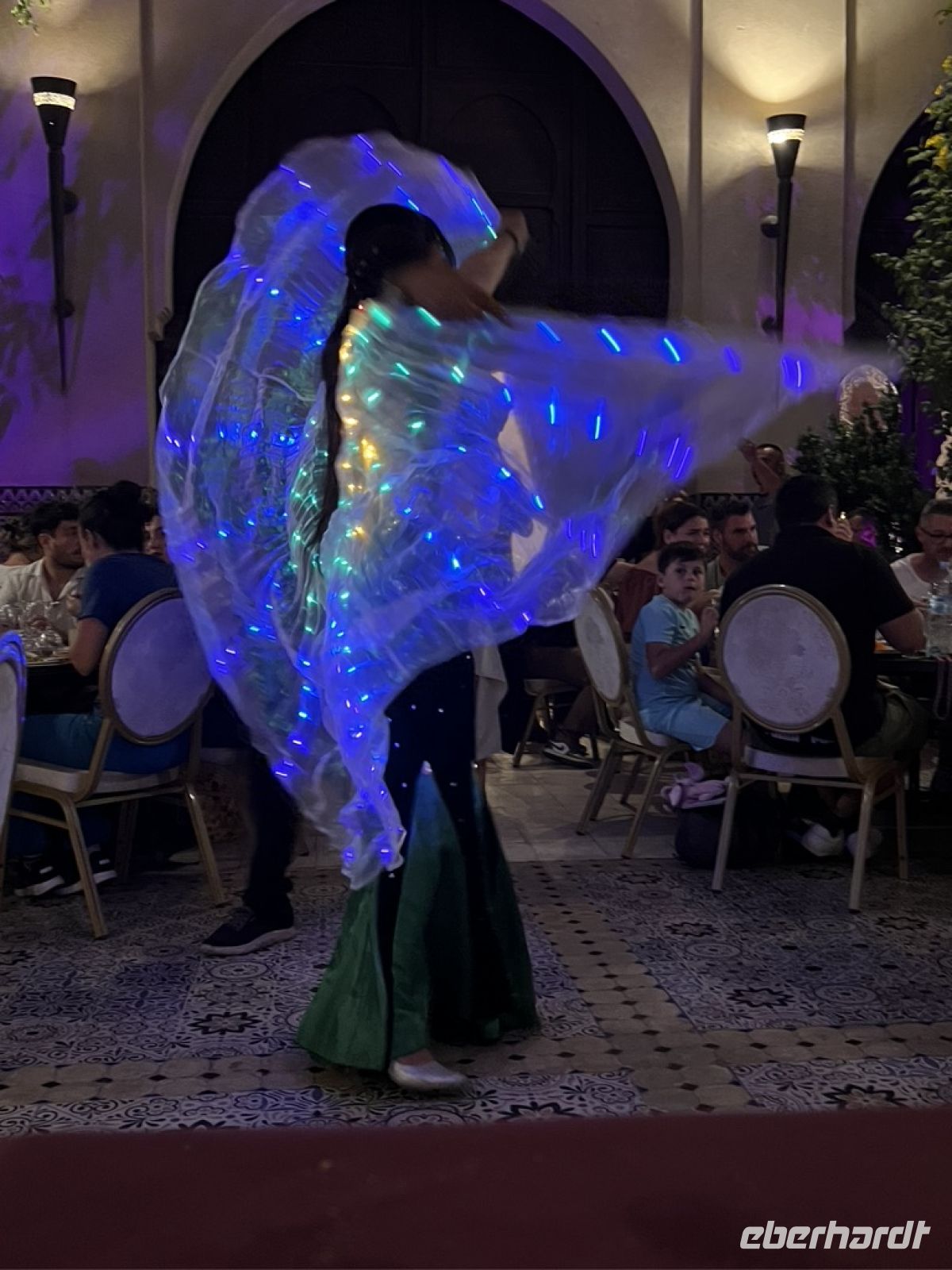 Etwas mehr eintauchen durften wir bei einem Orientalischen Abend mit diversen traditionellen Speisen, marokkanisch-andalusischer Musik, wozu ein Bauchtanz nicht fehlen durfte.