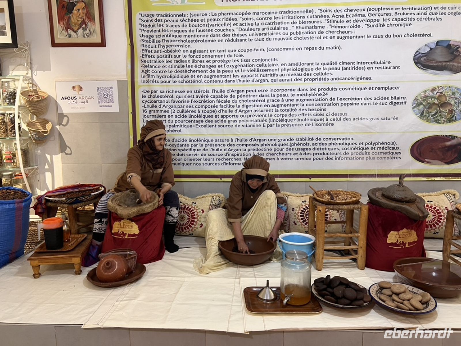 Der anschließende Besuch in einer Argan Kooperative, der kleine Spaziergang am Flusslauf entlang, dem Mittagessen mit prachtvoller Aussicht, der abschließende Besuch im bunten faszinierenden ANIMA-Garten krönte diesen Tag auf besondere Weise.