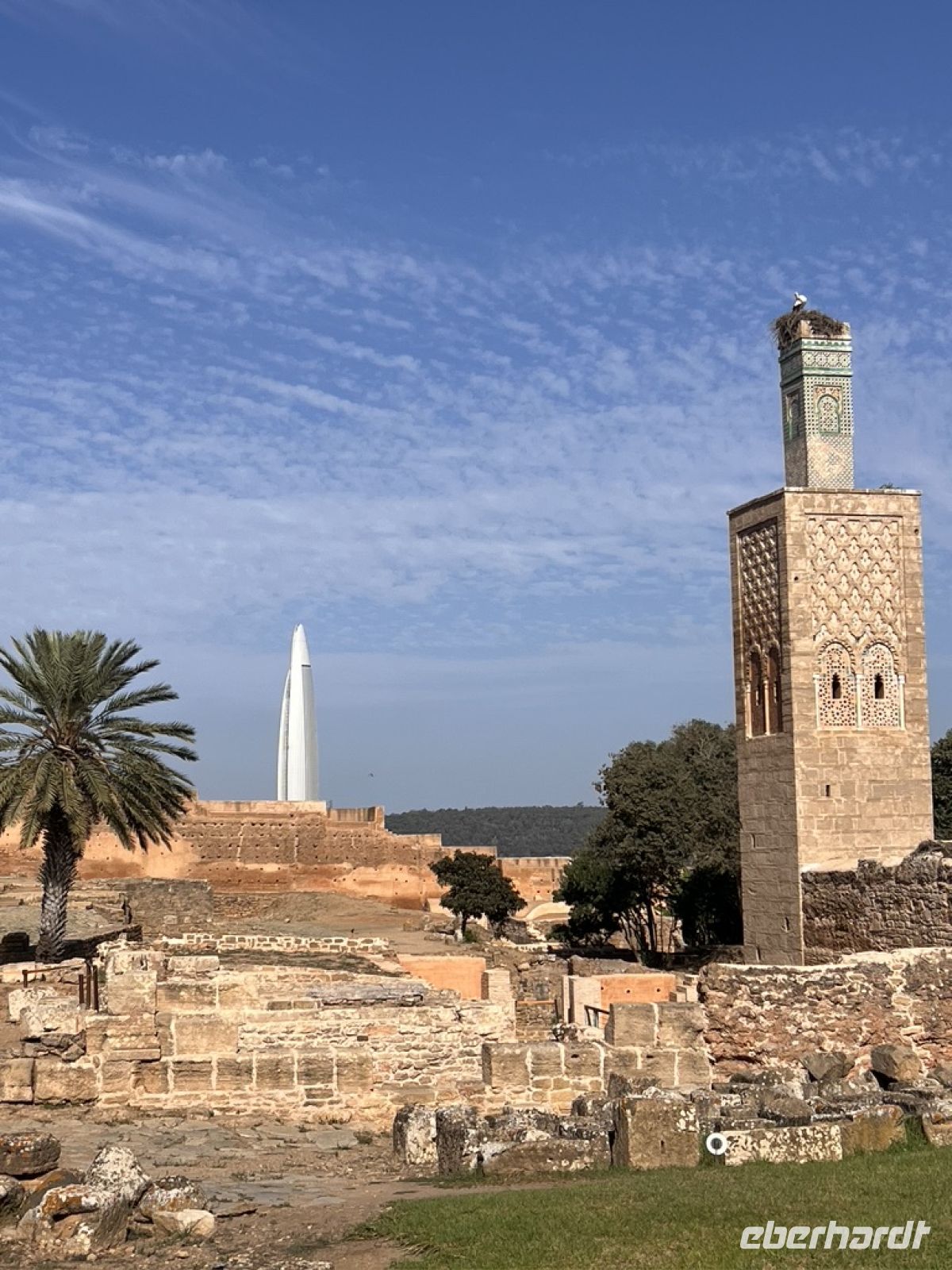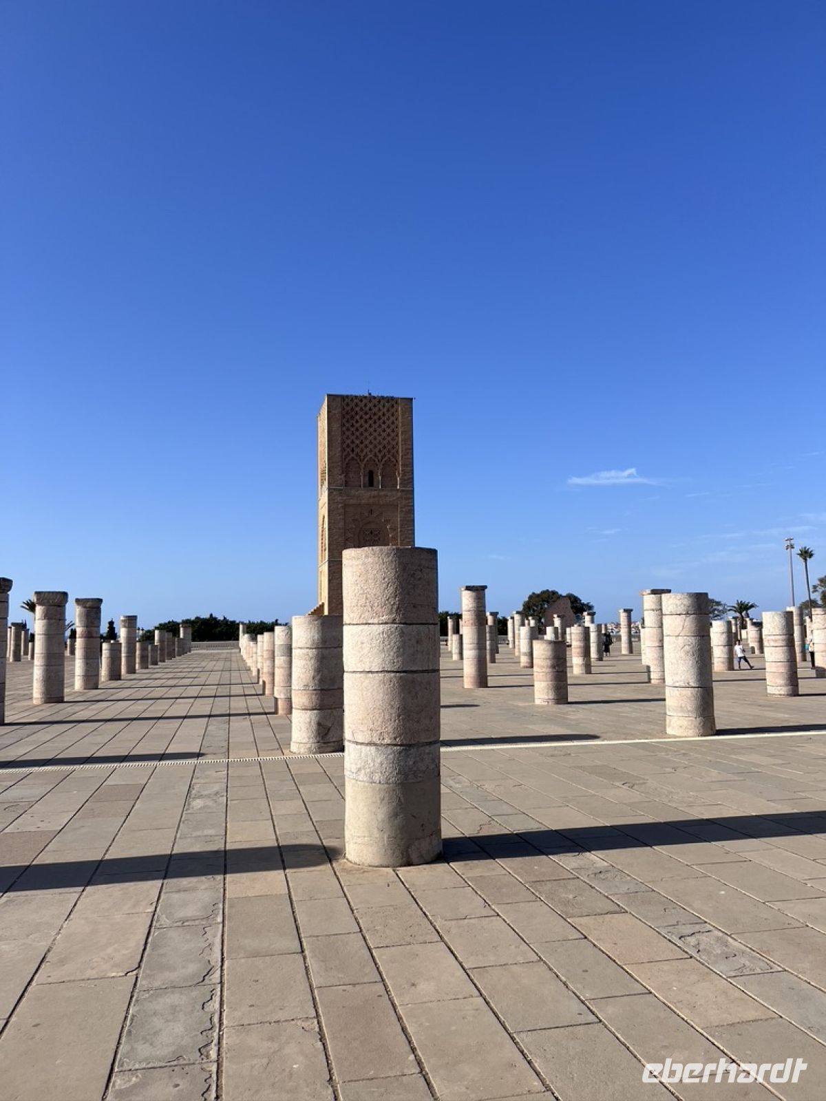 In Rabat, der Hauptstadt des Landes, erlebten wir eine moderne und gleichzeitig traditionelle Stadt mit lebendigen Straßen, Geschichte zum Anfassen wie das Wahrzeichen der Stadt – den Königspalast, die Chellah - eine Nekropole, das andalusische Viertel mit der Kasbah Oudaja und seinen Gärten, letztendlich dem Wahrzeichen der Stadt - dem Hassanturm mit Mausoleum.