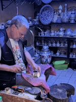Der Spaziergang durch Fès zeigte uns eine unfassbare vielfältige Medina, Handwerker, die noch wie vor Jahrhunderten arbeiten, die berühmte Gerberei oder Weberei… es war ein Spaziergang voller Atmosphäre im lebendigen Museum… vielleicht der schönste der ganzen Reise – trotz Hitze, Enge und Tempo.