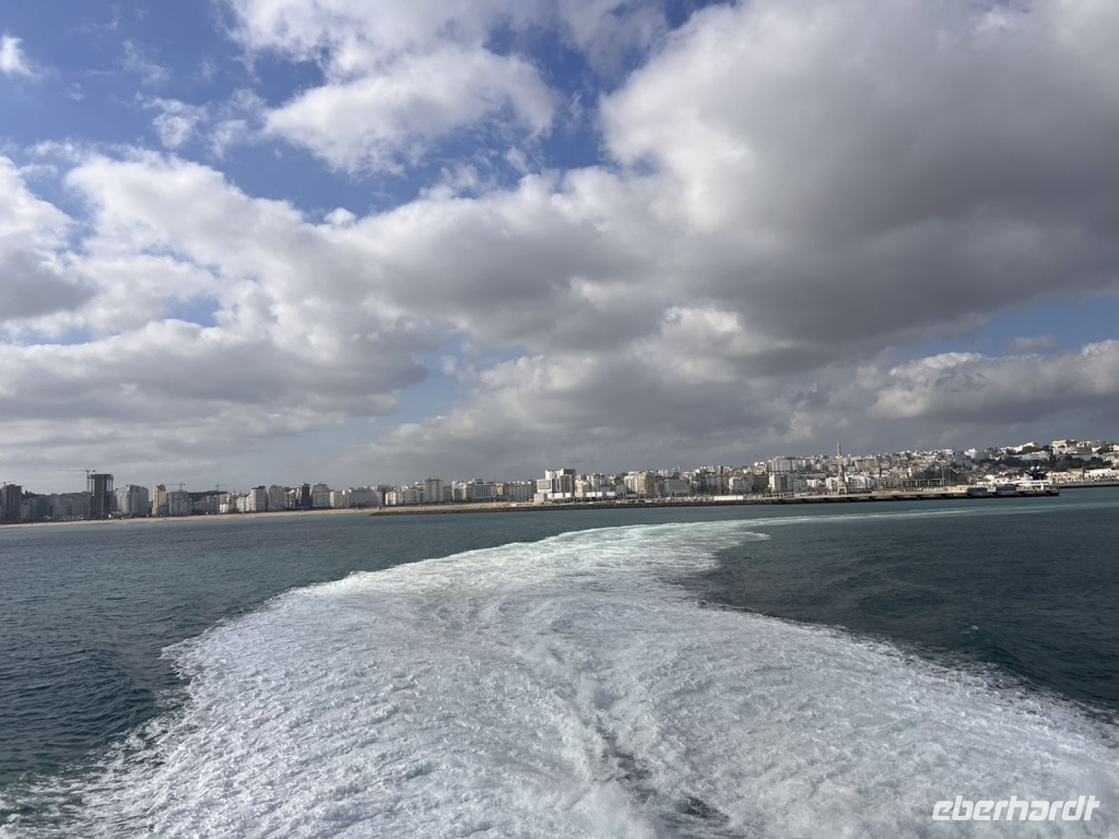 Die morgendliche Überfahrt nach Tarifa verlief problemlos. Vom wellenummantelten schnell fahrenden Katamaran werfen wir noch einmal einen Blick zurück nach Afrika. Europa naht…