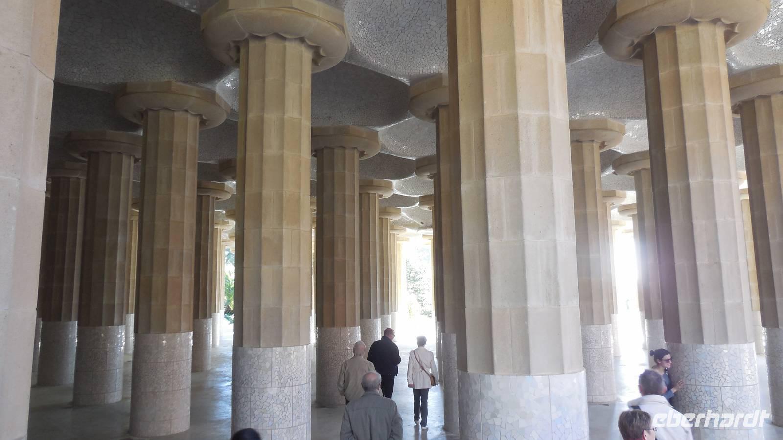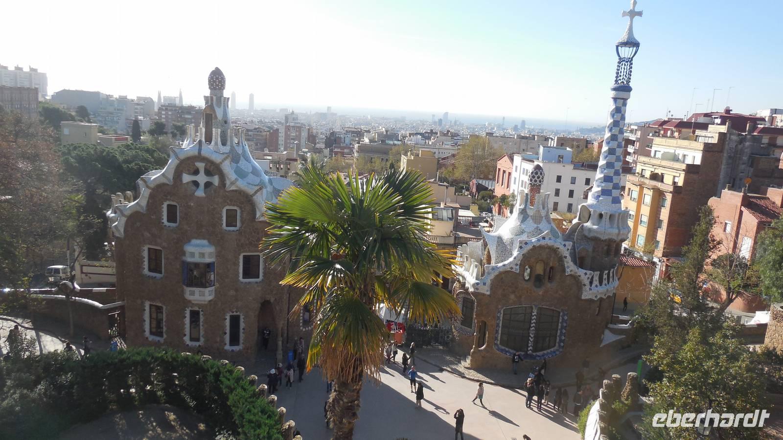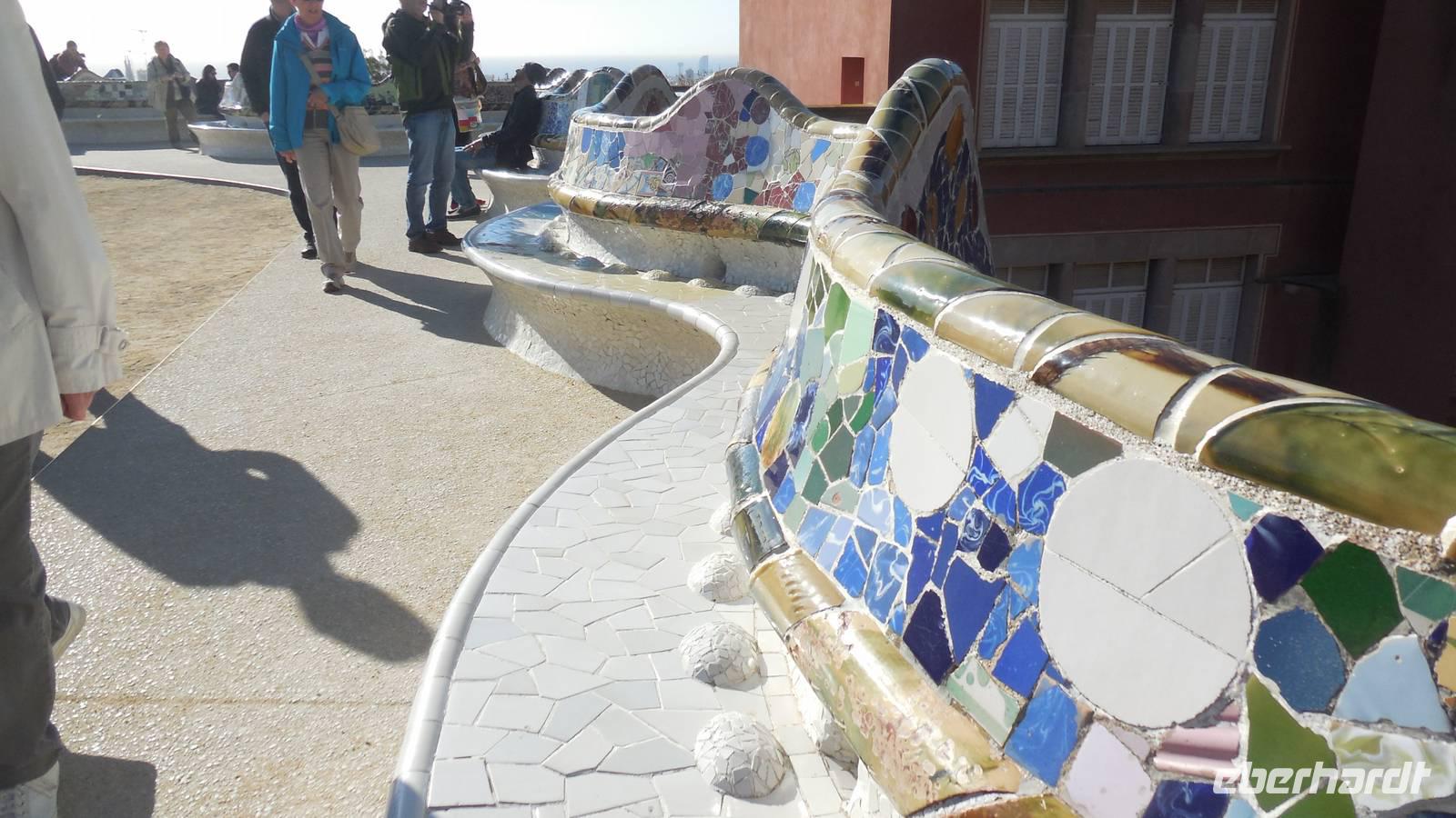 Wir beginnen die Rundfahrt entlang der Vila Gracia in Richtung Parc Güell. Bei einer Besichtigung durch den schönen Garten lernen wir die Ideologie von Gaudi kennen, wie er stets zwischen Kunst, Natur und Religion die Harmonie sucht. Ein perfektes Beispiel gibt eben dieser Park: Regenwasser fließt von oben hinab und wird durch Leitungen durch die Drachenmünder wieder ausgespeist und verschafft somit eine Art Springbrunnen ohne Motorik. Er arbeitet auch mit vielen Natursteinen und Keramikscherben, beispielsweise auf der 110 Meter langen bunten Keramikbank. Anschließend bewundern wir die verschiedensten Kakteenarten und einen fantastischen Ausblick über den Hafen von Barcelona im Kakteengarten.