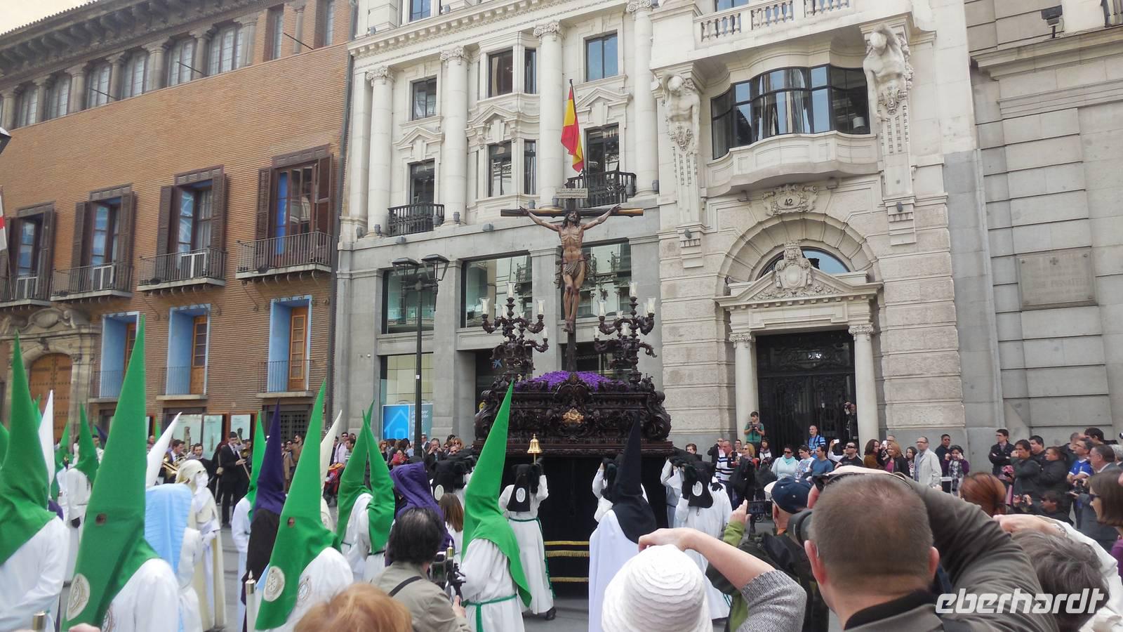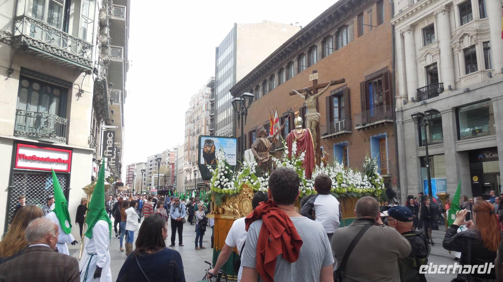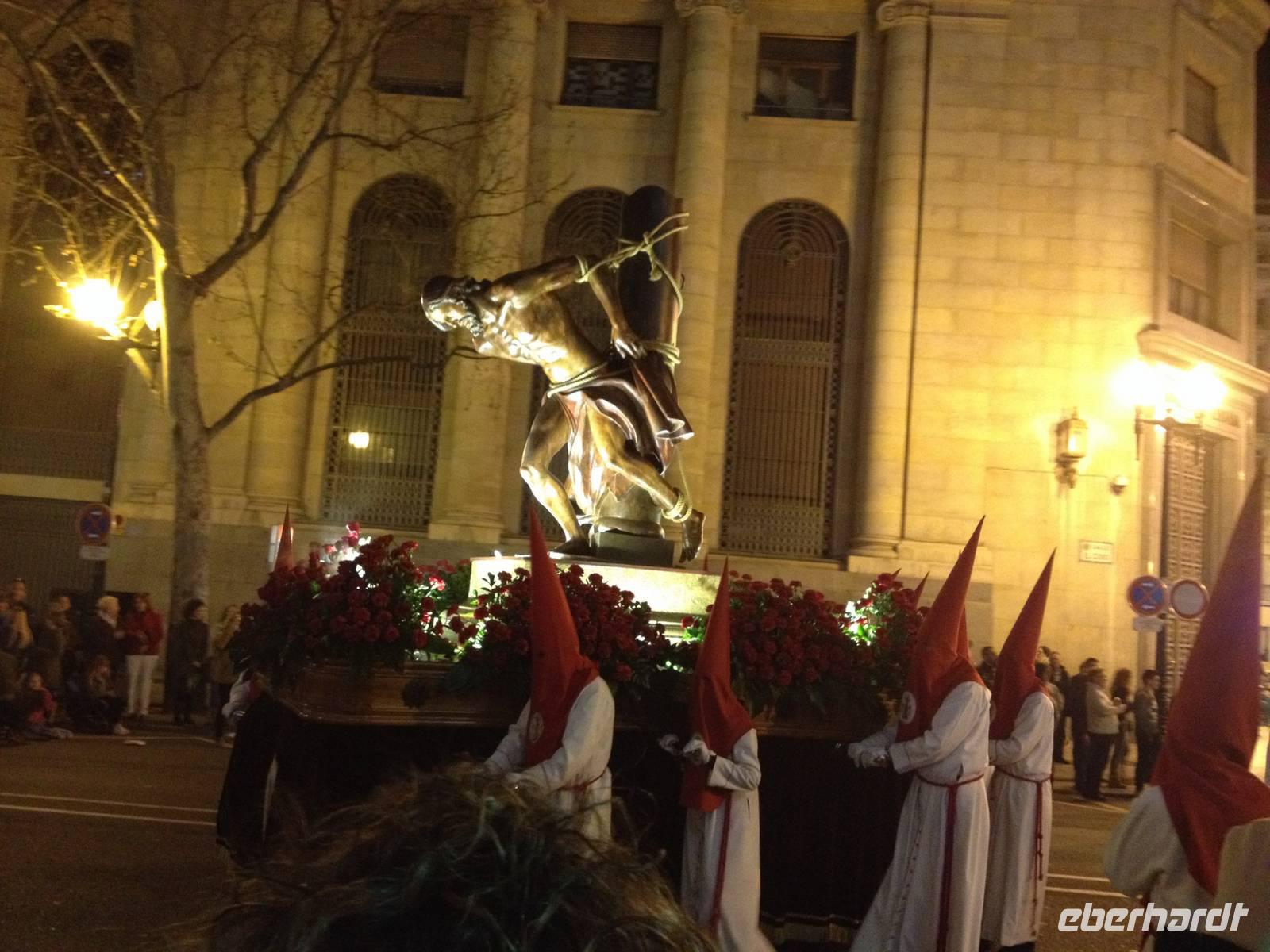 Eine Prozession überraschet uns auf unserem Weiterweg. So konnten wir zwei verschiedene „Pasos de Semana Santa“, die getragenen Altare mit einer Christus- oder einer Madonnastatue, sowie auch die typische Kleidung zu Ostern sehen.