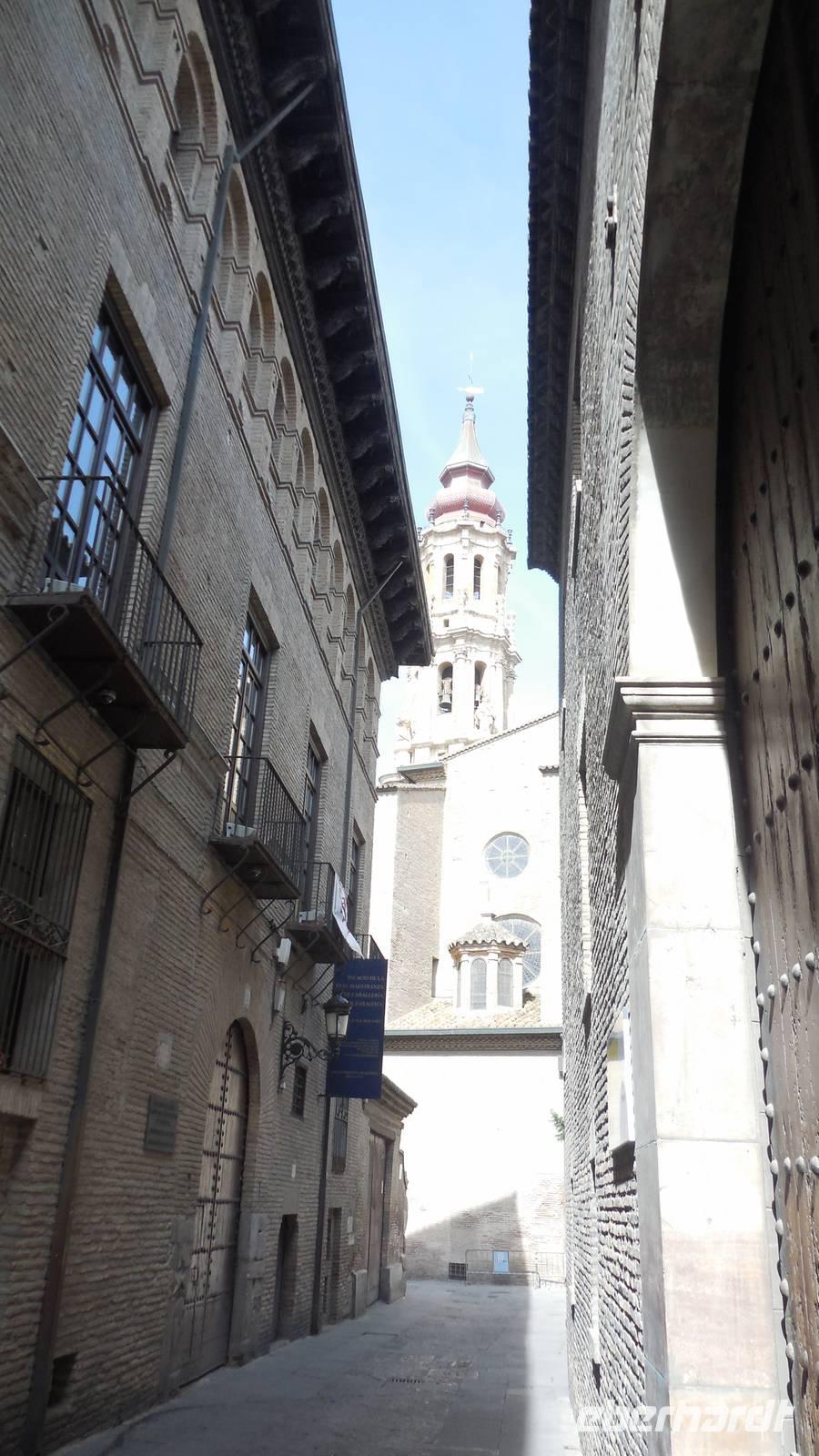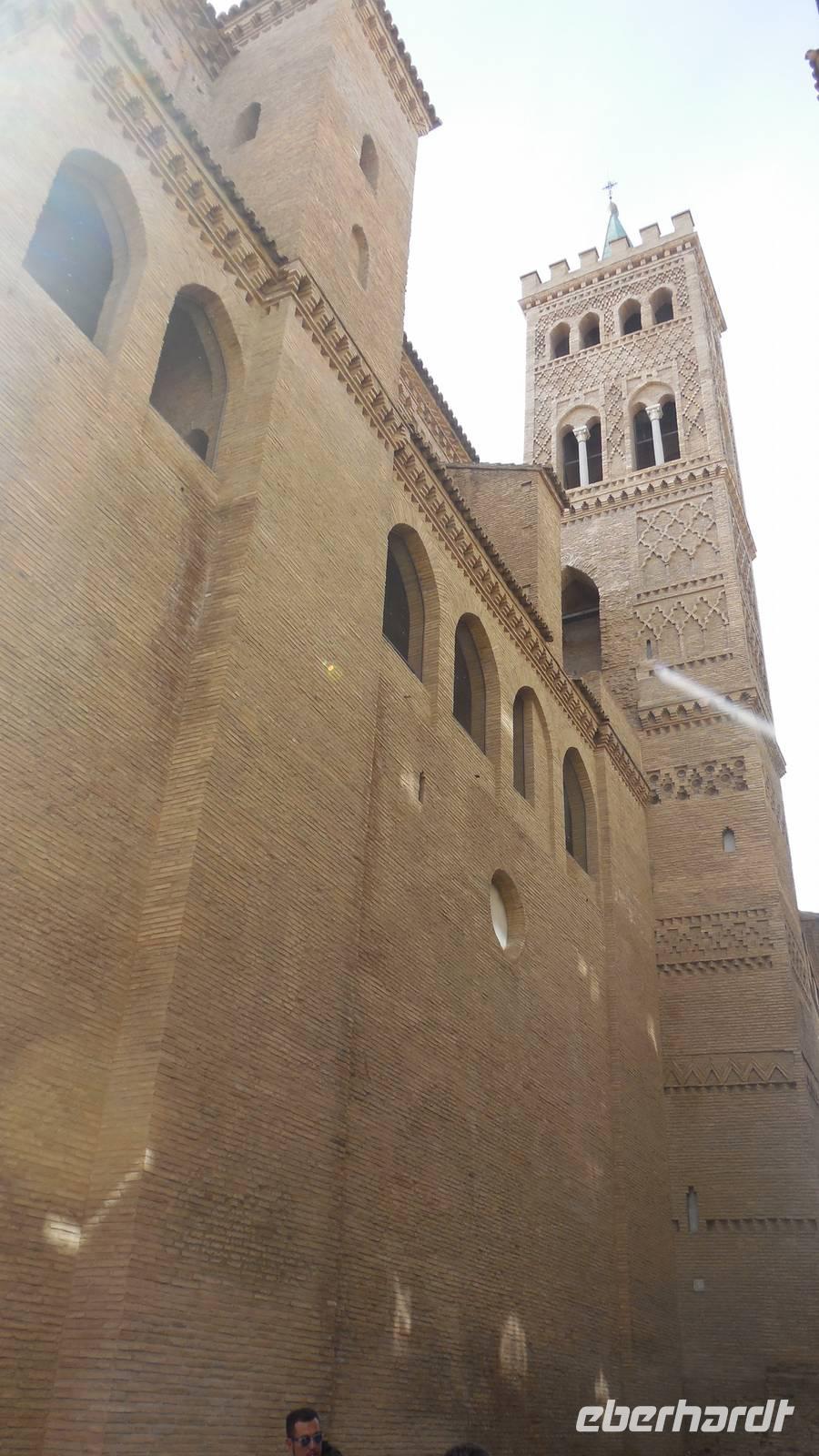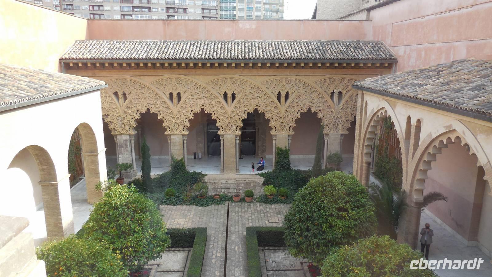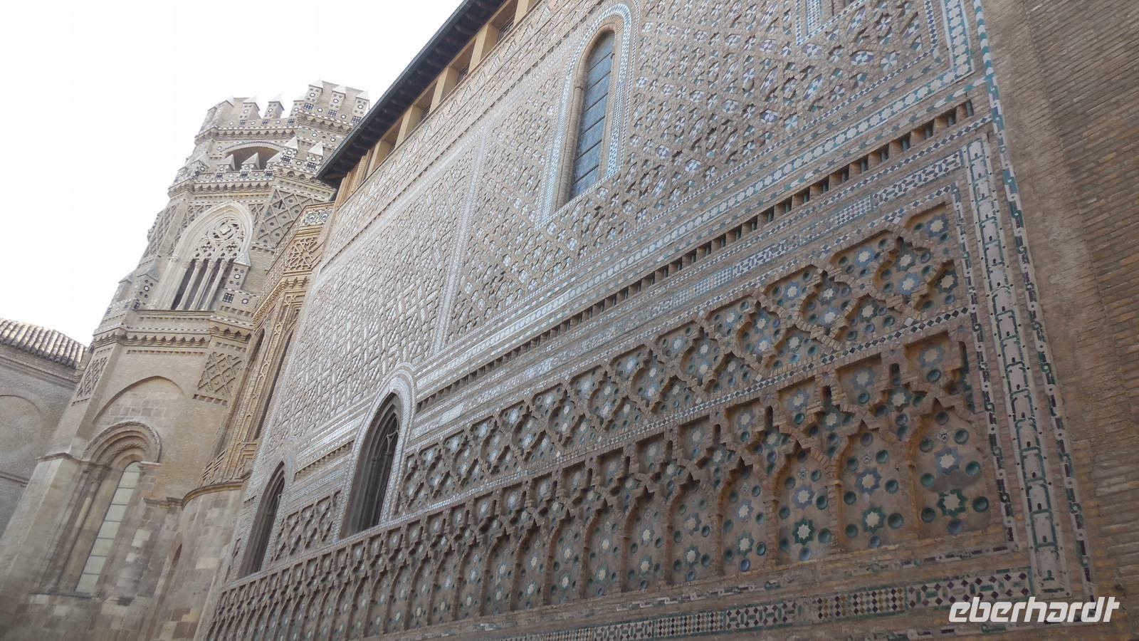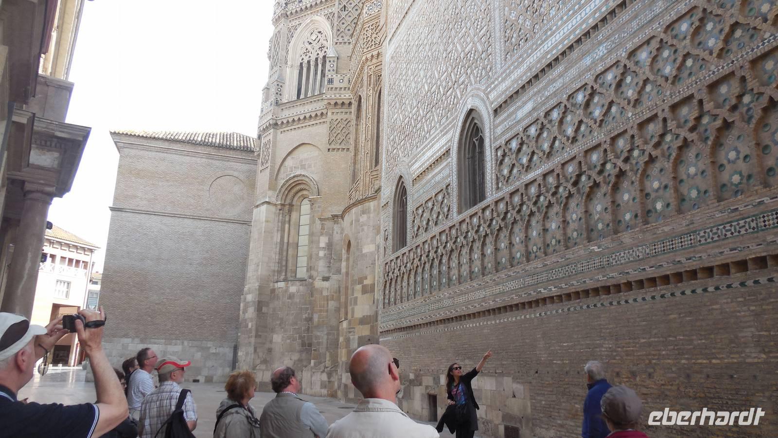 Nach schönen Erlebnissen in Barcelona verlassen wir der Region von Katalonien und begeben uns durch Lleida und die Monegros Wüste in Richtung der Region Aragón, um Zaragoza zu erreichen. Unter der Leitung von Beatriz gehen wir nicht nur durch die Stadt, sondern machen auch eine kleine Reise in die Vergangenheit. Der erste Halt war der Condes de Morata Palast, eine der besterhaltenen Villas mit der Mudéjar-Kkunst. Wir haben erfahren, dass die Mudéjar-Kunst nur in Spanien vertreten ist und an verschiedenen Monumenten zu erkennen sind.
