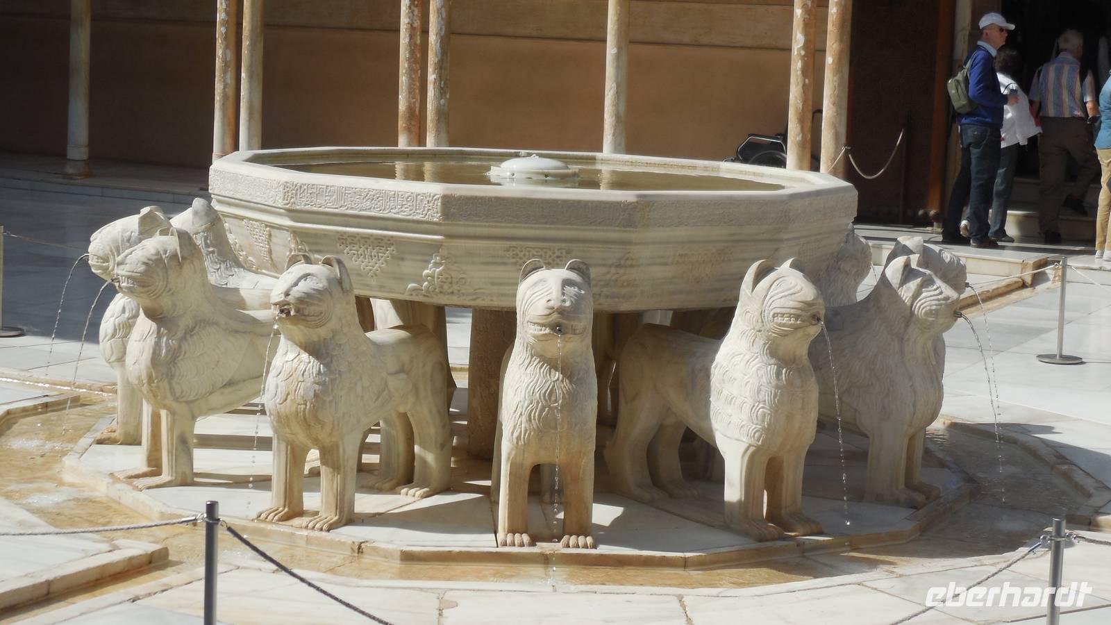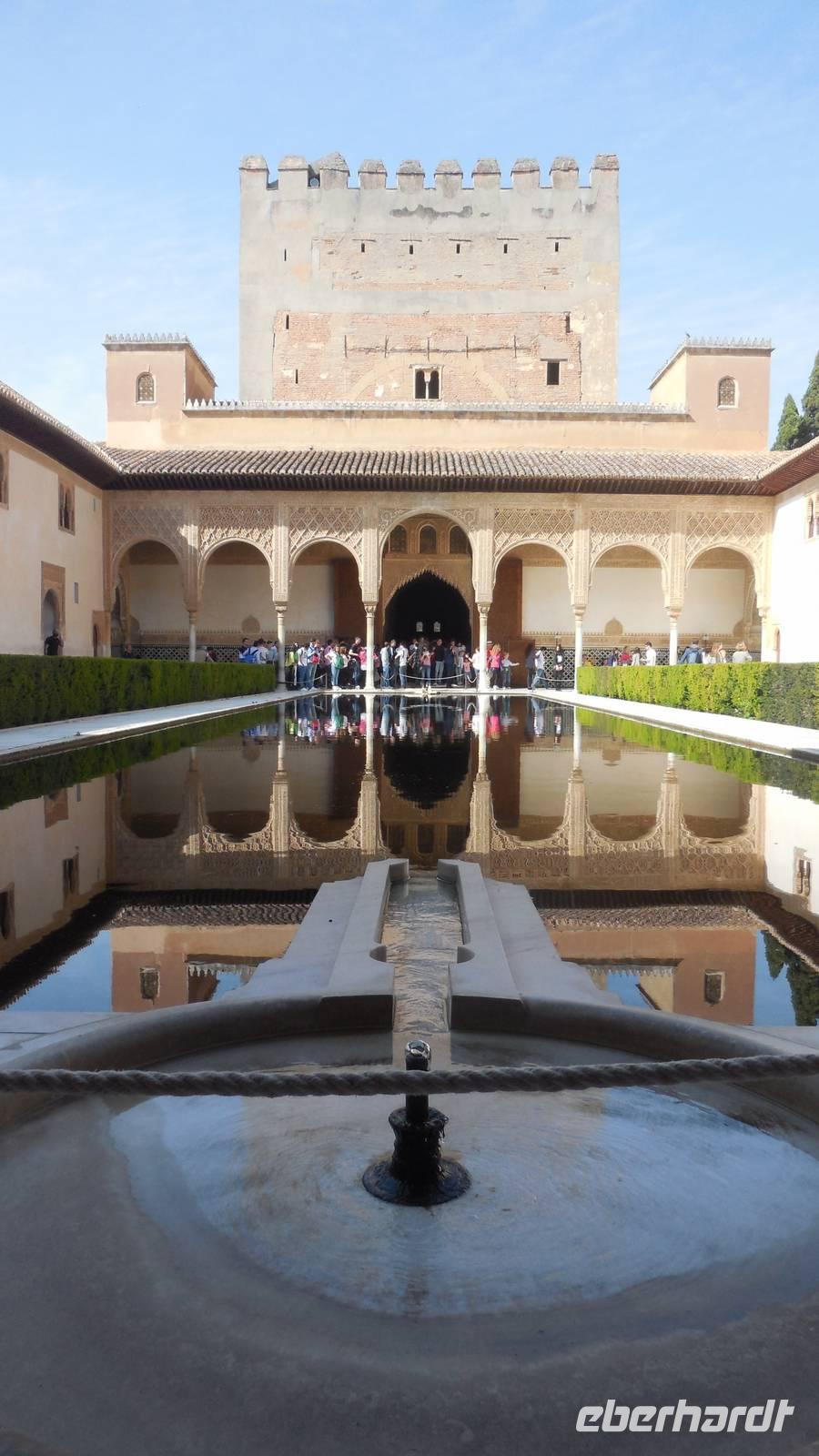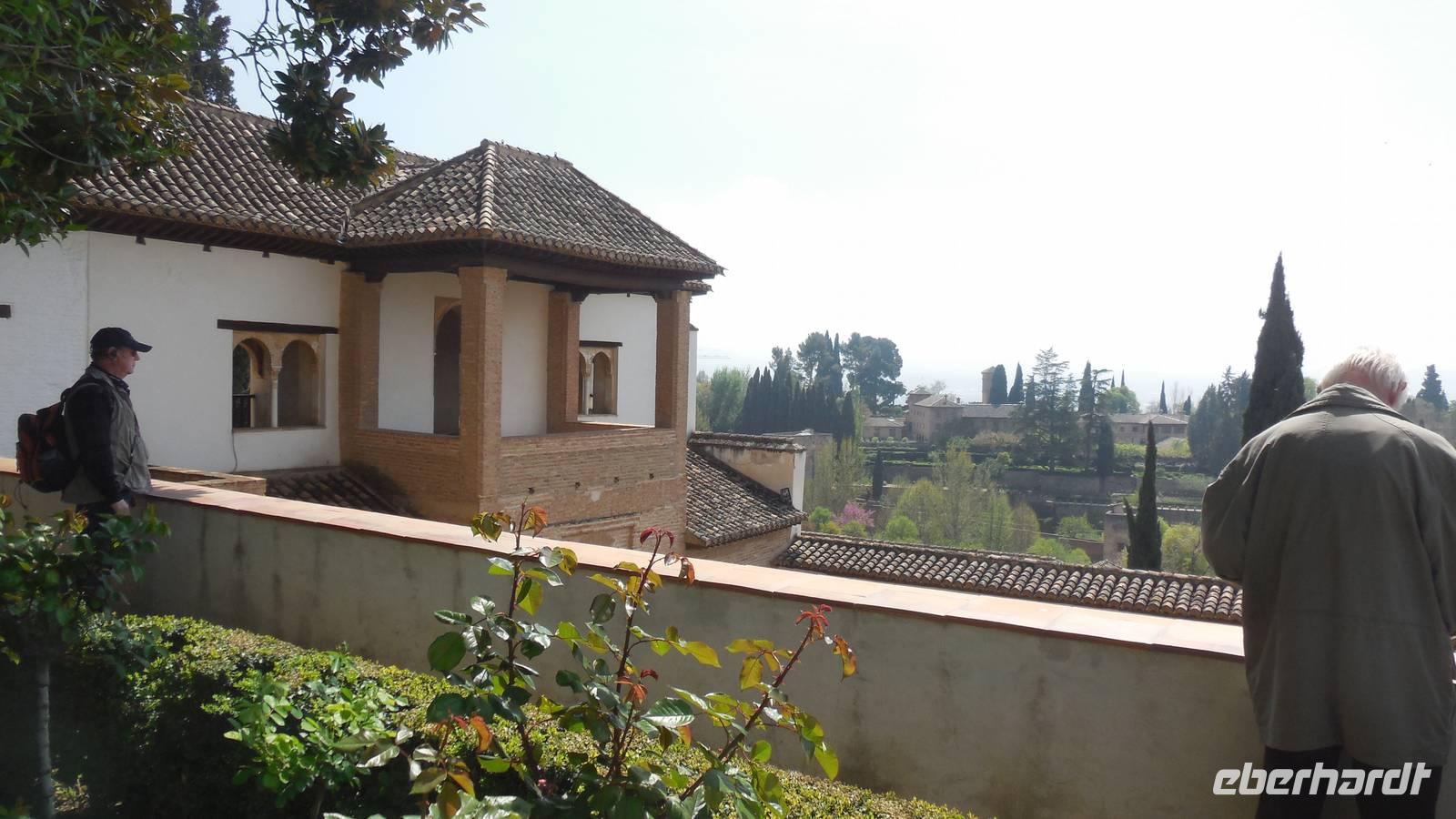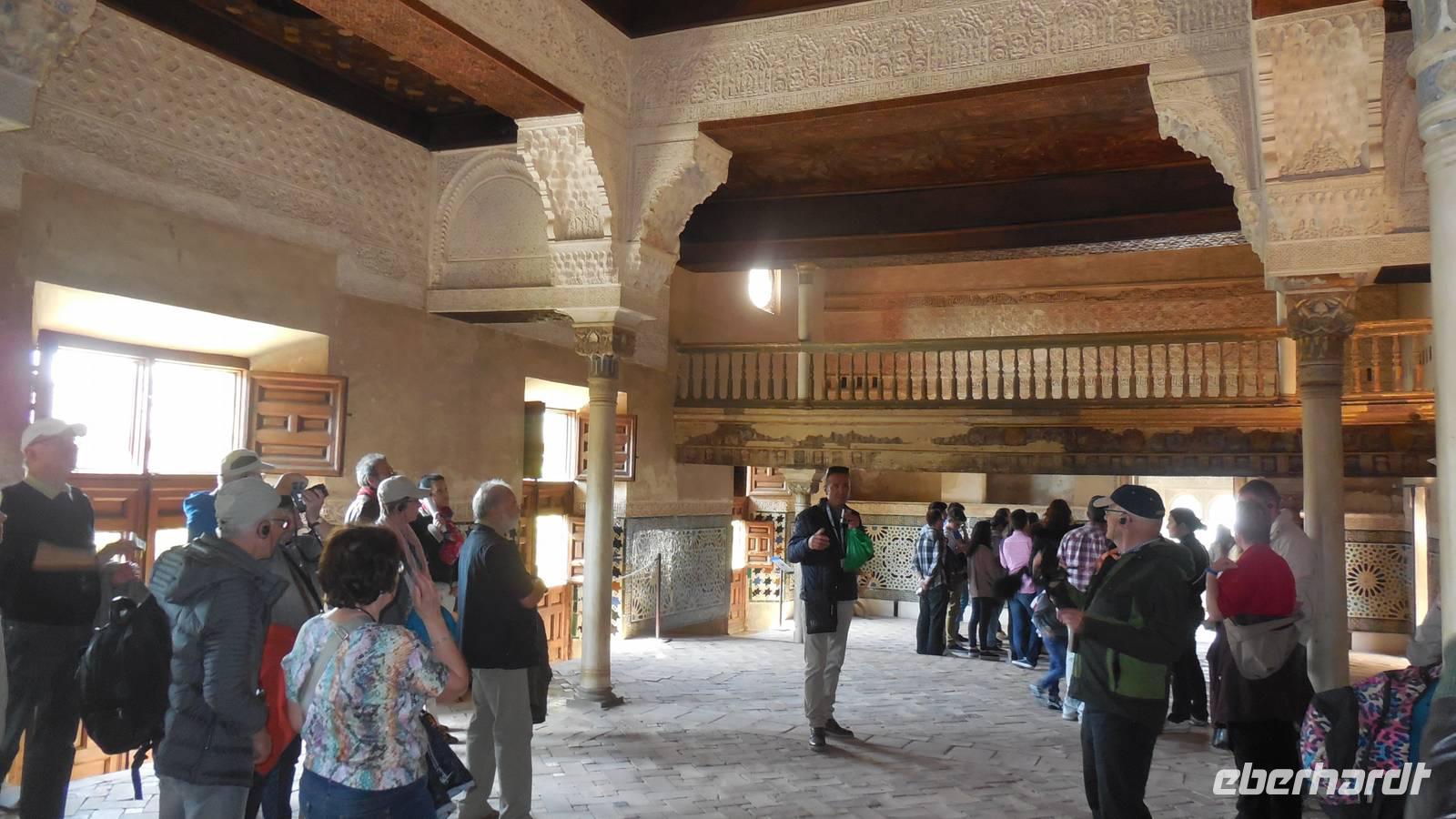 Endlich beginnt unser Besuch der Alhambra und der Generalifen. Durch die wundervollen Gärten spazieren wir zum Sommerpalast, um einen herrlichen Blick über Granada zu genießen. Wir sehen die Mauern der Alhambra, die Sedimente der ältesten Gebäude sowie ihr Abwehrsystem. In diesem Teil liegt auch der Parador San Francisco. Weiter bergab finden wir die die Santa María Kirche, ein altes arabisches Bad und den Palast von Karl V mit einer fantasischen Akkustik. Wir gehen weiter in den Nazarien-Palast. Dieser Palast zeigt die ganze Pracht und die Schönheit von diesem alten Königsreich. Jeder Raum ist besonders und unterschiedlich gestaltet. Wie sagt unser lokaler Reiseleiter Pedro gern: “in Crescendo!”, was bedeutet, dass wir jeden Tag einen schöneren Palast als der zuvor erleben werden. Lange in Erinnerung wird uns der Innenhof mit dem fantasitschen Löwenbrunnen bleiben. Dieser sehr aufwändig geschmückter Mamorbrunnen wurde im 11. Jahrhundert nach Christus gebaut. Die zwölf Löwen repräsentieren die Zwölf Stämme Israels. Man sagt, aus dem Löwenbrunnen entspringt die Quelle des Lebens, die schöpferische Kraft des Wassers. Der gesamte Hof wird von 124 Säulen umschlossen. Das arithmetische Mittel aus 124 ist die Sieben und am siebenten Tag vollendete Gott die Schöpfung der Welt - das ist die Symbolik.