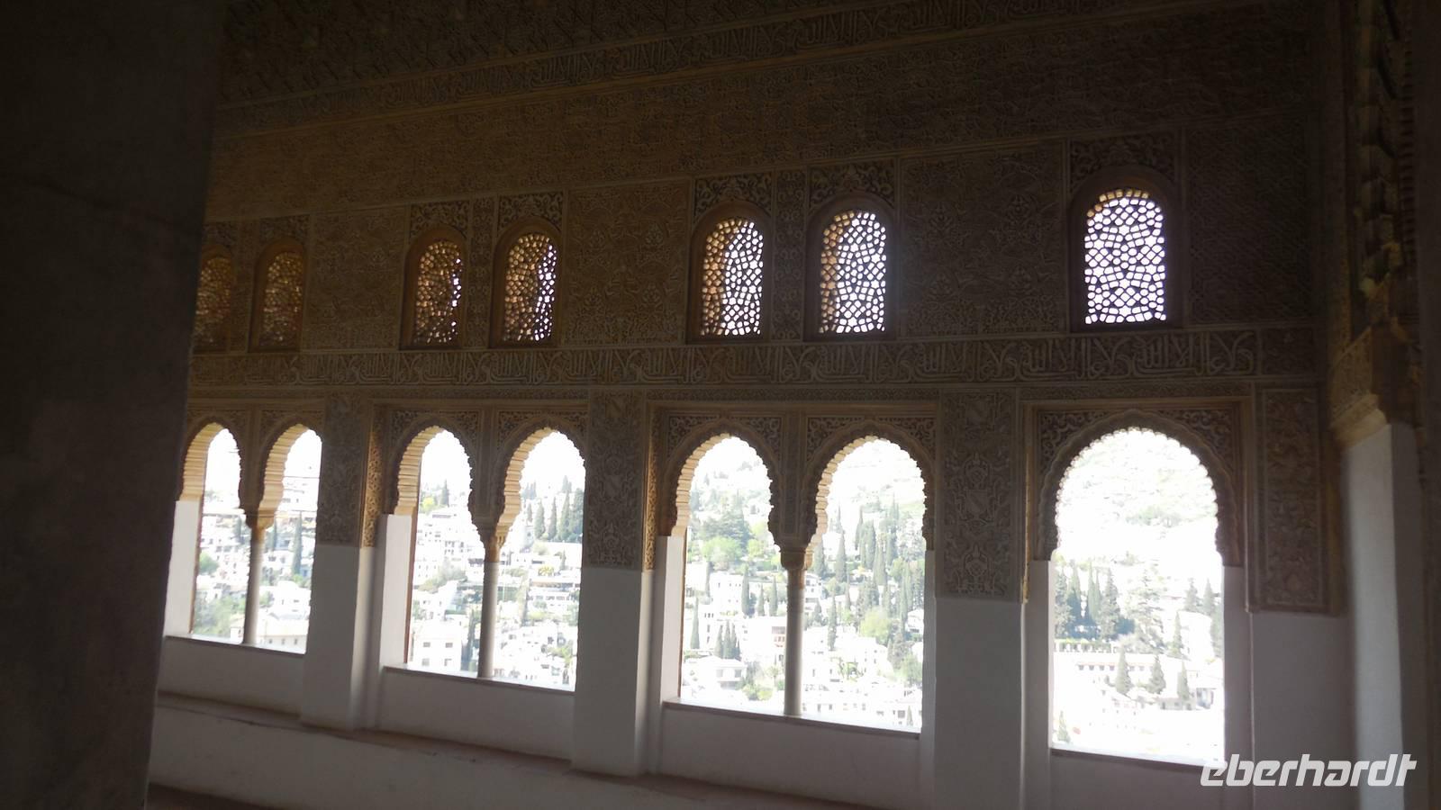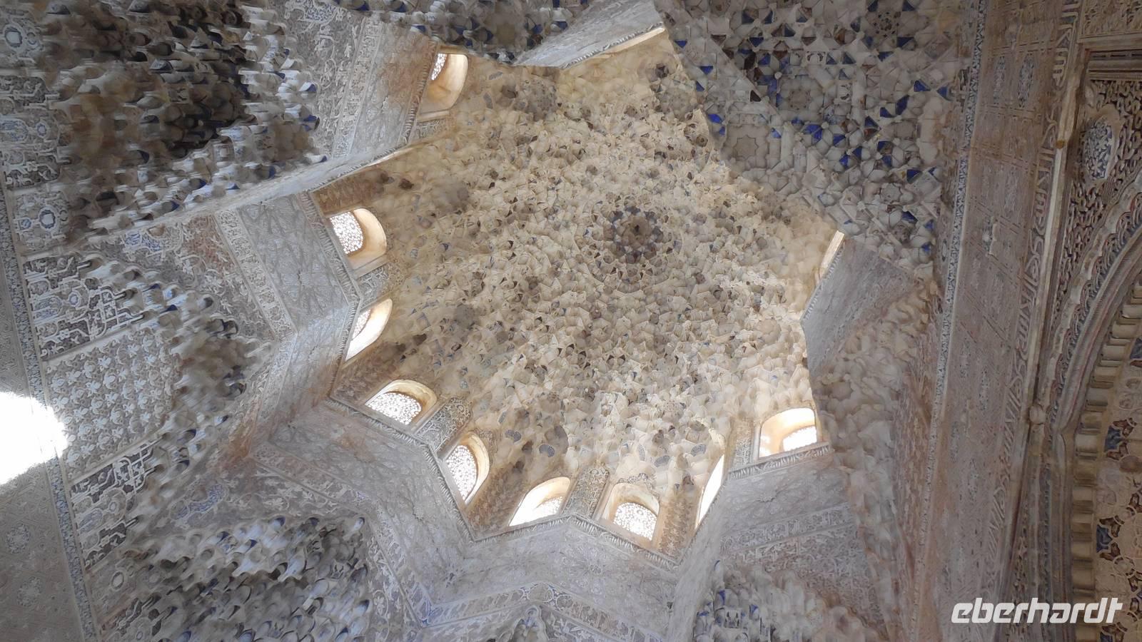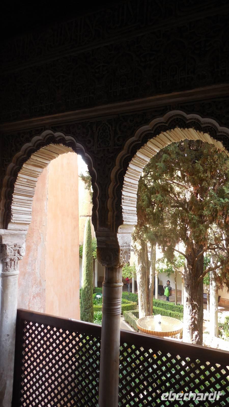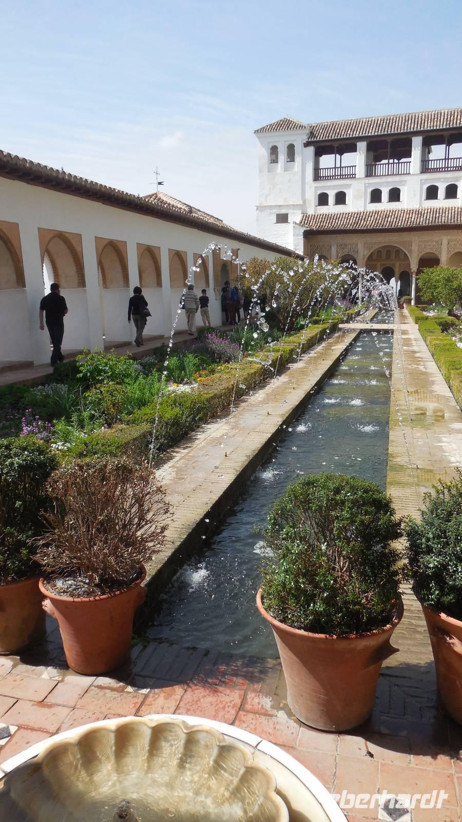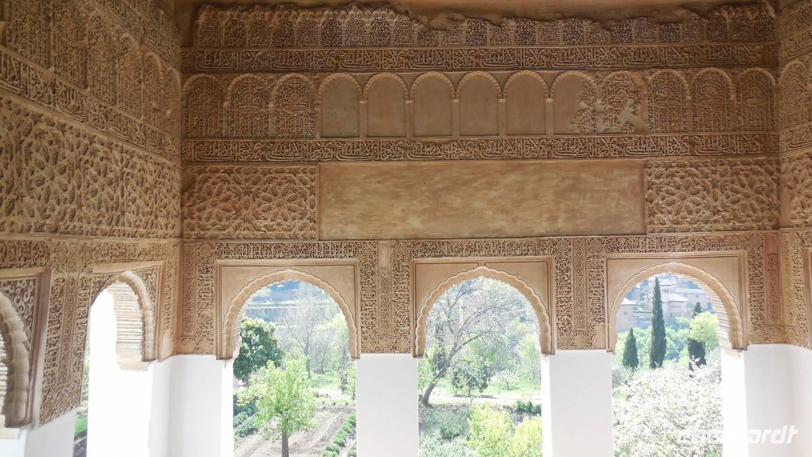Endlich beginnt unser Besuch der Alhambra und der Generalifen. Durch die wundervollen Gärten spazieren wir zum Sommerpalast, um einen herrlichen Blick über Granada zu genießen. Wir sehen die Mauern der Alhambra, die Sedimente der ältesten Gebäude sowie ihr Abwehrsystem. In diesem Teil liegt auch der Parador San Francisco. Weiter bergab finden wir die die Santa María Kirche, ein altes arabisches Bad und den Palast von Karl V mit einer fantasischen Akkustik. Wir gehen weiter in den Nazarien-Palast. Dieser Palast zeigt die ganze Pracht und die Schönheit von diesem alten Königsreich. Jeder Raum ist besonders und unterschiedlich gestaltet. Wie sagt unser lokaler Reiseleiter Pedro gern: “in Crescendo!”, was bedeutet, dass wir jeden Tag einen schöneren Palast als der zuvor erleben werden. Lange in Erinnerung wird uns der Innenhof mit dem fantasitschen Löwenbrunnen bleiben. Dieser sehr aufwändig geschmückter Mamorbrunnen wurde im 11. Jahrhundert nach Christus gebaut. Die zwölf Löwen repräsentieren die Zwölf Stämme Israels. Man sagt, aus dem Löwenbrunnen entspringt die Quelle des Lebens, die schöpferische Kraft des Wassers. Der gesamte Hof wird von 124 Säulen umschlossen. Das arithmetische Mittel aus 124 ist die Sieben und am siebenten Tag vollendete Gott die Schöpfung der Welt - das ist die Symbolik.