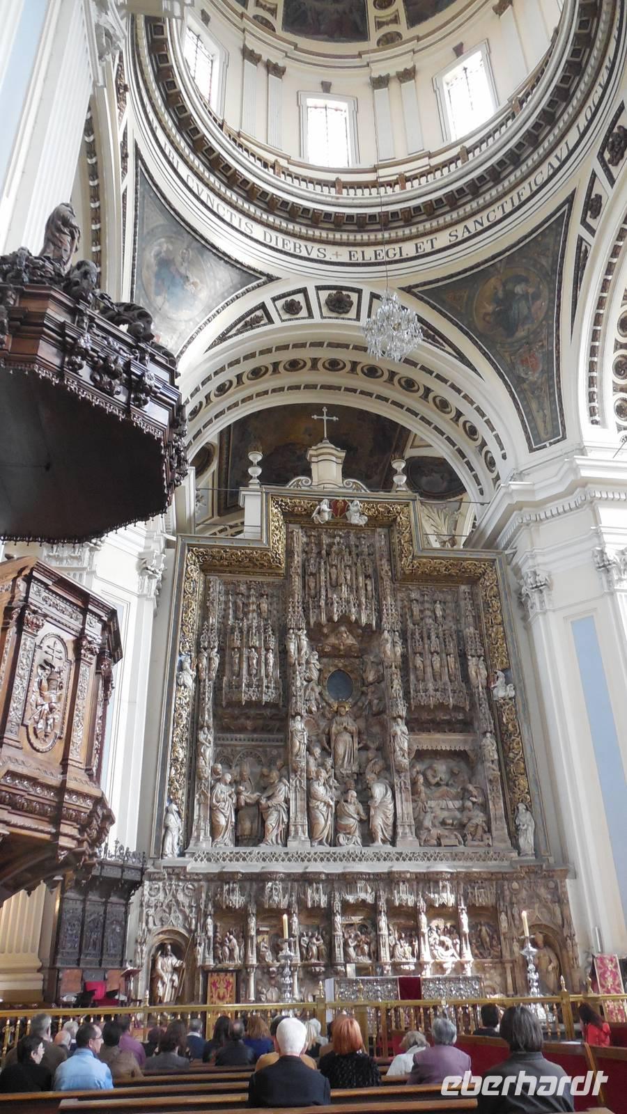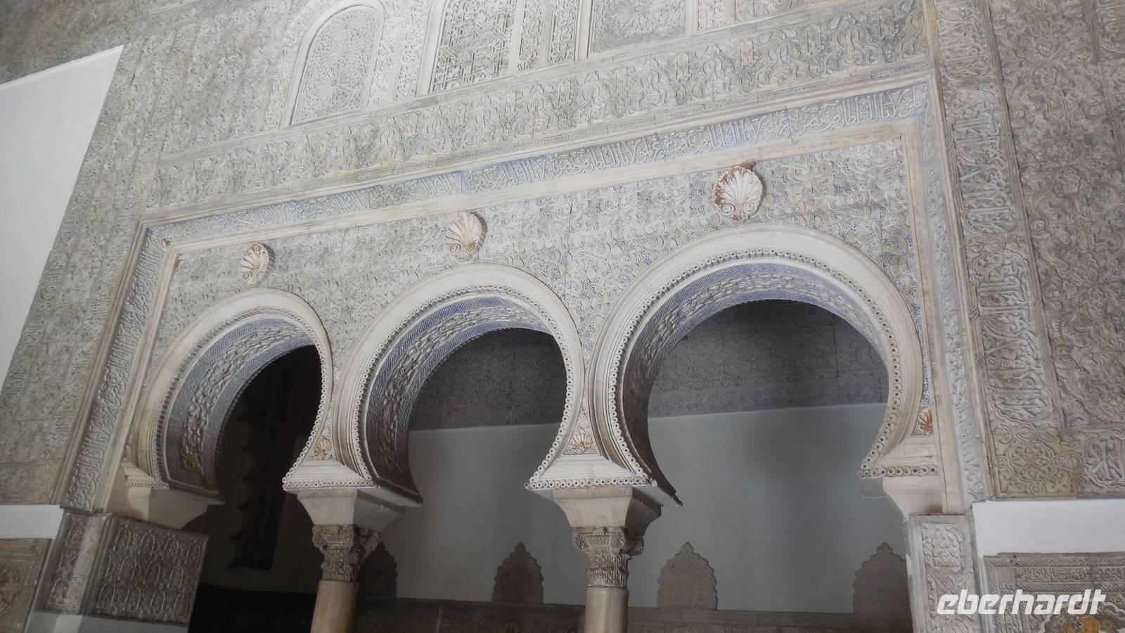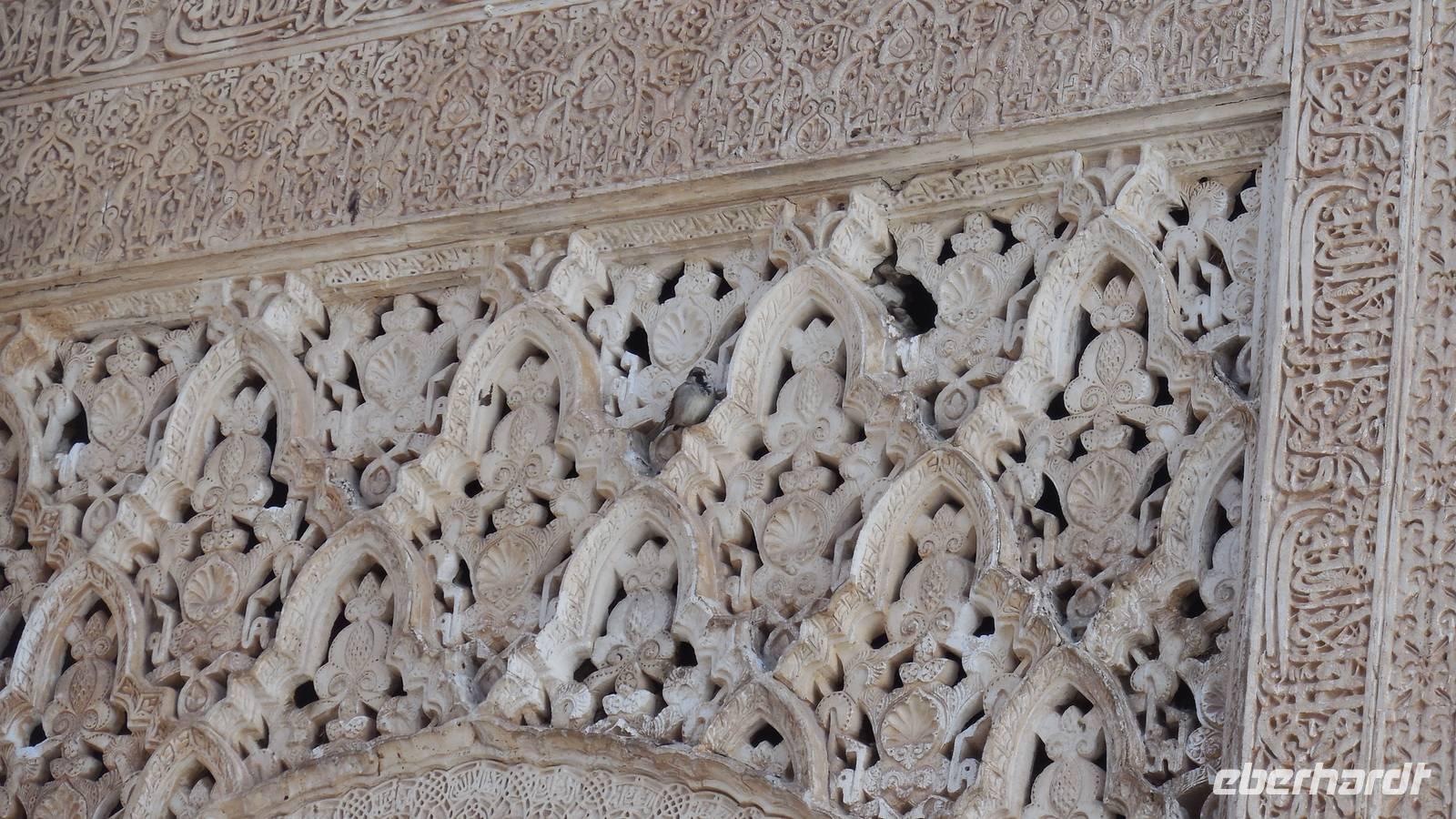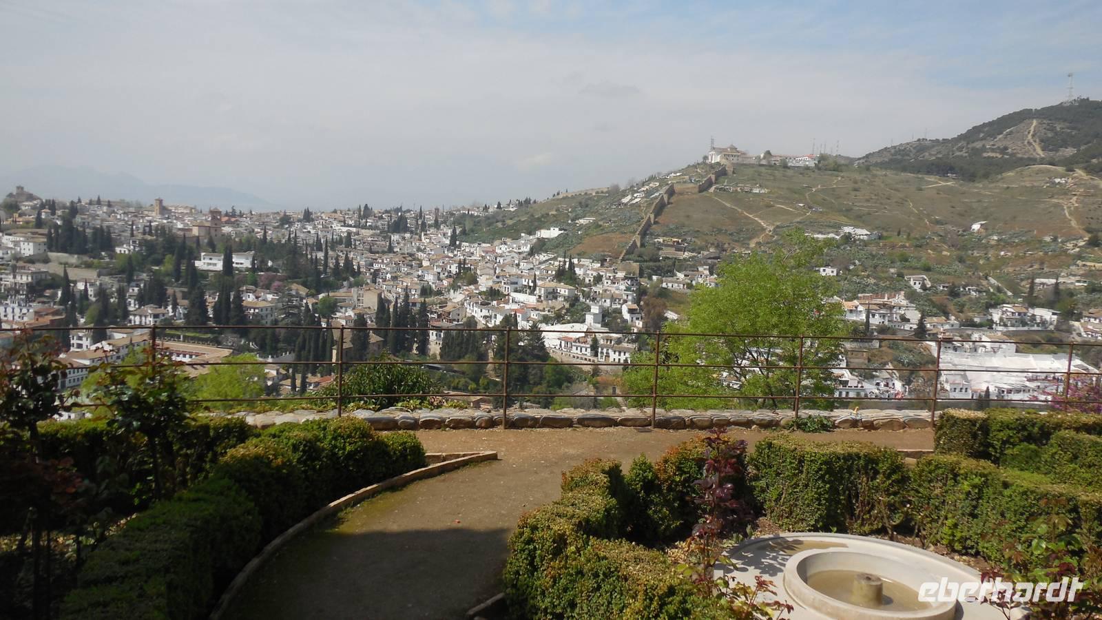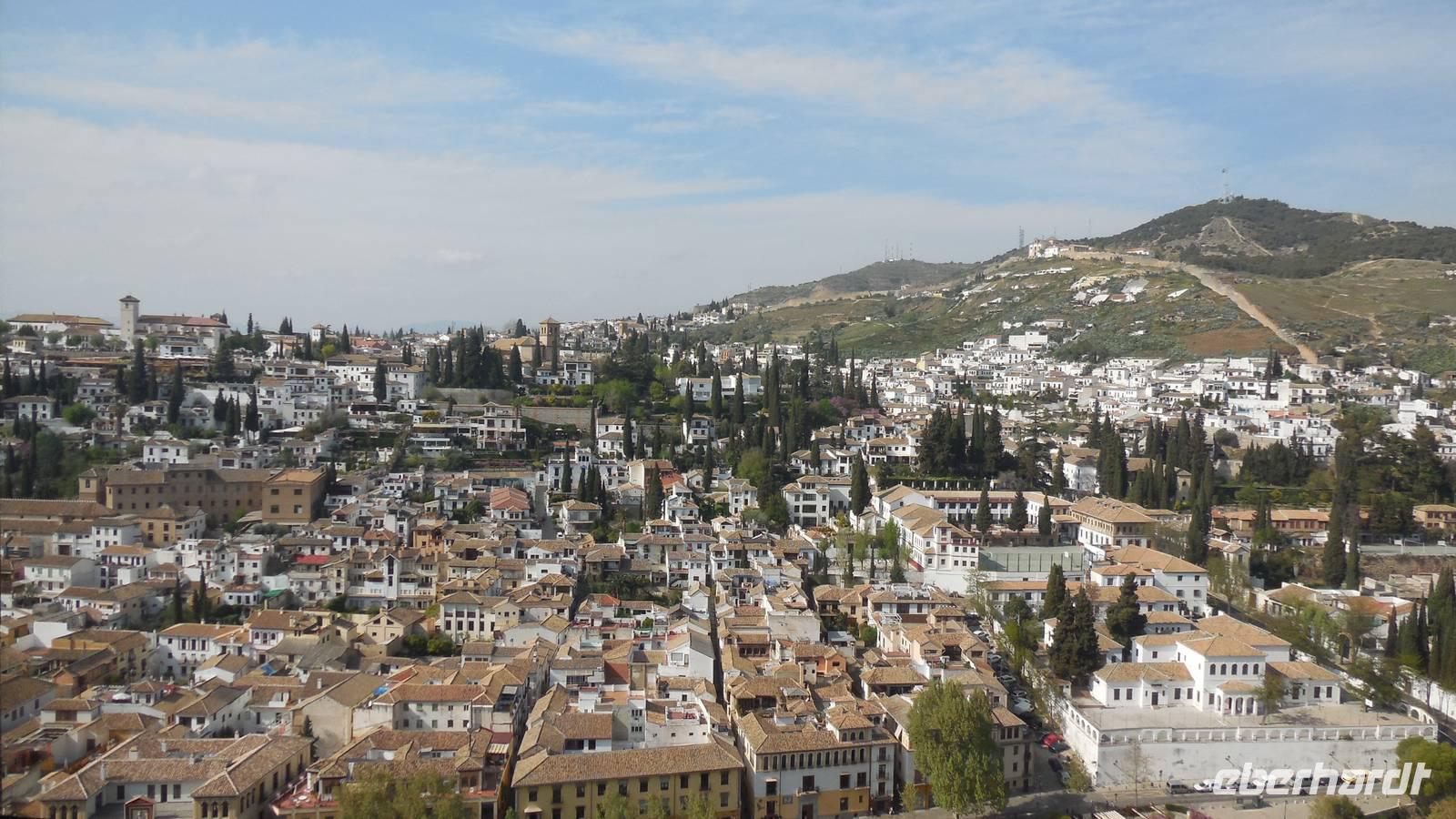 Endlich beginnt unser Besuch der Alhambra und der Generalifen. Durch die wundervollen Gärten spazieren wir zum Sommerpalast, um einen herrlichen Blick über Granada zu genießen. Wir sehen die Mauern der Alhambra, die Sedimente der ältesten Gebäude sowie ihr Abwehrsystem. In diesem Teil liegt auch der Parador San Francisco. Weiter bergab finden wir die die Santa María Kirche, ein altes arabisches Bad und den Palast von Karl V mit einer fantasischen Akkustik. Wir gehen weiter in den Nazarien-Palast. Dieser Palast zeigt die ganze Pracht und die Schönheit von diesem alten Königsreich. Jeder Raum ist besonders und unterschiedlich gestaltet. Wie sagt unser lokaler Reiseleiter Pedro gern: “in Crescendo!”, was bedeutet, dass wir jeden Tag einen schöneren Palast als der zuvor erleben werden. Lange in Erinnerung wird uns der Innenhof mit dem fantasitschen Löwenbrunnen bleiben. Dieser sehr aufwändig geschmückter Mamorbrunnen wurde im 11. Jahrhundert nach Christus gebaut. Die zwölf Löwen repräsentieren die Zwölf Stämme Israels. Man sagt, aus dem Löwenbrunnen entspringt die Quelle des Lebens, die schöpferische Kraft des Wassers. Der gesamte Hof wird von 124 Säulen umschlossen. Das arithmetische Mittel aus 124 ist die Sieben und am siebenten Tag vollendete Gott die Schöpfung der Welt - das ist die Symbolik.