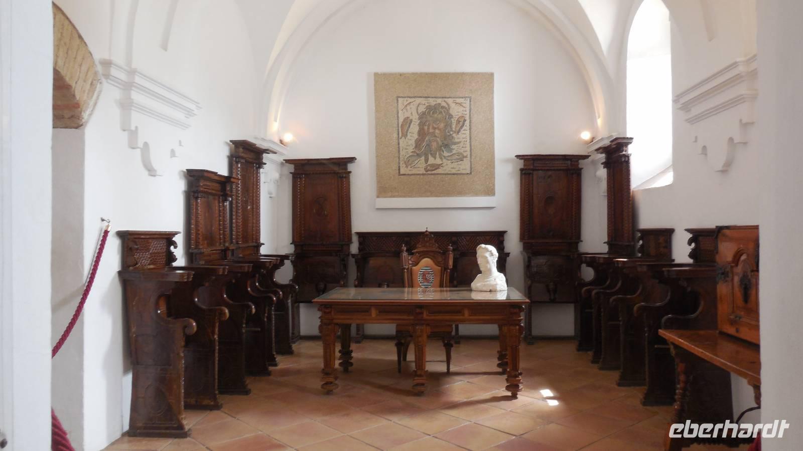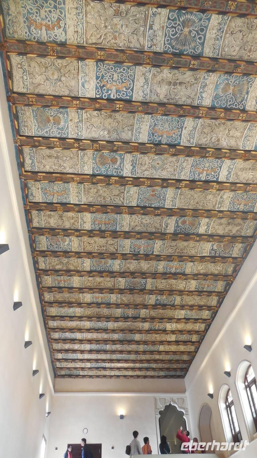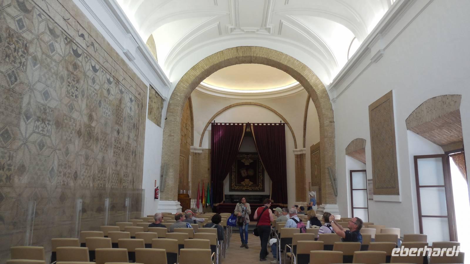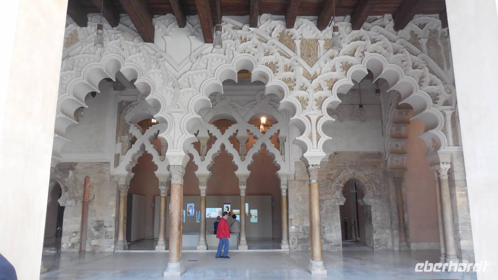 Zum Schluß setzen wir unsere Besichtigung im Aljafería-Palast fort. Hier erfahren wir Wissenswertes über die Geschichte Aragons kennen, sehen unterschiedliche Utensilien und kuriose Malereien von Ferdinand, der Katholische König, porträtiert von verschiedenen Malern aus Europa.