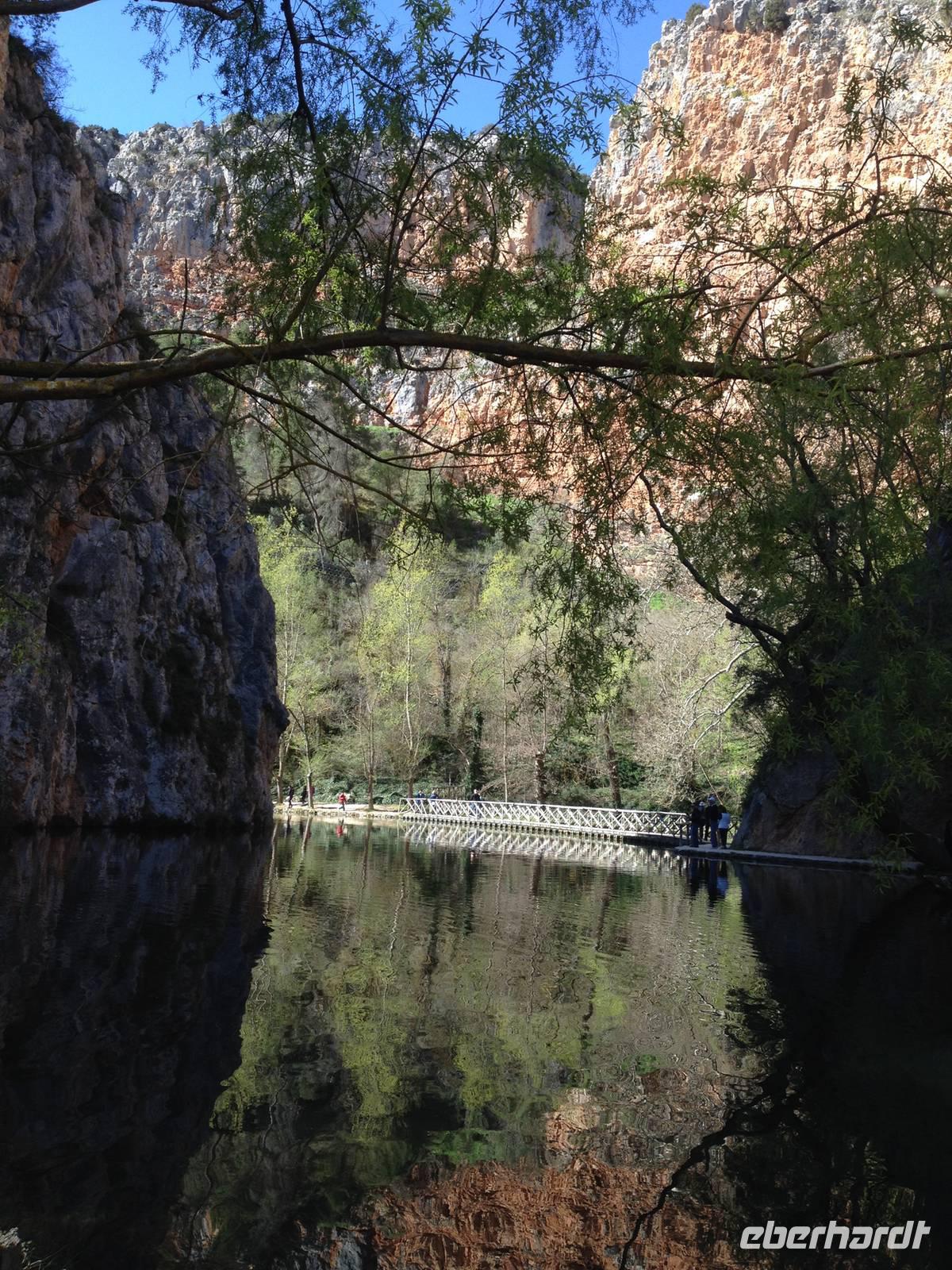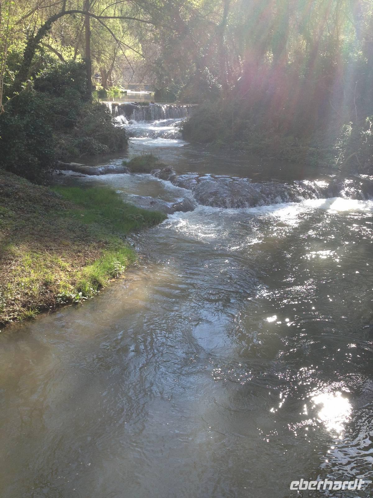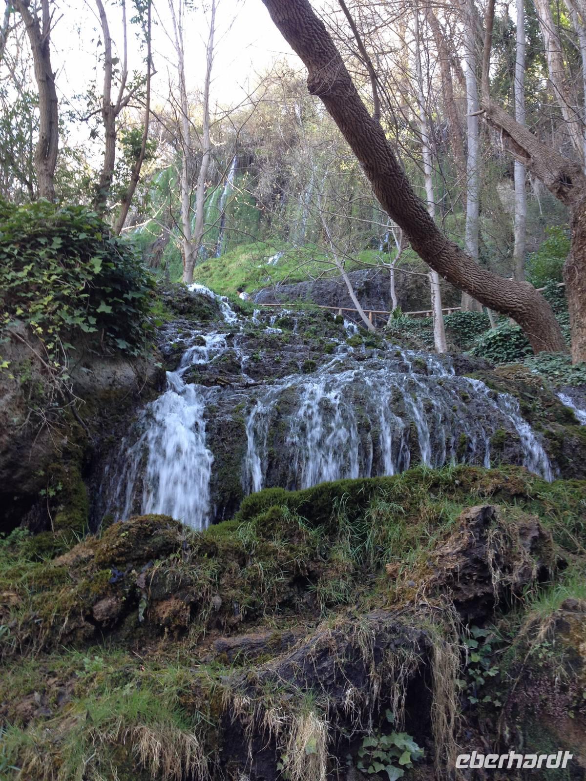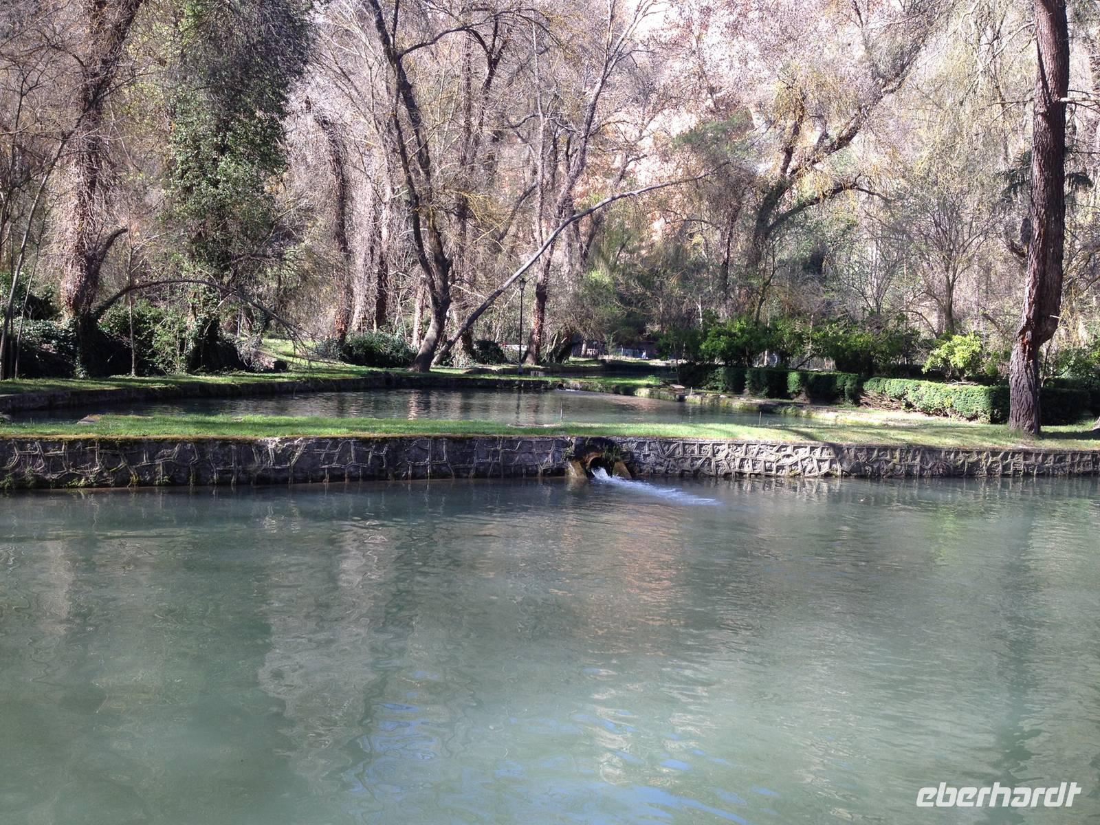 Ein schöner Tag, um durch den Garten von Monasterio de Piedra zu spazieren. Umgeben von dichtem Wald sprudeln die Wasserfälle zwischen hohen Felsen in diesem wundervollen Naturpark. Einer davon ist der Cola de Caballo „Pferdeschwanz“ -Wasserfall. Am Fluss befindet sich eine Fischzuchtanstalt für Forellen und Lachsforellen. Es geht weiter durch die Schlucht und bergauf, um weitere Wasserfälle sowie die Klosteranlage zu sehen. Überrascht sind wir, als wir im Kloster auch eine Schokoladenfabrik und ein Museum vorfinden.