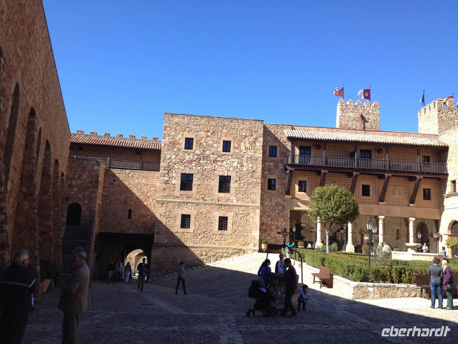 Wir reisen durch idyllische Landschaft und kleinen Dörfchen mit ihren Burgen nach Sigüenza, in der Región Kastilla La Mancha. In Sigüenza steigen wir am Plaza Mayor aus und gehen zum Parador, der auf einer alten Burg errichtet ist. Es bleibt Zeit für einen Spaziergang durch den Ort und zur Kathedrale.
