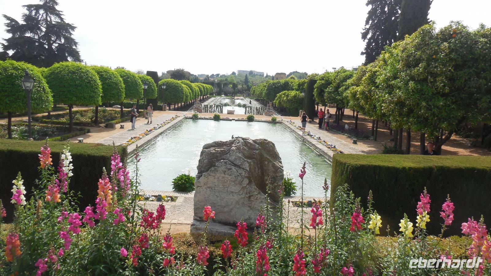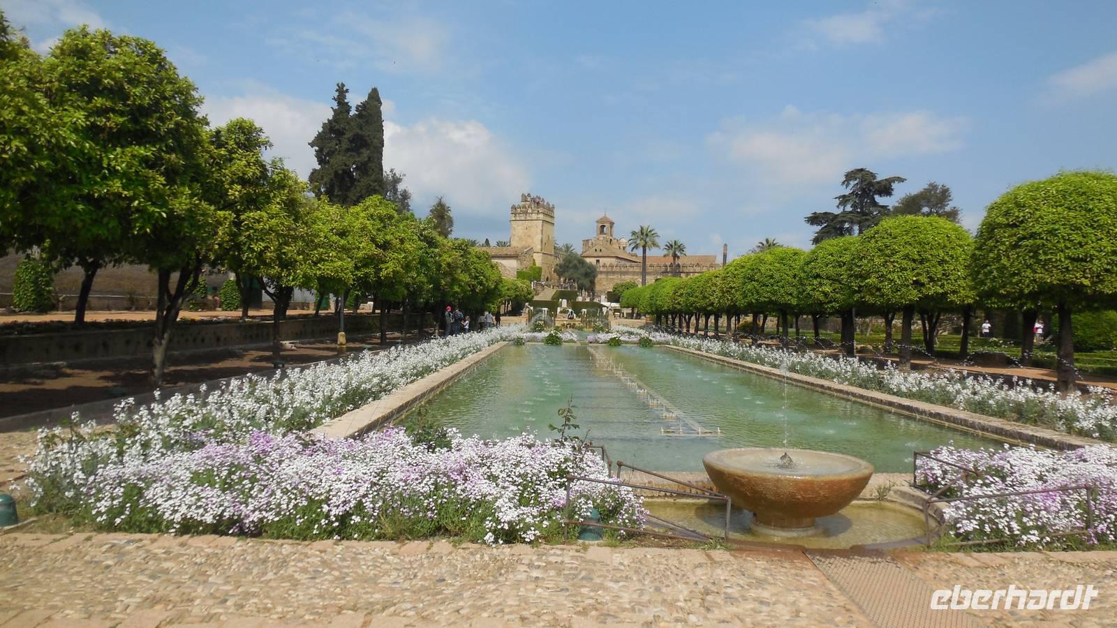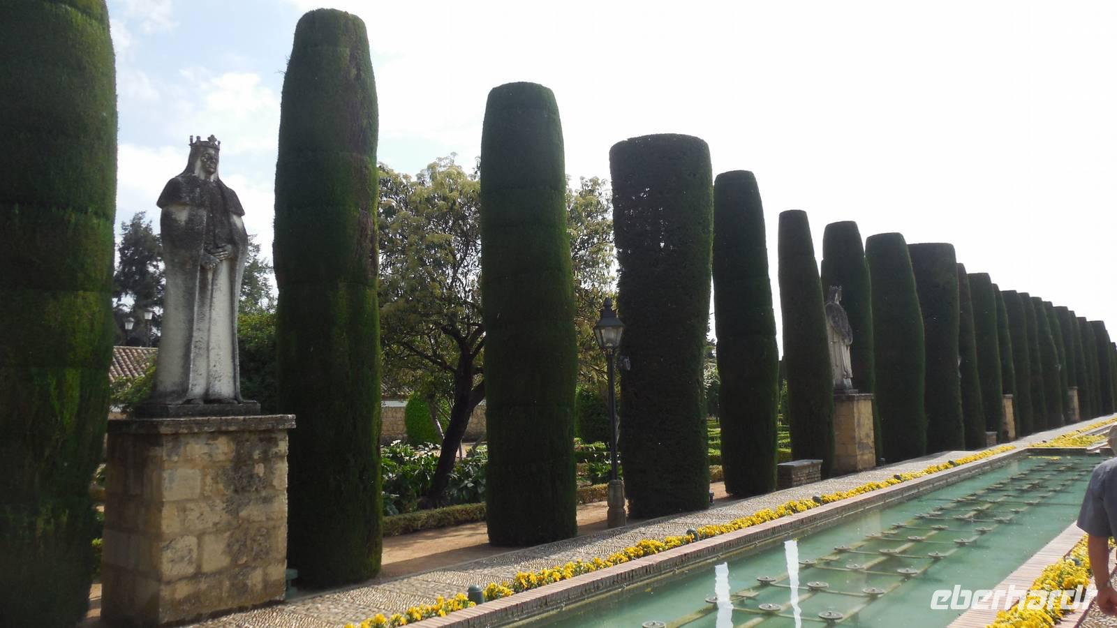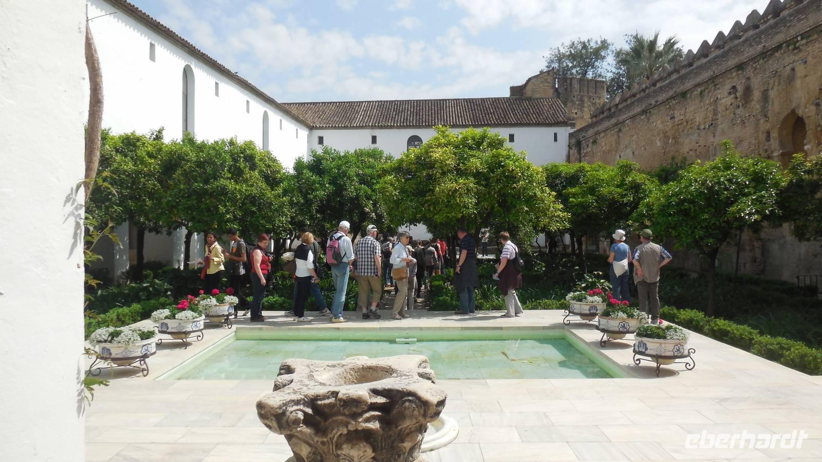 Nach den Mittagsessen treffen wir uns wieder und spazieren zur römischen Brücke, dem Stadttor und das San Rafael Monument. Hier begrüßen wir unsere örtliche Reiseleiter Encarna. Mit ihrer ruhigen Stimme weiht sie uns mit amüsanten Anekdoten in die Geschichte von Córdoba ein. Auf unserem Programm steht die Festung Alcázar de los Reyes Cristianos mit ihrem prunkvollen Garten, dem darin befindlichen Palast sowie dem Hamman, das arabische Bad.