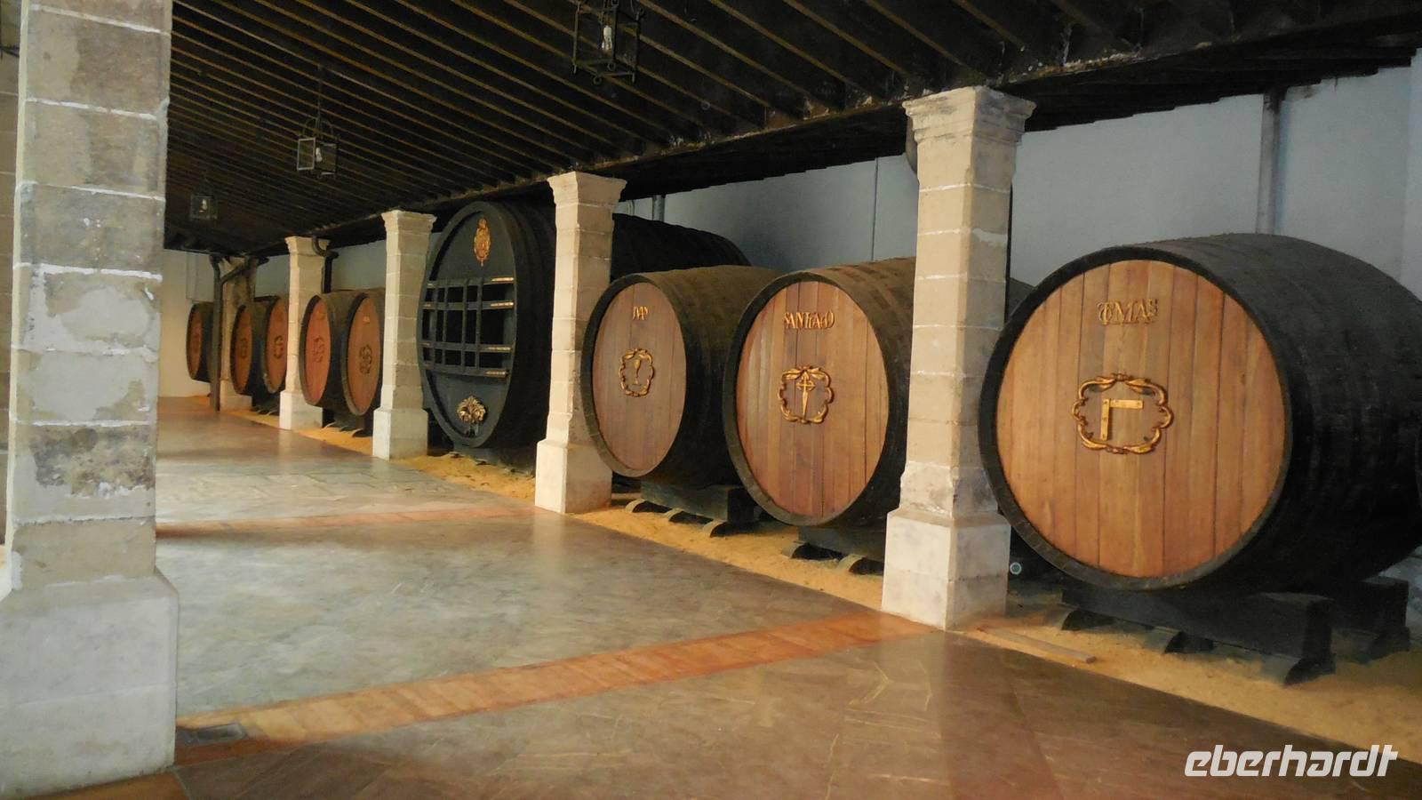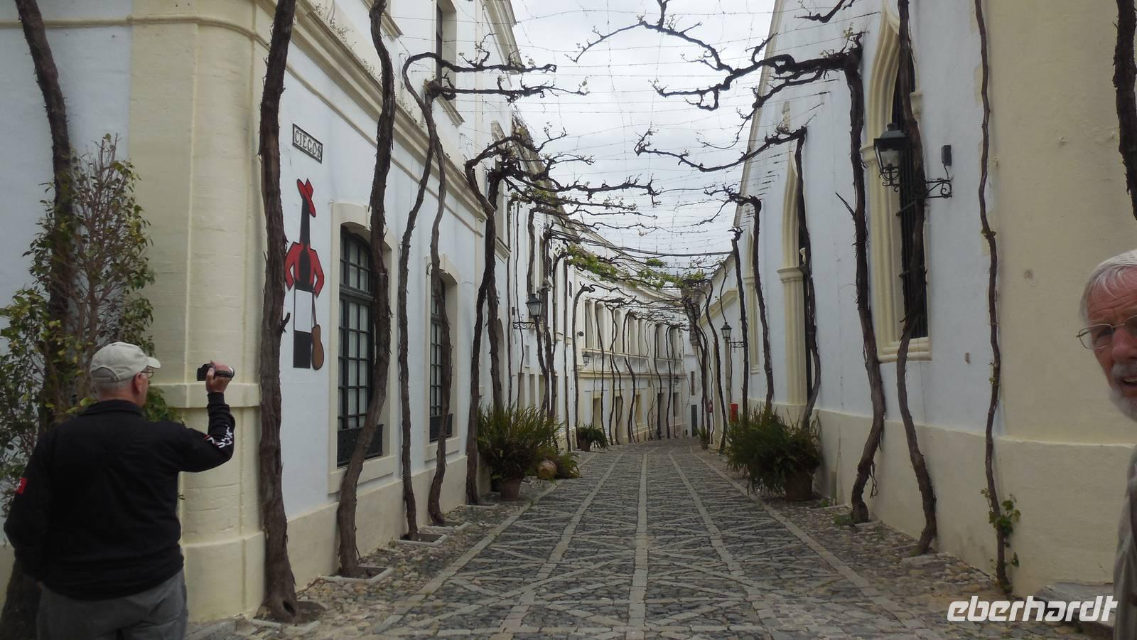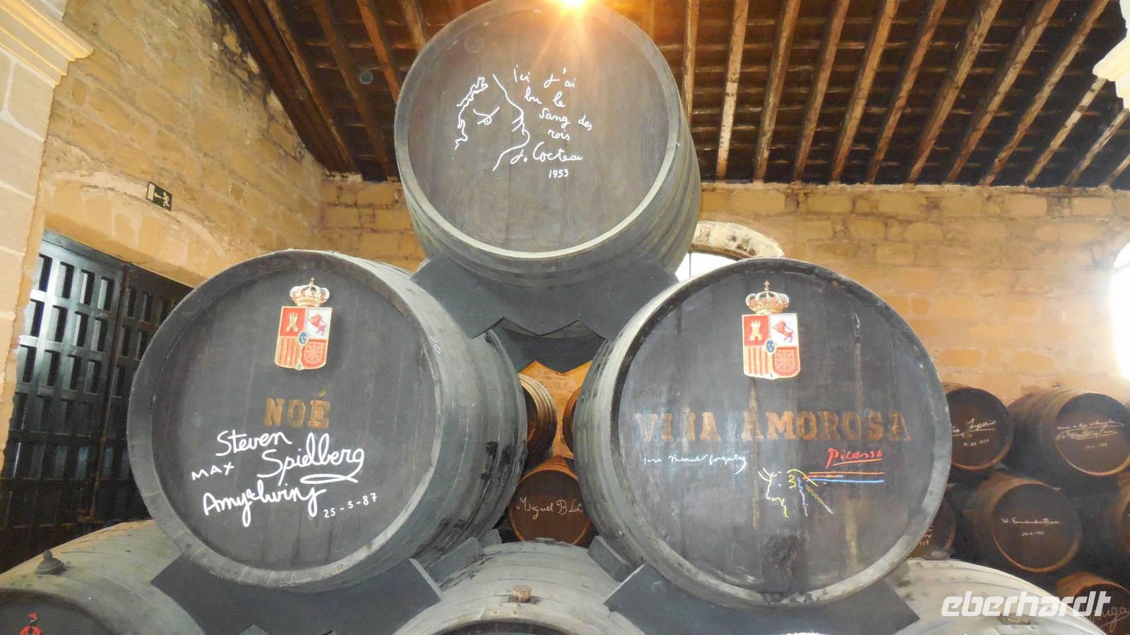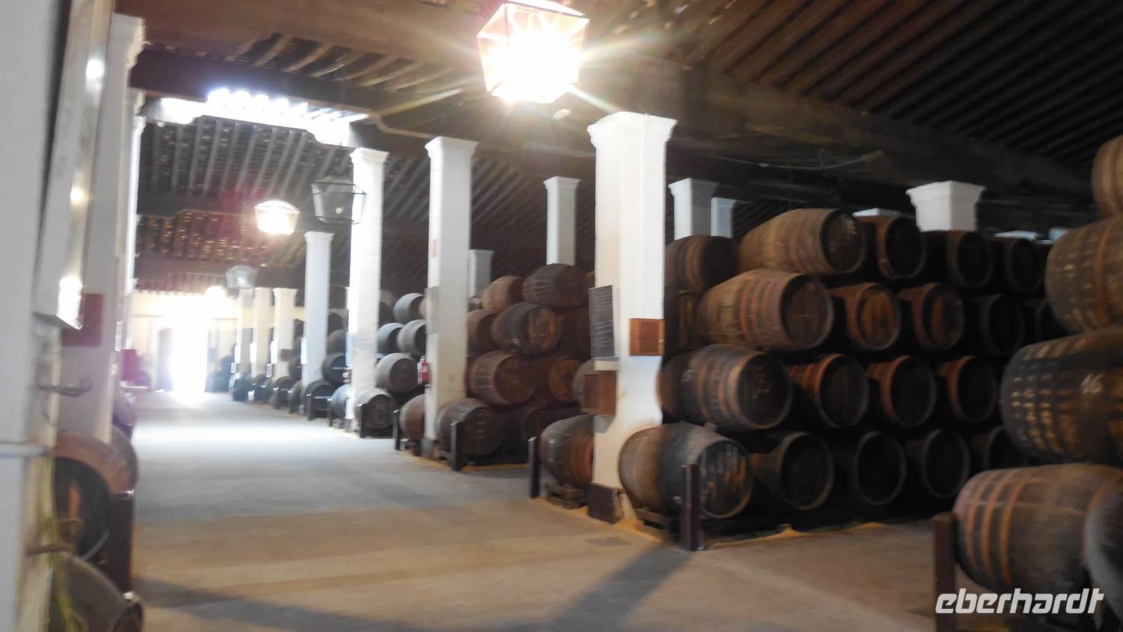 Wir erreichen Jerez de la Frontera und werden herzlichst von einem Einheimischen begrüßt. Der Tio Pepe (Onkel Pepe) geleitet uns in seinen Weinkeller. Juan erklärt uns die Tradition vom Gonzalez Byass-Weinkeller. Nach dieser kleinen Einführung zeigt uns ein Film die Geschichte von diesem Weinkeller und Onkel Pepe gibt weitere interessante Informationen bei der Führung durch die Räumlichkeiten, wie der Wein produziert wird. Auch hier bleiben uns einige Anekdoten im Kopf hängen, wie zum Beispiel die der alkoholischen Familie von Speedy Gonzalez, die bessen waren von dem Pedro Ximénez-Wein. Zum Schluss darf die Verkostung des Weines nicht fehlen, damit wir auch tatsächlich mitreden können! Prost!