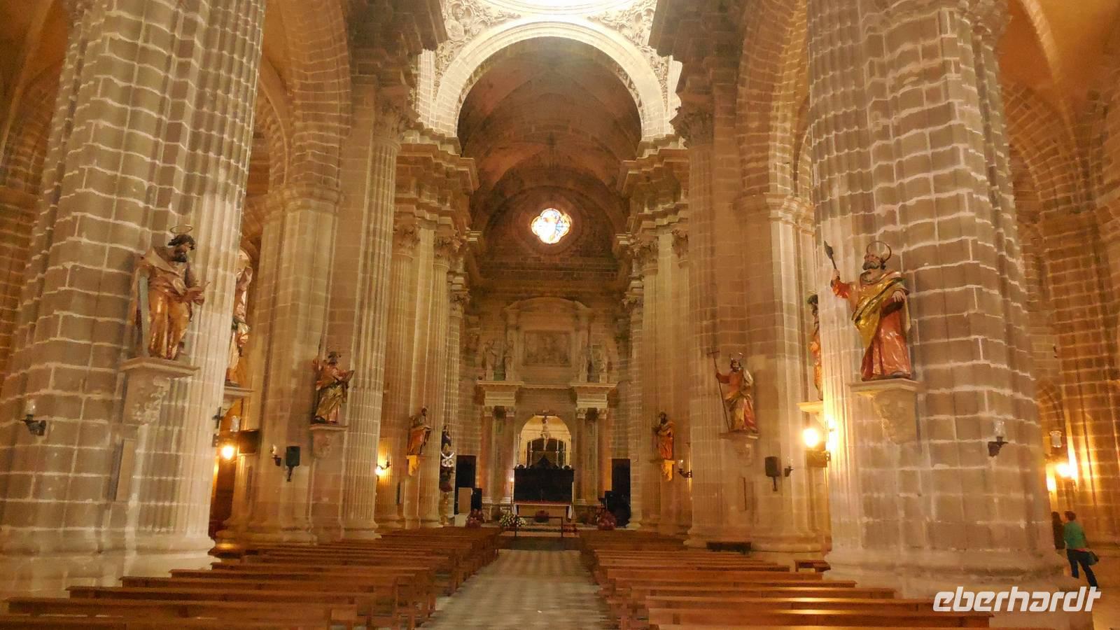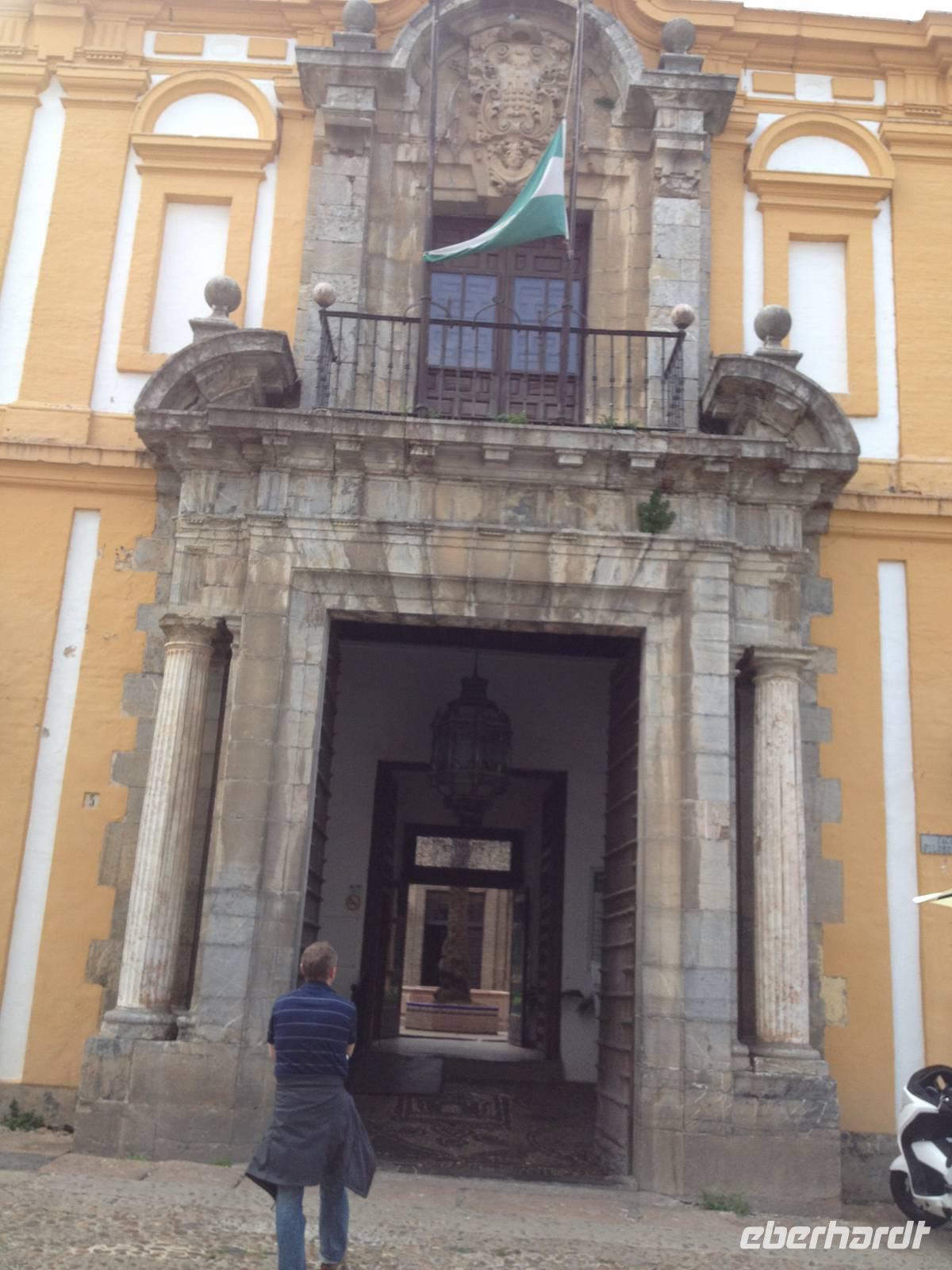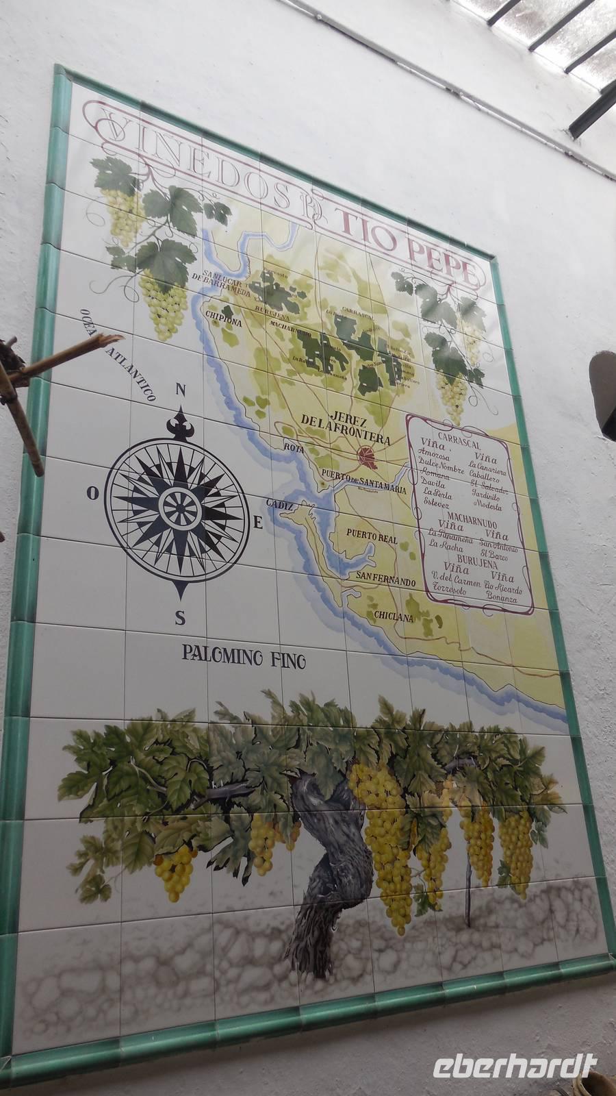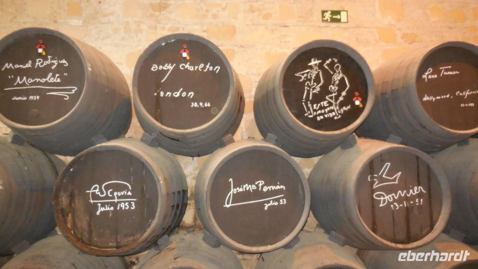 Wir erreichen Jerez de la Frontera und werden herzlichst von einem Einheimischen begrüßt. Der Tio Pepe (Onkel Pepe) geleitet uns in seinen Weinkeller. Juan erklärt uns die Tradition vom Gonzalez Byass-Weinkeller. Nach dieser kleinen Einführung zeigt uns ein Film die Geschichte von diesem Weinkeller und Onkel Pepe gibt weitere interessante Informationen bei der Führung durch die Räumlichkeiten, wie der Wein produziert wird. Auch hier bleiben uns einige Anekdoten im Kopf hängen, wie zum Beispiel die der alkoholischen Familie von Speedy Gonzalez, die bessen waren von dem Pedro Ximénez-Wein. Zum Schluss darf die Verkostung des Weines nicht fehlen, damit wir auch tatsächlich mitreden können! Prost!