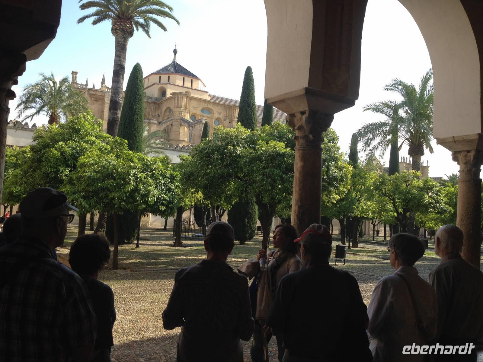 Ein herrlicher Tag erwartet uns. Mit der AVE, dem schnellsten Zug spaniens, reisen wir von Madrid nach Córdoba. In nur 1 Stunde und 40 Minuten überwinden wir ca. 400 km! WOW! Unser neuer Chauffeur Miguel Ángel heißt uns herzlich willkommen in Andalusien und begleitet uns in die Altstadt, wo unser Hotel direkt neben der Kathedrale steht. In unserer Freizeit können wir das schöne Gelände mit einem typischen andalusische Innenhof erkunden.