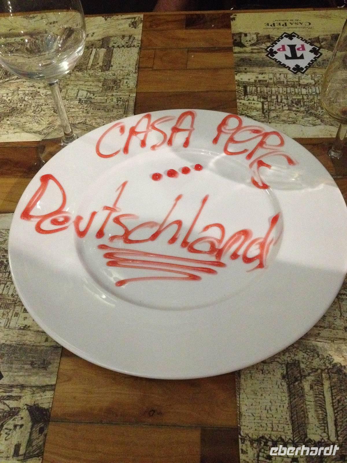 Schließlich haben wir es gefunden und genießen ein schmackhaftes und saftiges spanisches Essen.