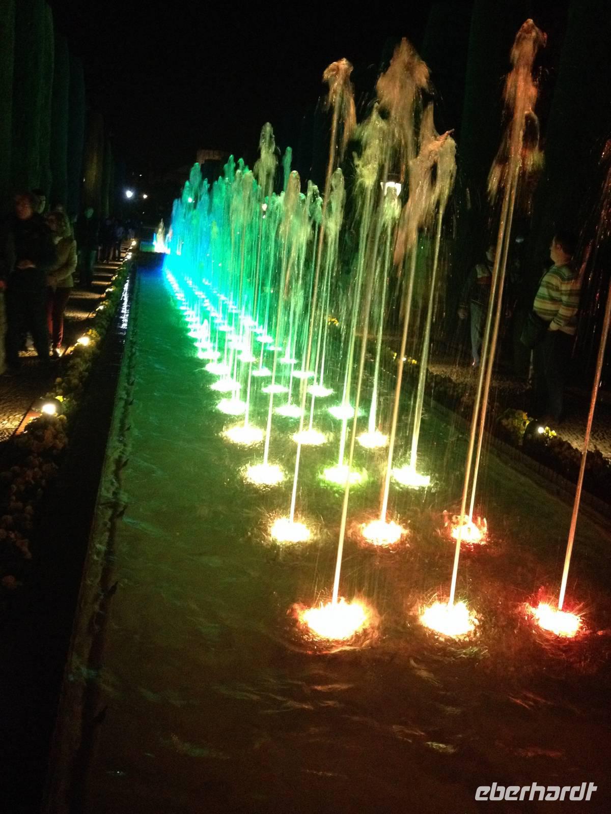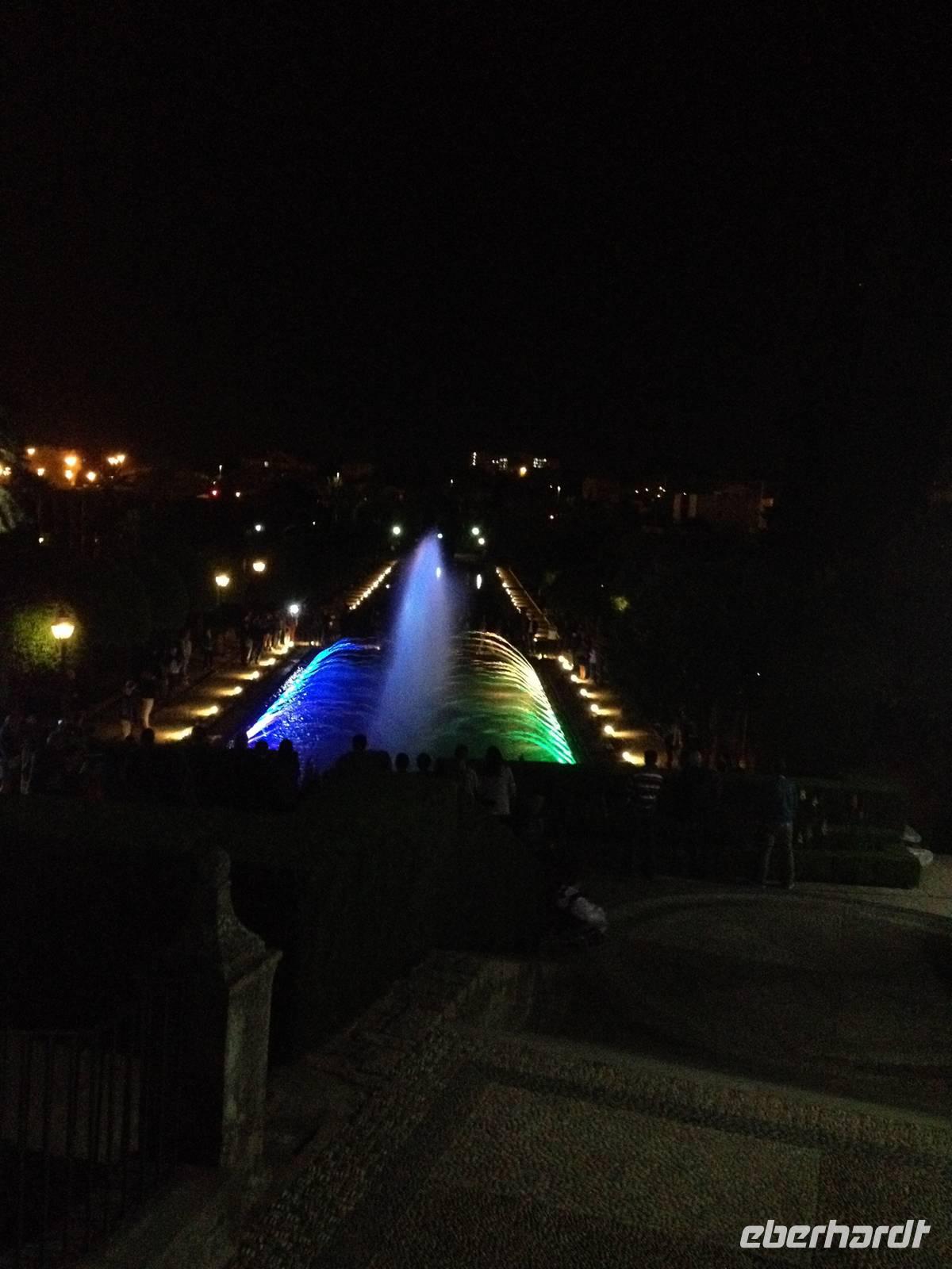 Am Abend nutzen wir die zentrale unseres Hotels und besuchen die lebendige Show von Lichtern und Klängen und genießen das Wasserspiel von Alcázar.