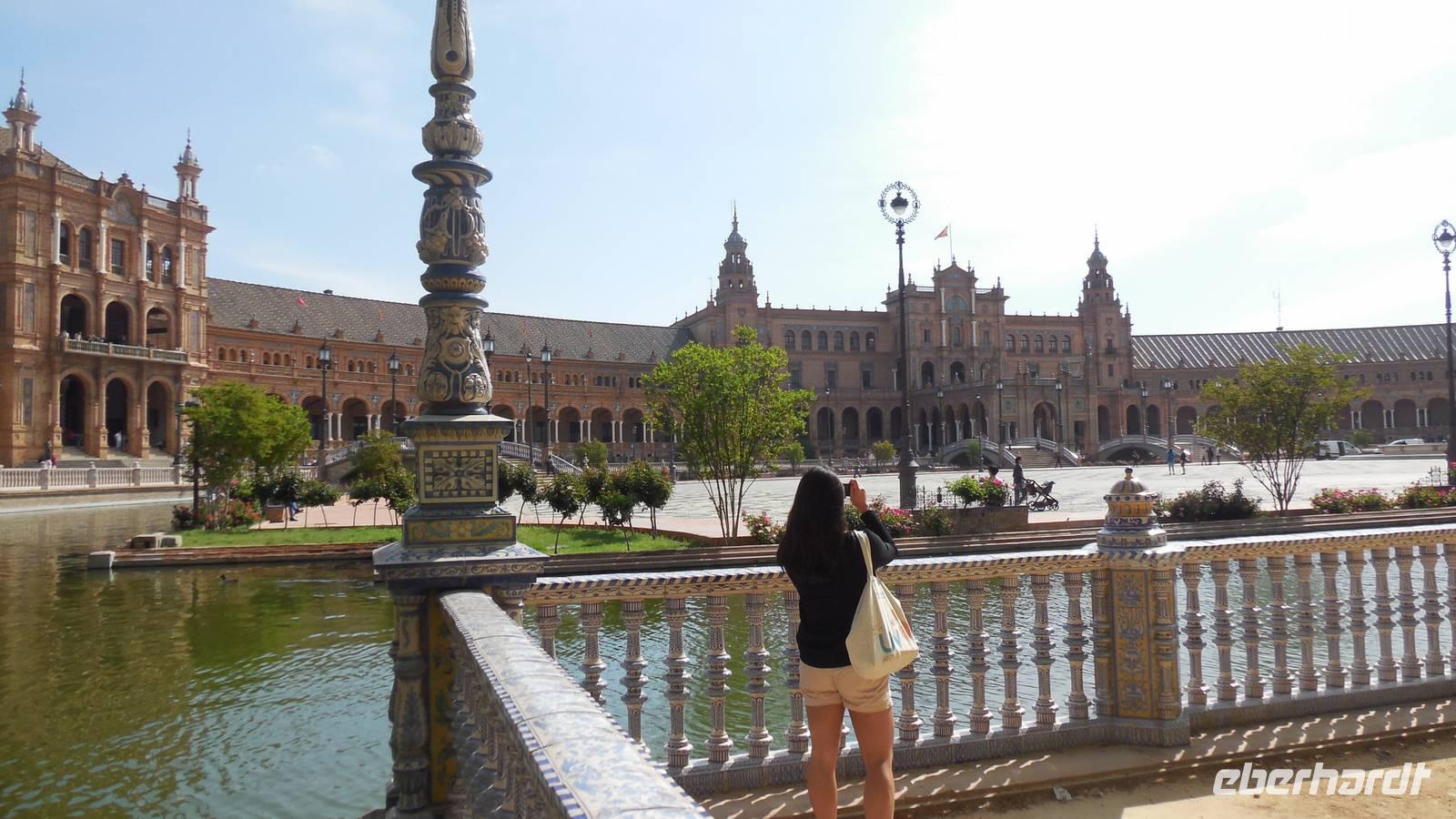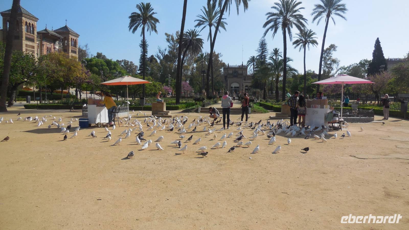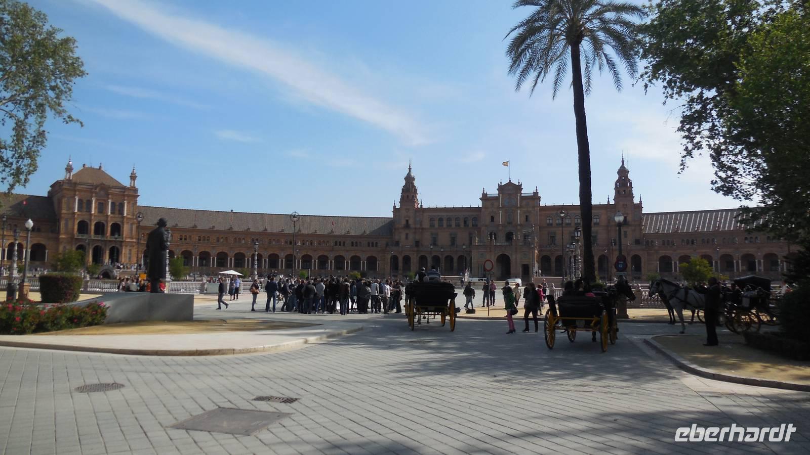 Die Hauptstadt Andalusiens, Sevilla, ist unser heutiges Ziel. Wir besuchen den Plazt Plaza de América mit dem Museum für Kunst und Traditionen, dem Museum für Archäologie, dem Pabellón Real und einem hübschen Wasserbrunnen im Zentrum des Platzes. Am Platz hielten sich unheimlich viele Vögel auf, die diesem Platz einen besonderen Reiz (eine besondere Farbe) gibt. Das ist festgehalten in dem Lied „Sevilla tiene un color especial…“