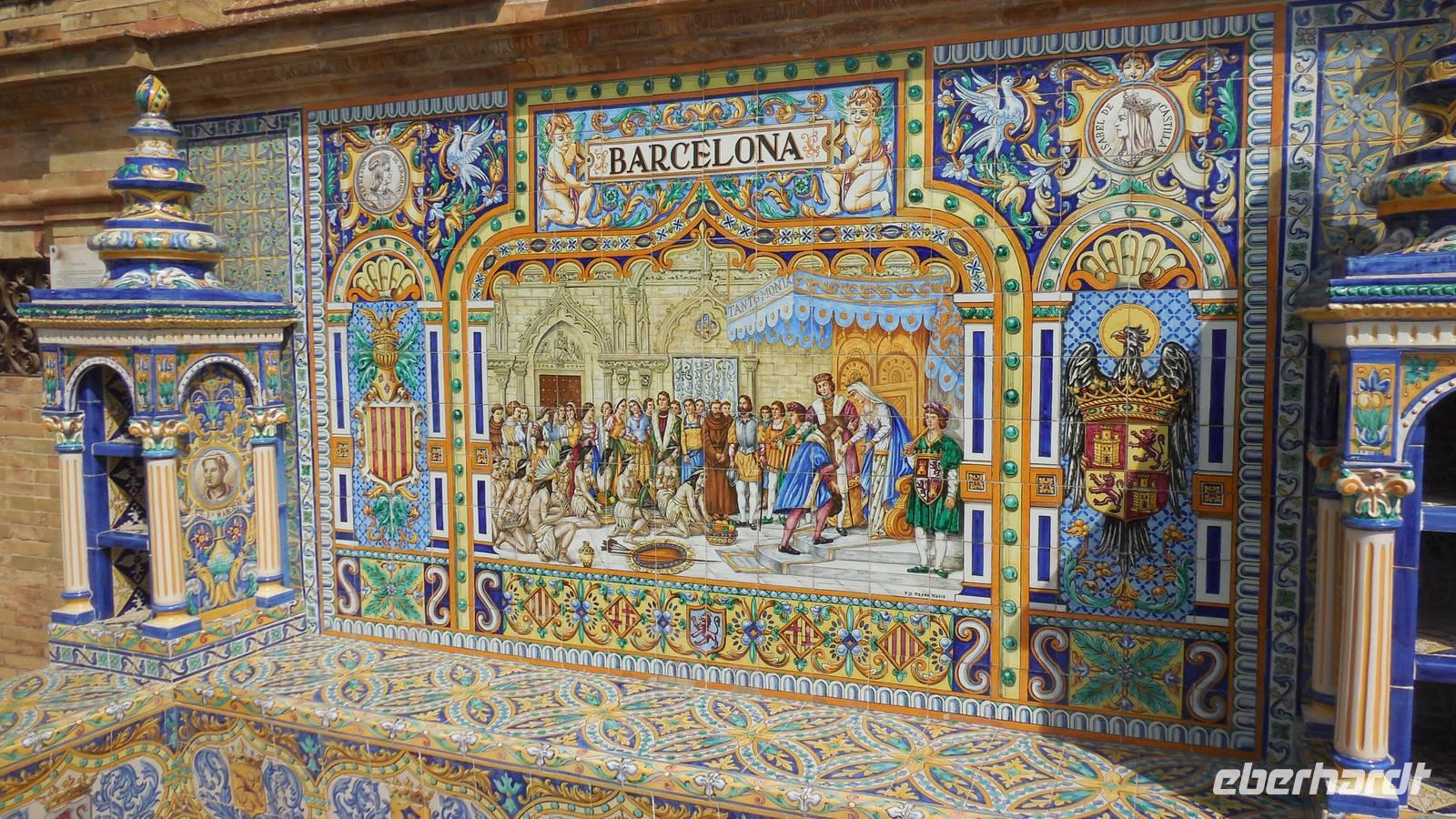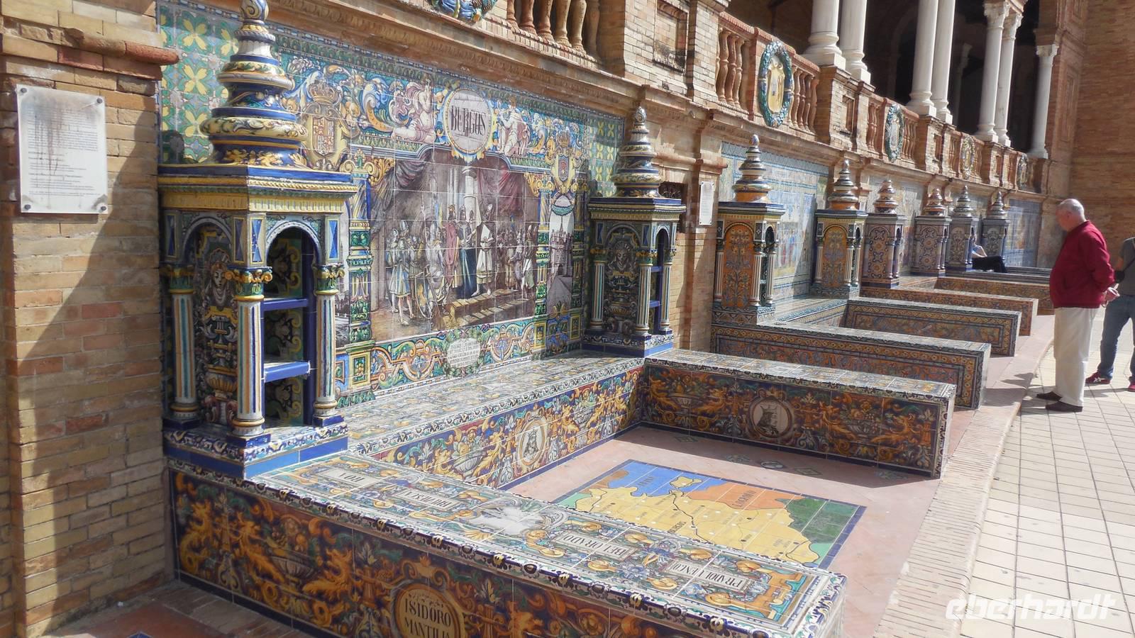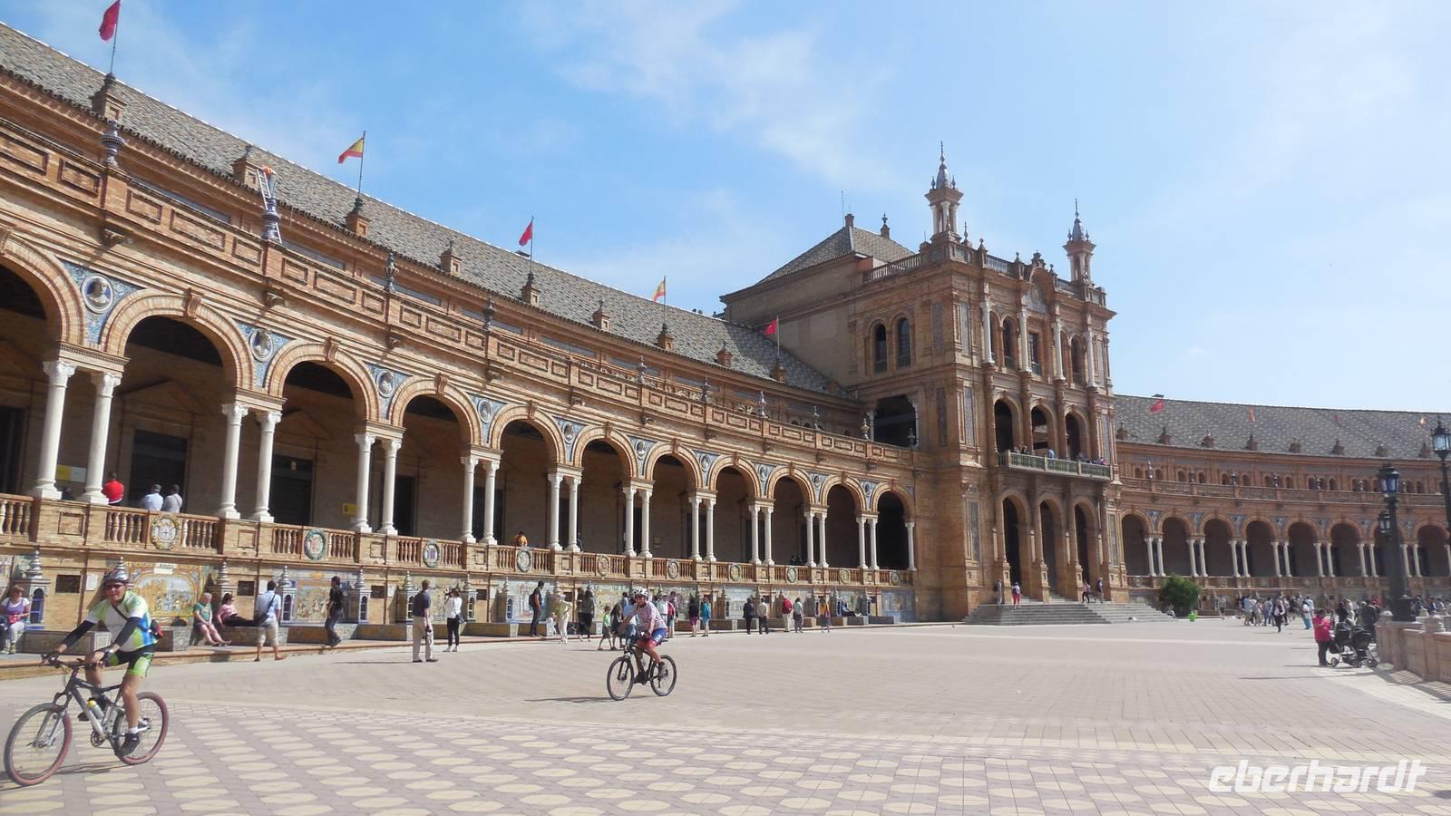 Die Hauptstadt Andalusiens, Sevilla, ist unser heutiges Ziel. Wir besuchen den Plazt Plaza de América mit dem Museum für Kunst und Traditionen, dem Museum für Archäologie, dem Pabellón Real und einem hübschen Wasserbrunnen im Zentrum des Platzes. Am Platz hielten sich unheimlich viele Vögel auf, die diesem Platz einen besonderen Reiz (eine besondere Farbe) gibt. Das ist festgehalten in dem Lied „Sevilla tiene un color especial…“