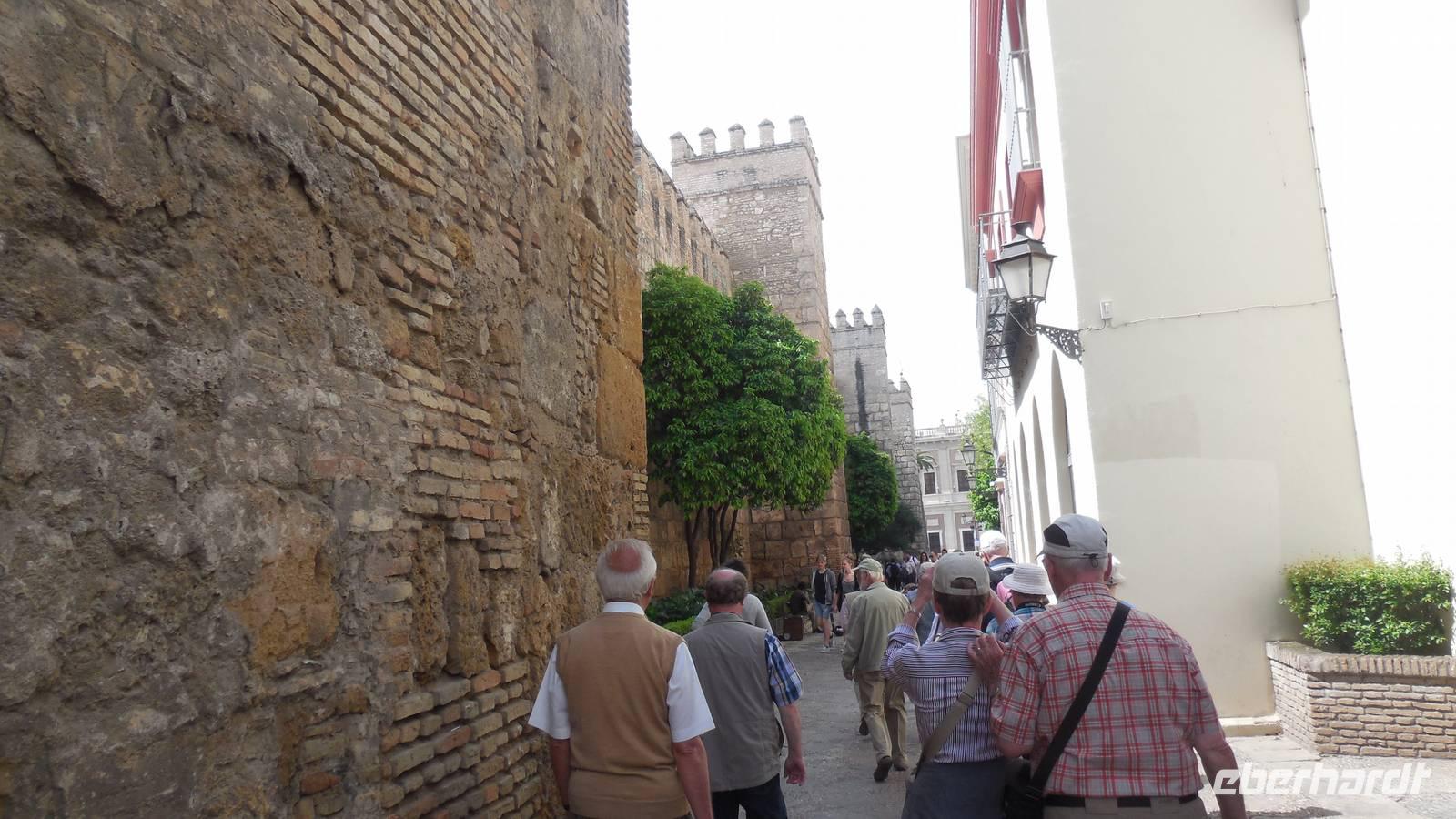 Von der Kathedrale spazieren wir entlang der Mauer von den Alcázar „Festung“ bis zum Plaza del Arenal.