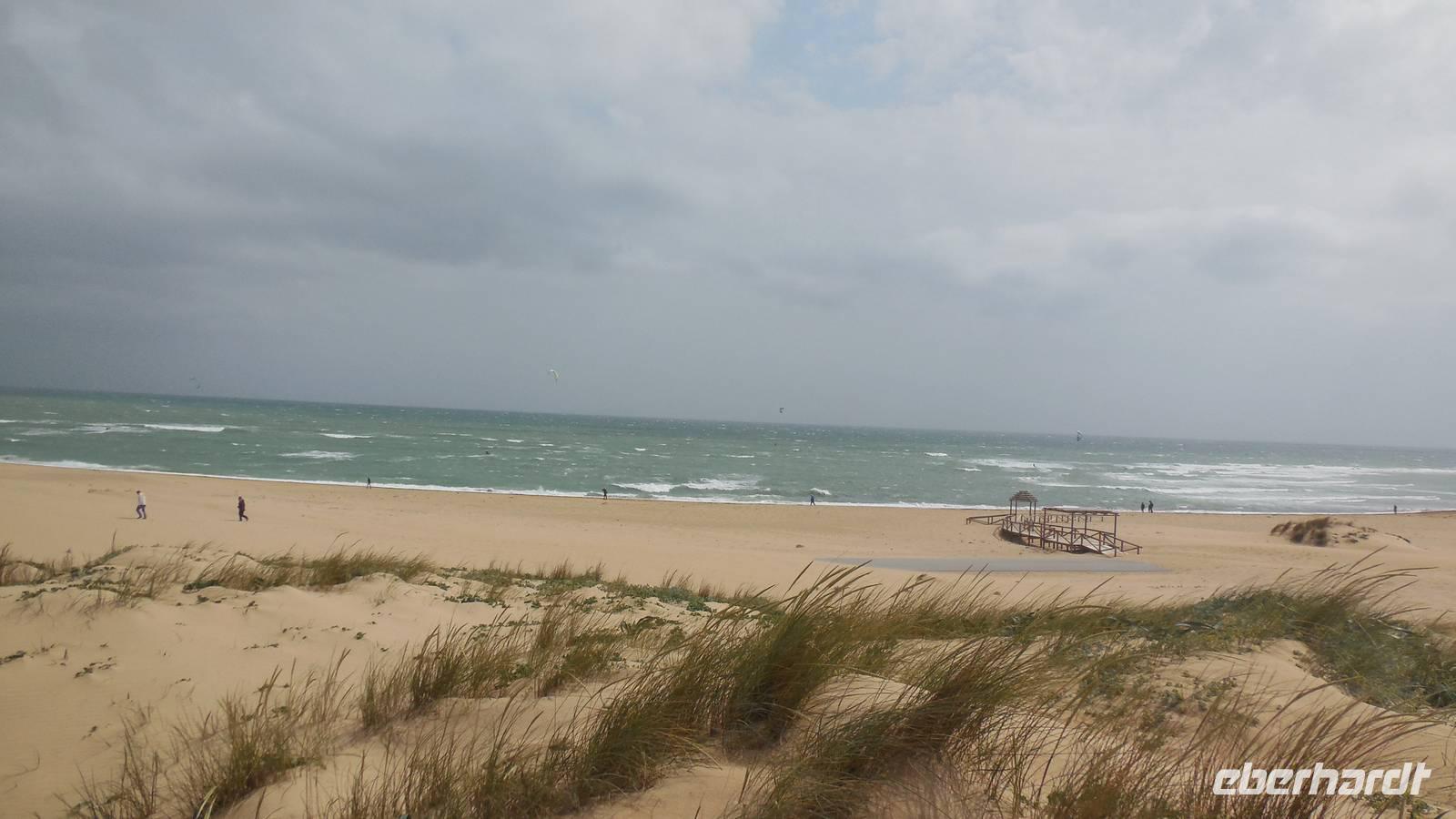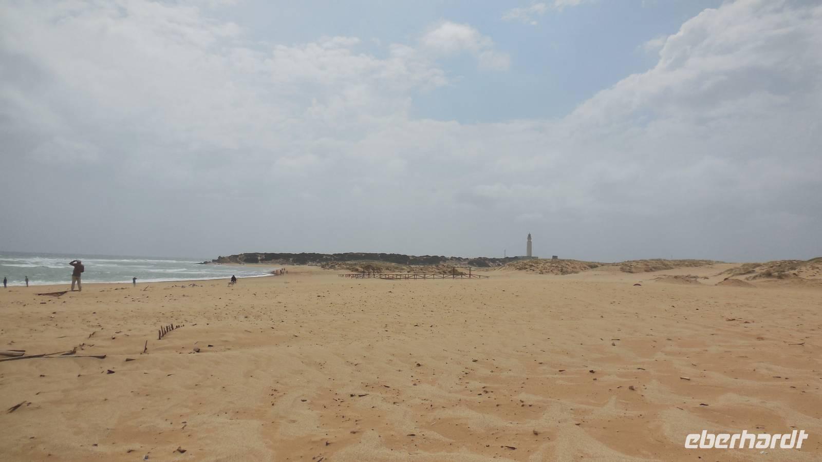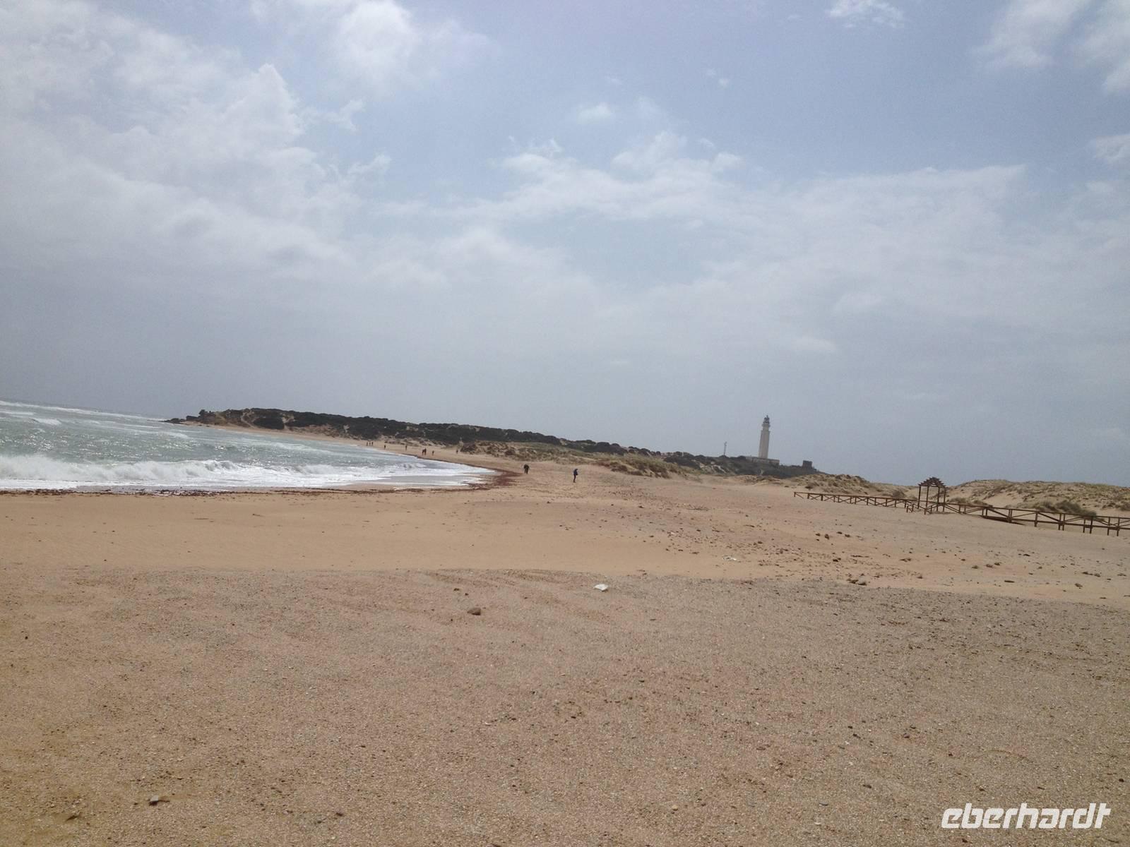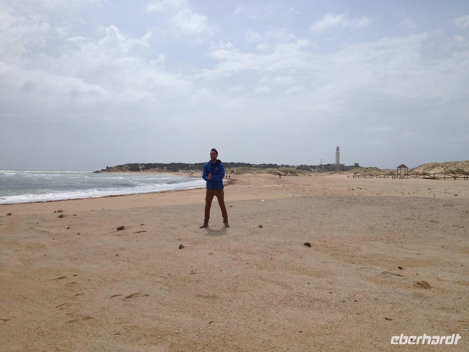 Am Trafalgar Kap ist es so windig, dass wir fast das Gefühl bekommen, wir könnten hier fliegen. Es ist eine tolle Erfahrung, am Kilomerlangen Strand zu stampfen. Wir begegnen sogar Pferde und Stiere, obwohl die Stiere nicht so groß sind wie der Stier von Osborne.