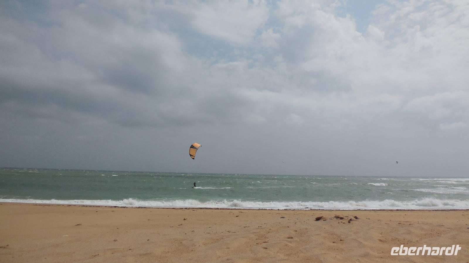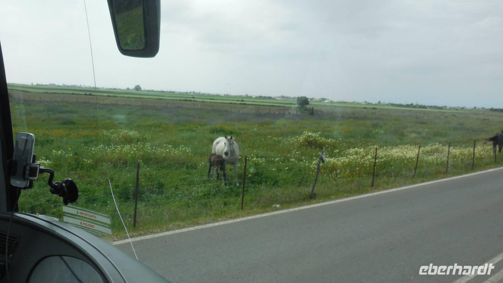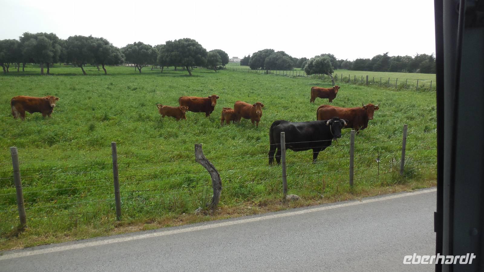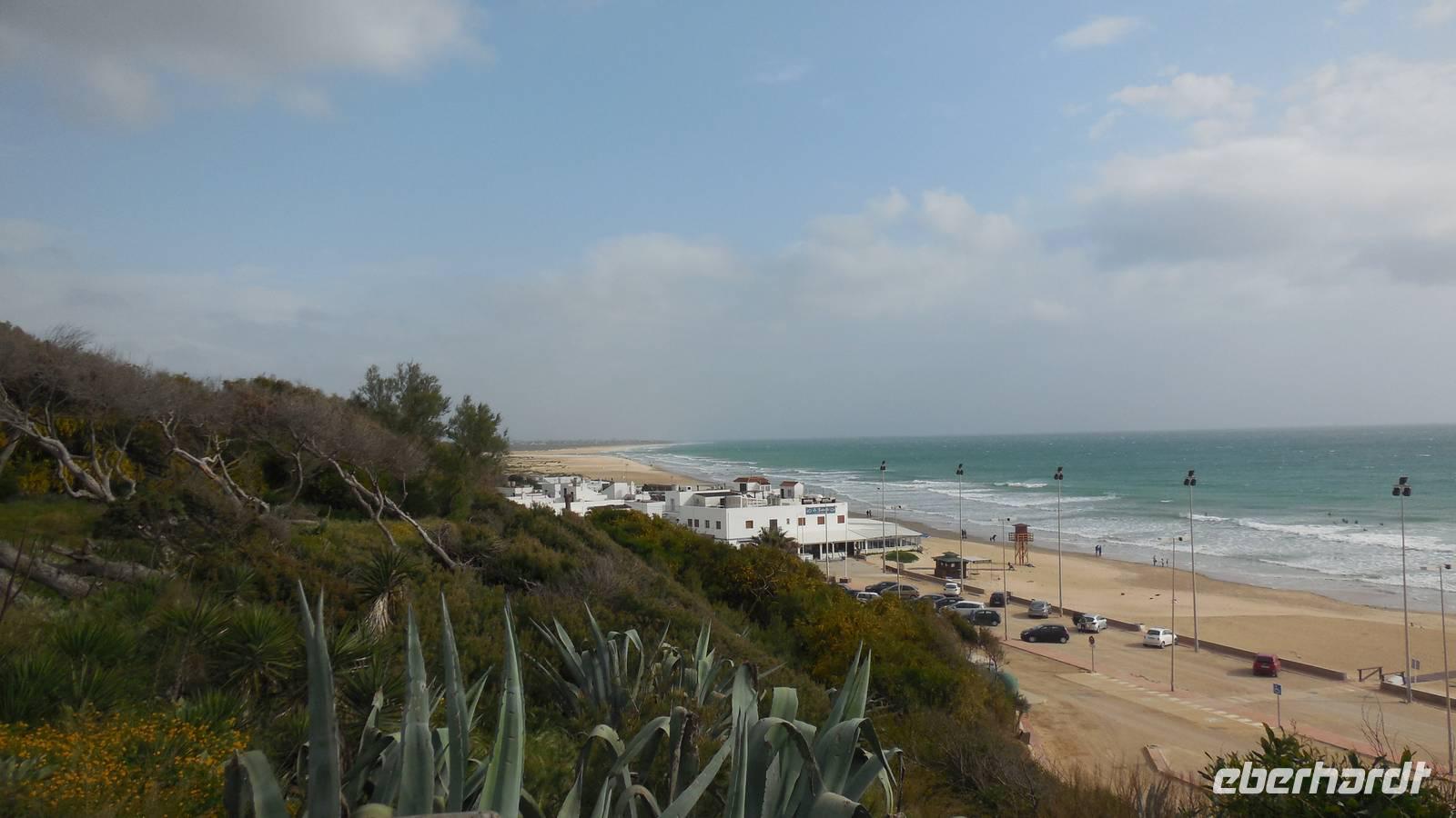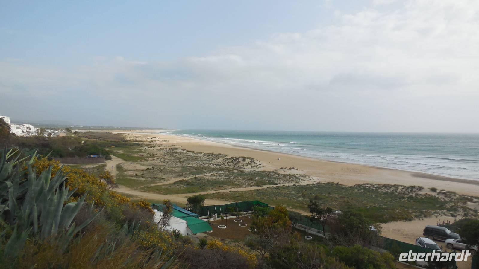 Am Trafalgar Kap ist es so windig, dass wir fast das Gefühl bekommen, wir könnten hier fliegen. Es ist eine tolle Erfahrung, am Kilomerlangen Strand zu stampfen. Wir begegnen sogar Pferde und Stiere, obwohl die Stiere nicht so groß sind wie der Stier von Osborne.