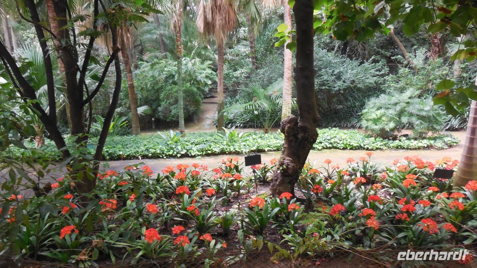 Ein Verdauungsspaziergang und frische Luft tut nach dem deftigen Essen wirklic h gut. Also spazieren wir im Botanischen Garten und bewundern die Vielfalt an Palmen, Kakteen sowie bunten Blumen.