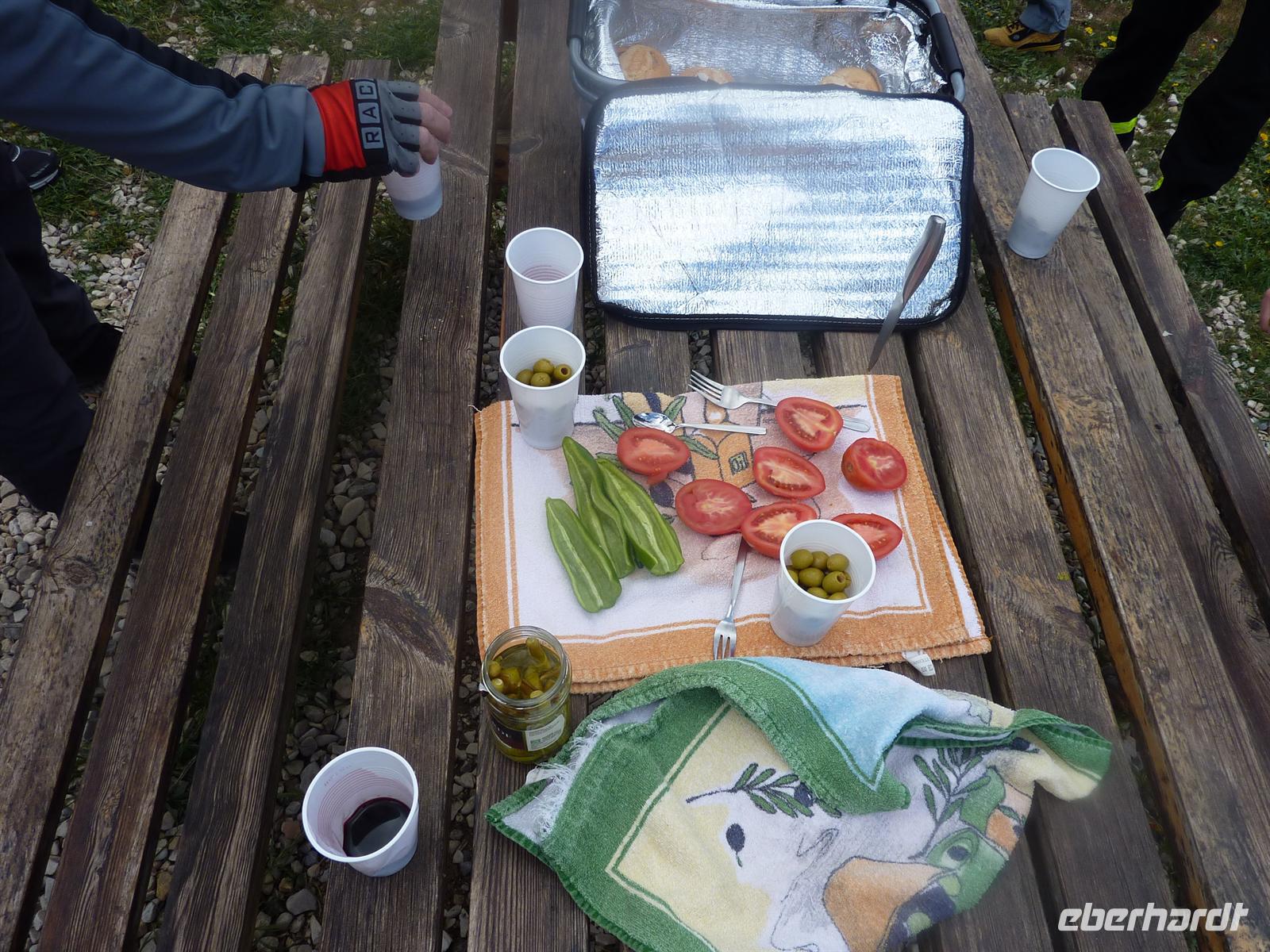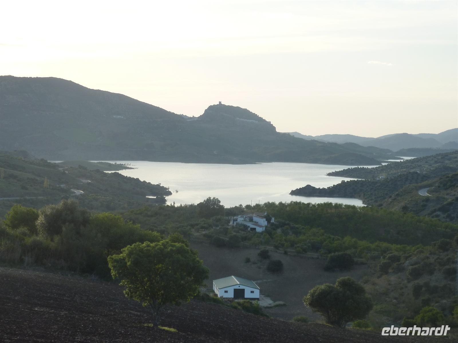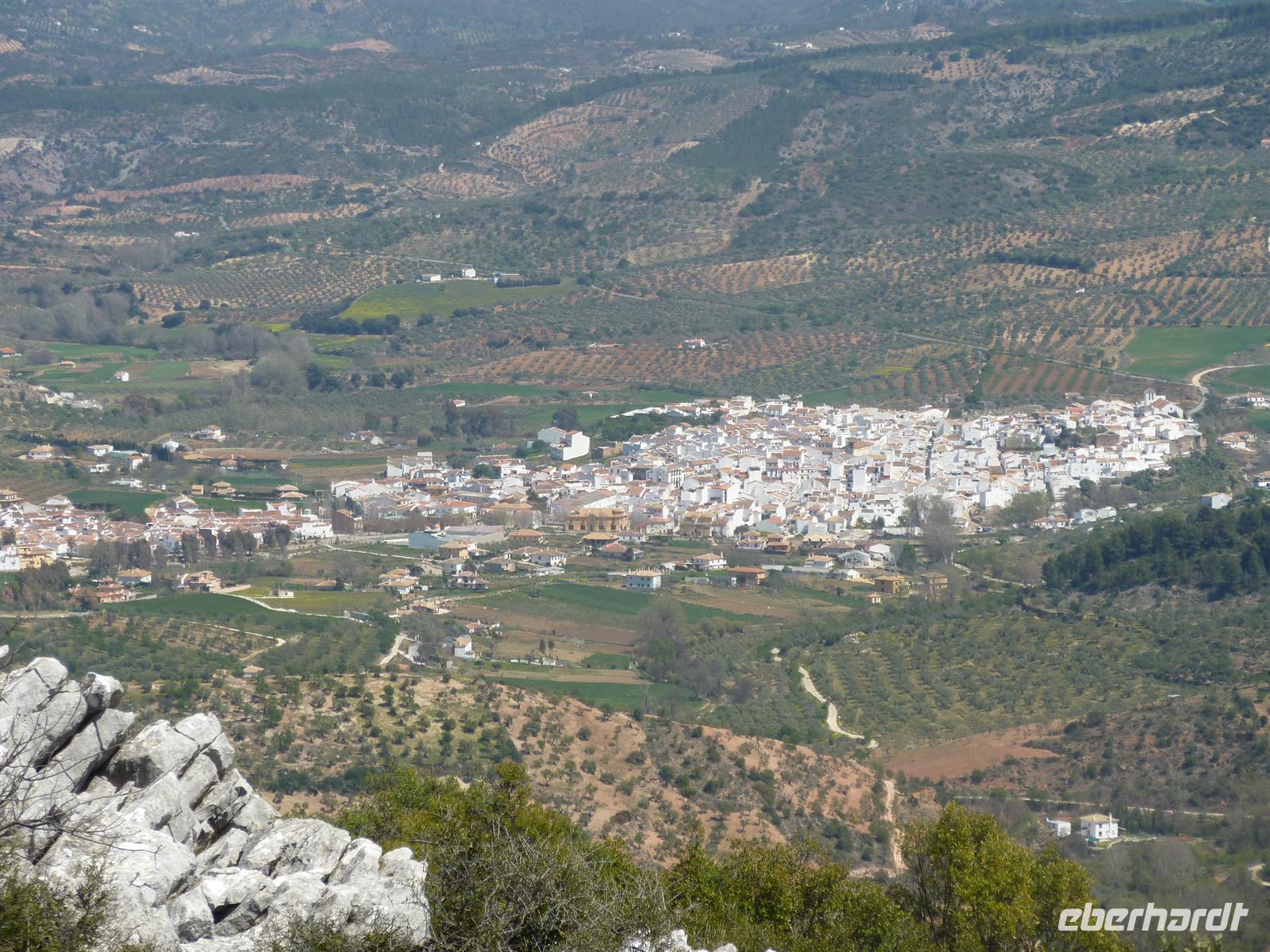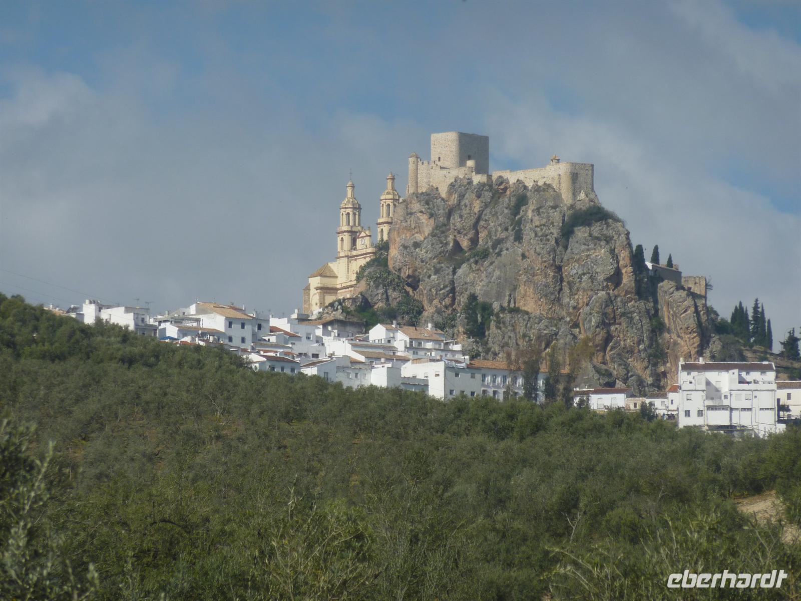Zur spanisch typischen Zeit um 08:30 Uhr frühstückten wir im Salon mit herrlichem Blick auf die Landschaft der weitflächigen Olivenhaine. Anschließend fuhren wir zum Startpunkt der heutigen Radtour in Lucena. Wir luden in Ruhe die Räder aus, nahmen noch notwendige Einstellarbeiten vor und los ging es. Die Strecke führte uns entlang der Via Verde de la Subbetica immer wieder vorbei an malerisch gelegenen Ortschaften und mit ständig wechselnden und beeindruckenden Landschaftssichten. Der Radweg aus festem Untergrund ließ sich sehr angenehm befahren. In Cabra legten wir eine erste kleine Rast ein. Die Temperaturen waren noch etwas frisch, aber trocken und das war entscheidend. Später ließ sich die Sonne immer öfter blicken, so dass die Temperaturen in einem für das Rad fahren angenehmen Bereich lagen. Und wir hatten Rückenwind! Unsere Mittagsrast hatte unser Buschauffeur an einem landschaftlich malerischen Punkt eingerichtet. Es gab mit spanischem Serrano Schinken und spanischem Käse belegte Brötchen, dazu frisches Gemüse