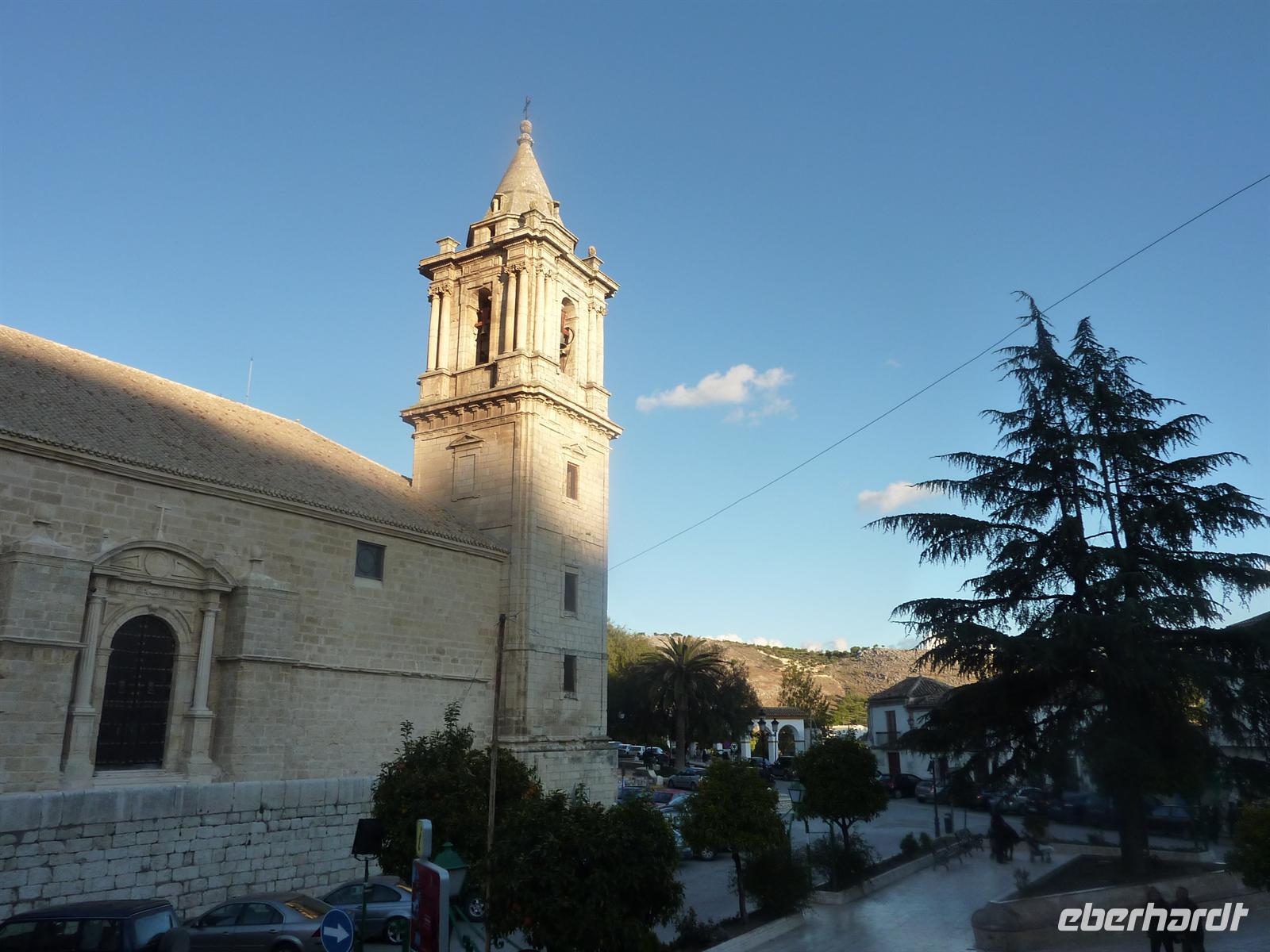 Nach reichhaltigem Frühstück machten wir uns um neun auf den Weg nach Olvera, einem ebenfalls ganz typischen Weißen Dorf und Start der Via Verde de la Sierra. Auf hohem Fels überragt die im 12. Jahrhundert erbaute maurische Festung und die im 19. Jahrhundert errichtete Kirche Nuestra Senora de la Encarnacion. Auf die Burg konnten wir leider nicht, da diese erst um 10:30 Uhr öffnet. So schauten wir uns den unterhalb gelegenen Friedhof des Ortes an und Jens organisierte, dass wir die Kirche doch schon von innen sehen konnten, obwohl diese erst 11 Uhr öffentlich zugänglich ist. Wir waren sehr beeindruckt von der Größe und dem hervorragenden baulichen Zustand des Gotteshauses. Denn schließlich ist Olvera ein eher kleiner Ort. Nicole war in der Zwischenzeit für das Picknick während unserer Radtour einkaufen. Und so fuhren wir mit dem Bus eine sehr steile Strasse hinab zum Beginn der Via Verde. Dank vieler gut geübter Hände waren wir schnell startbereit. Bei leicht bedecktem, trockenem Wetter startet wir in Olvera auf einem perfekten Asphaltradweg. So rollten wir mühelos durch die faszinierende Bergwelt, durch zahlreiche Tunnel hindurch. In Coripe bei Kilometer 22 legten wir unsere Picknickpause ein.