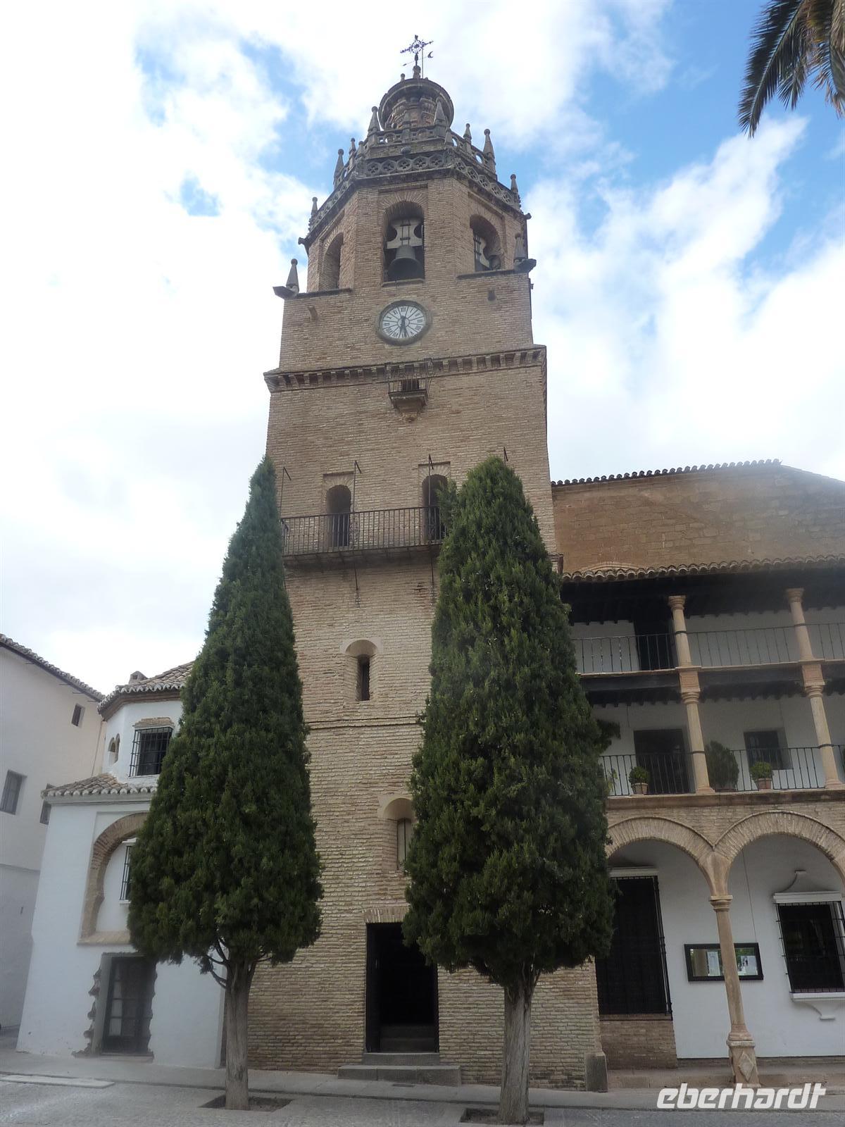Anschließend radelten wir weiter bei etwas frischem Wind und passierten den mit 990 Metern längsten Tunnel dieser Via Verde. Der weitere Weg war von festem, leicht schottrigem Untergrund, mit leicht abfallendem Gefälle. Dem aufkommenden Wunsch nach einem Aufstieg wurden wir kurz vor Ende mit einem kurzen 10% Anstieg gerecht. Mit 37 Kilometern endeten wir in Puerto Serrano unsere Genußradlertour mit faszinierenden Ausblicken in die Berglandschaft, 30 Tunneln und Viadukten über tiefe Schluchten. Nach der Rückfahrt zum Hotel hatten wir Zeit, uns in aller Ruhe frisch zu machen, denn es stand am späten Nachmittag noch unser Besuch in Ronda, der Hauptstadt des Stierkampfes, an. Unser örtlicher Stadtführer führte uns durch seine Heimatstadt und vermittelte uns viel Wissenswertes über Geschichte aber auch das Leben in der Gegenwart. Besonders interessant waren die Ausführungen in der Kathedrale mit einem Einblick hinter die Kulissen der traditionellen Osterprozessionen, denn hier wurden die mächtigen Tragegestelle gerade abgebaut. Etwas unterkühlt durch den vorherrschenden Wind an diesem Tag wählten wir alle zum Abendessen eine heiße Gemüsesuppe als Vorspeise und ließen uns dann wieder die Köstlichkeiten aus Pfanne und vom Grill schmecken. Nach kurzer Rückfahrt war es Zeit für die nächtliche Erholung.