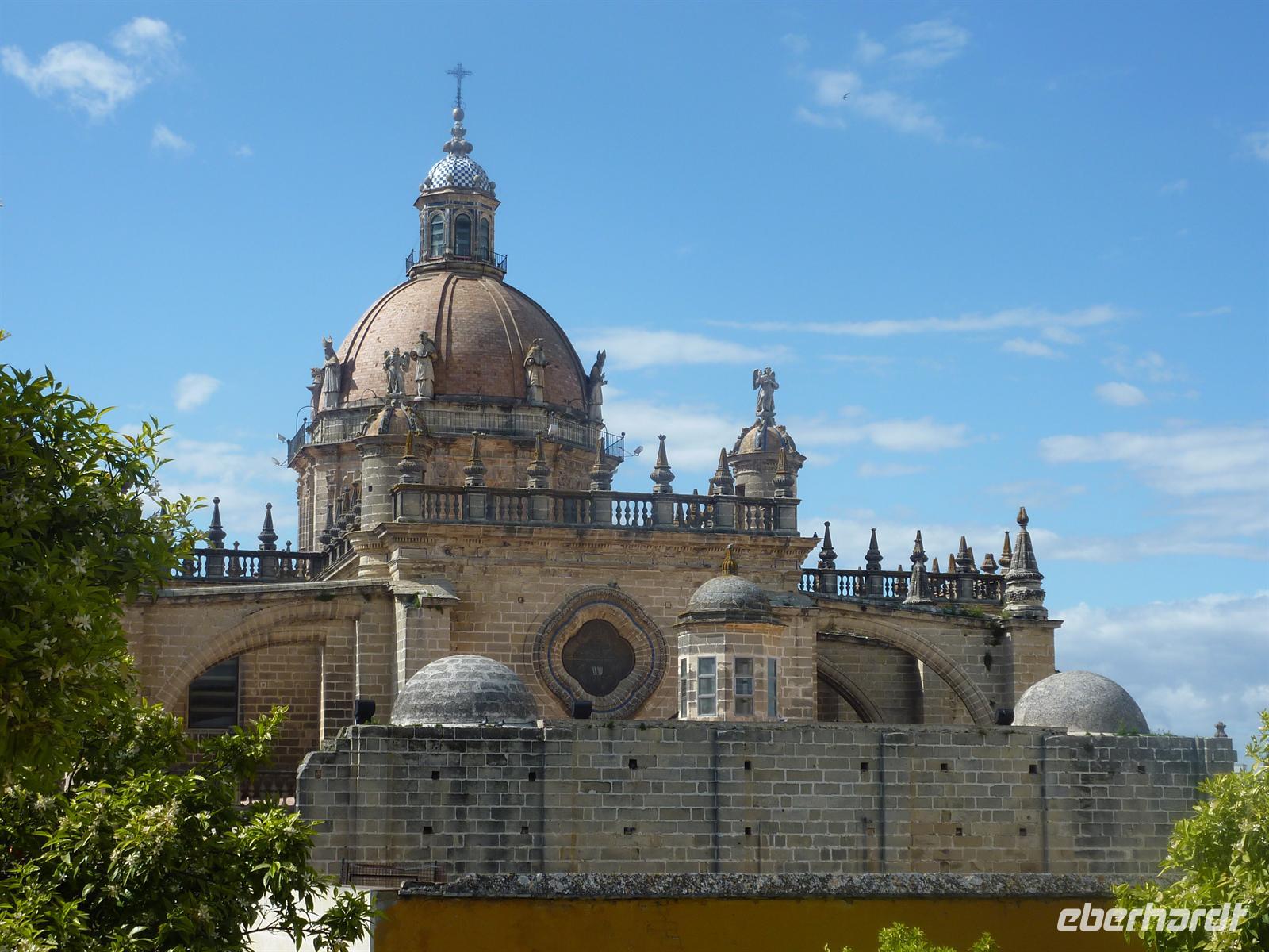 dass wir zumeist auf einem sehr schottrigen Weg fahren mussten. Aber wenigstens hörte der Regen auf und es ließ sich sogar die wieder die Sonne blicken. Erst gegen Ende auf Rota zu, wurde der Weg besser und es radelte sich die letzten Kilometer unserer Radreise in Andalusien wieder leicht. Wir kamen auf Grund der Umstände etwas verspätet im Hotel an. Nicole disponierte deshalb den Beginn unserer Stadtbesichtigung in Jerez um, so dass wir noch Zeit hatten, uns etwas zu erfrischen und zu stärken. Nach kurzer Fahrt nach Jerez lernten wir die alte Sherry- und Pferdestadt bei einer Stadtrundfahrt / -rundgang näher kennen. Und natürlich durfte auch ein Besuch in einer traditionellen Bodega mit anschliessender Verkostung nicht fehlen. Zum Abendessen waren wir wieder zurück im Hotel und wir labten uns an dem reichen und köstlichen Büffetangebot.