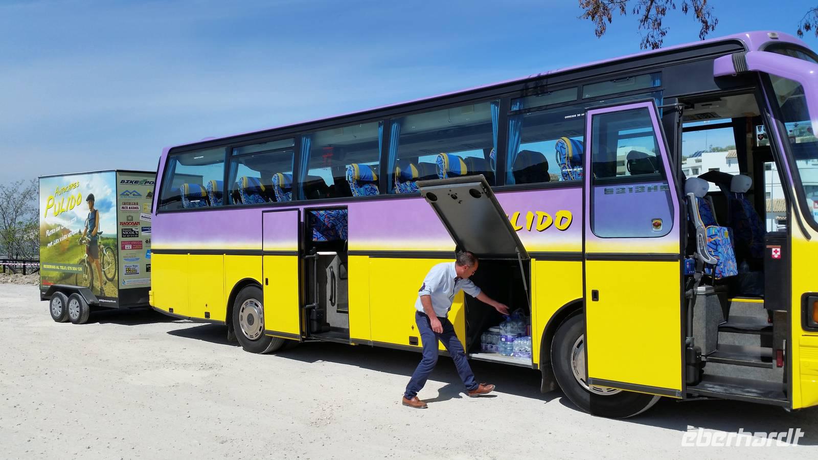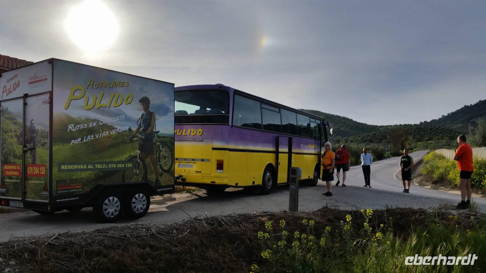 Unser Wecker waren die Vögel. Herrlich. Wir haben uns von dem gestrigen Flug-Tag ausgeruht und haben beim Frühstück Kraft geholt um den ersten Tag richtig zu starten. Nach dem herrlichen Frühstück im Hotel mit Blick auf die Oliven Feldern, die uns die nächsten Tage begleiten werden, brachte uns der Bus mit den schon geladenen neuen Rädern nach Lucena. Es ist nur circa 40 km von Luque entfernt. Auf dem Weg halten wir in Dona Mencia um zu fragen ob die Karlfreitag Prozession schon angefangen hatte aber sie startete bereits um 6 Uhr. Benjamin erzählte uns im Bus schon etwas darüber und welche innere und echte Bedeutung für ein katholisches Land wie Spanien diese Tage haben.