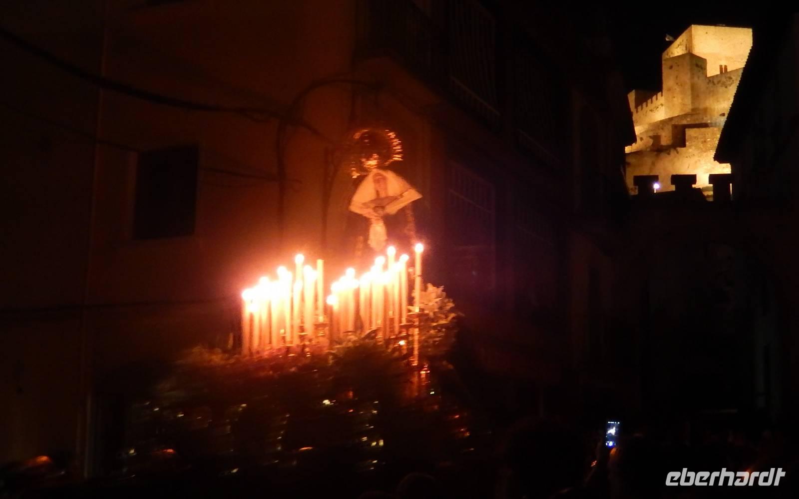 Zum Essen hatten wir heute eine besondere Verkostung. Ein Menü mit 7 Gängen.... Lecker. Nach dem -entschuldigen Sie nochmal- leckeren Essen, fuhren die meistens von uns mit dem Taxi nach Alcaudete, da sich hier um 23 Uhr sich am Hauptplatz die 2 Prozession von dem heiligen Begräbnis von Jesus am Karfreitag trafen. Auch wenn man nicht gerade gläubig oder zu gläubig ist, waren wir alle der Meinung, dass man sowas gesehen haben muss. Deswegen ist sogar diese Feierlichkeit von offiziell nazional Interest ausgezeichnet. Und bei Vollmond und unter den Sternen gingen wir ins Bett an einem Tag, wo die Christen hier feiern, weil es einmal einen Mann gab, der von sich selbst sagte, dass er Gott Sohn war und seine Liebe verkündete und sich freiwillig kreuzen und festnageln ließ gegen die Macht der damaligen römischen Zeiten. Und das wird 2015 Jahre später immer noch in einem mit christlichen Werten voll geprägten Europa gefeiert wird. Ich persönlich finde das bewundernswert. So was nicht zu vergessen, oder? Gute Nacht.