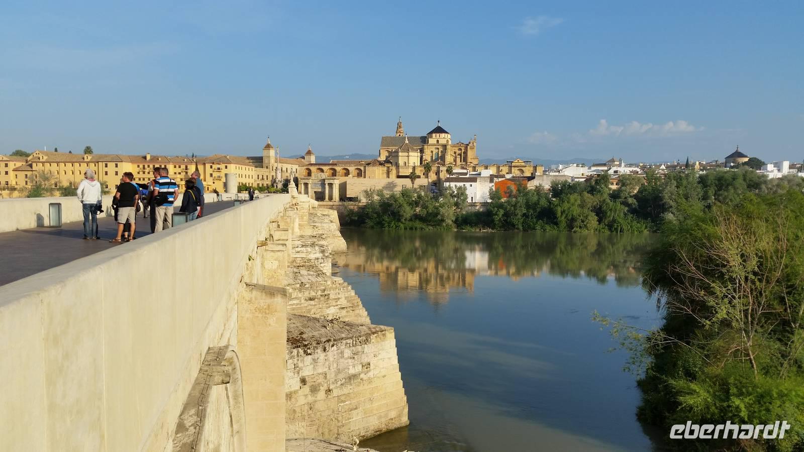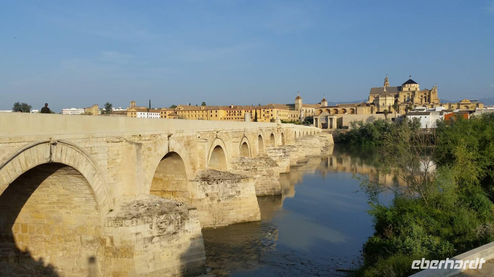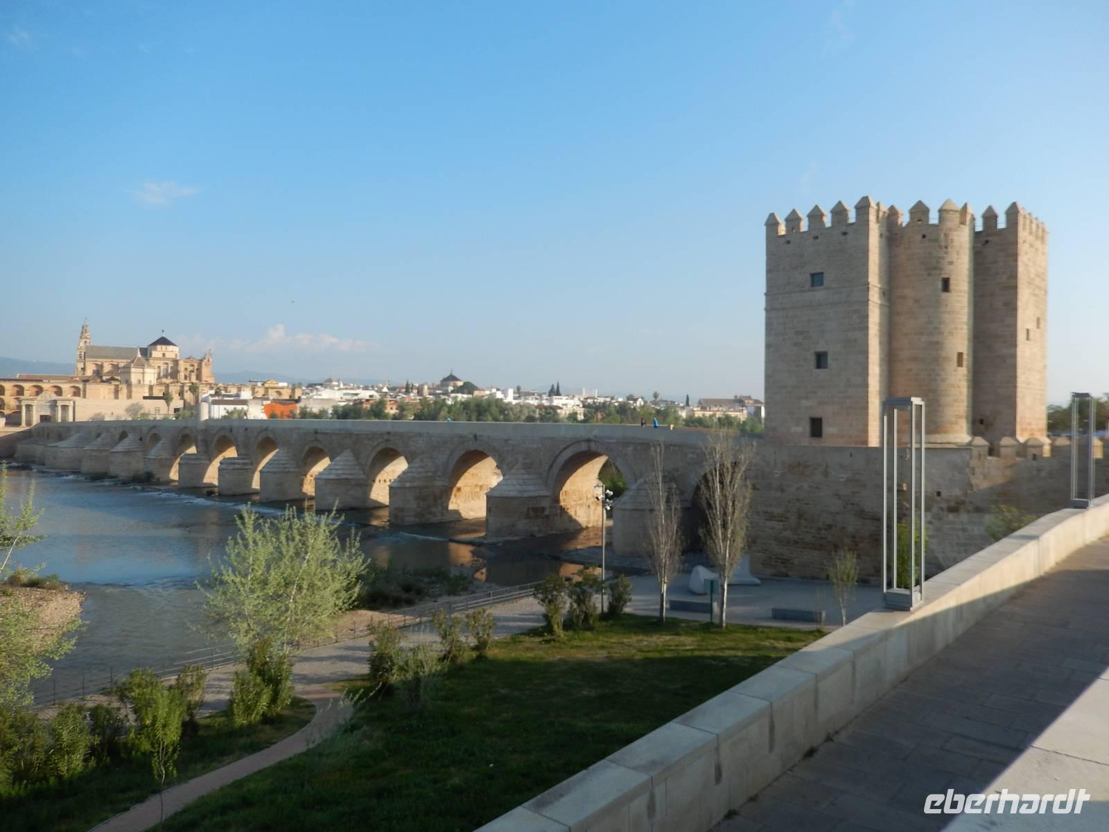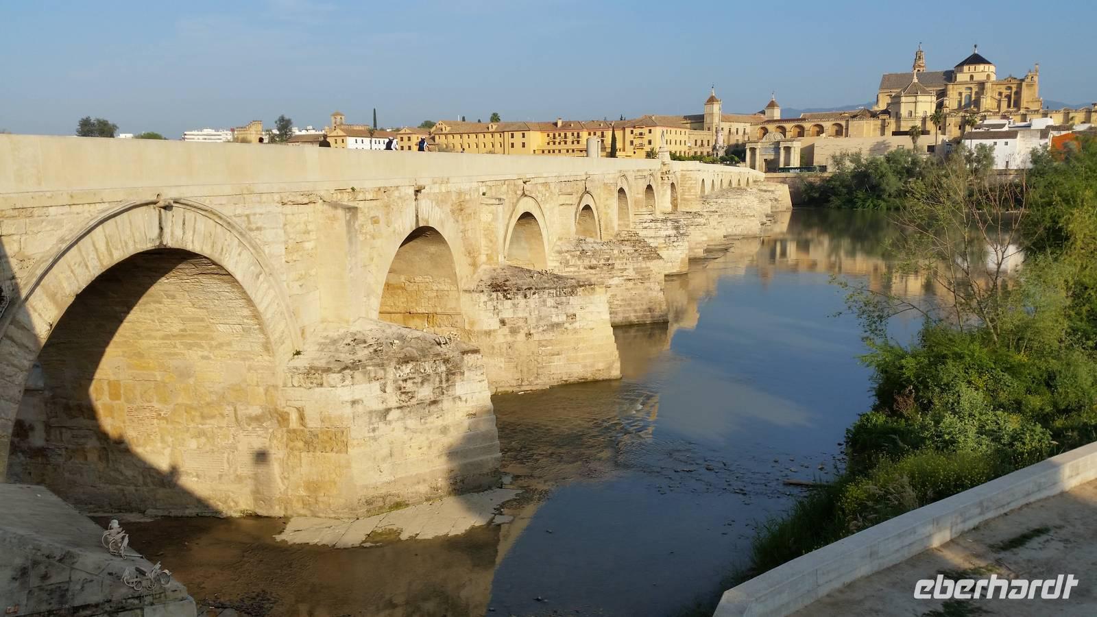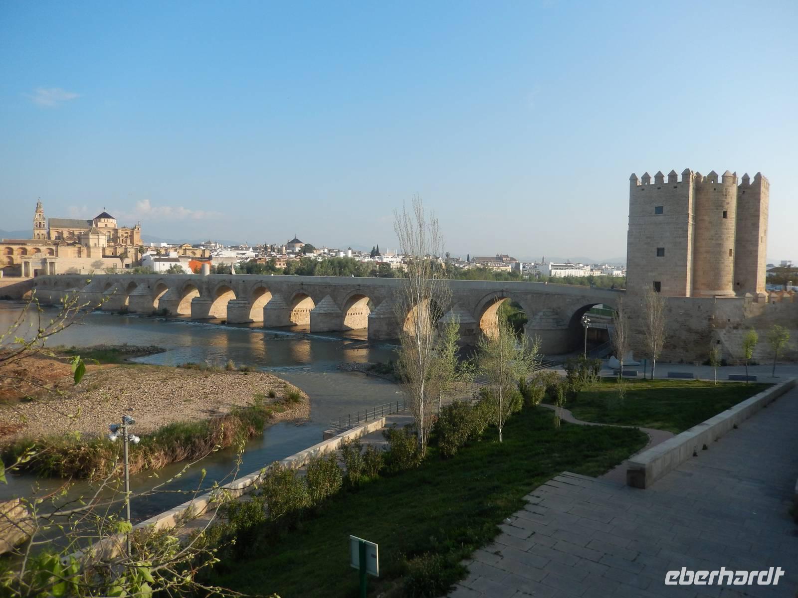 Heute ganz früh mussten wir uns leider von diesem schönen Hotel verabschieden. Es war Ostersonntag und die Sonne kam ganz neu und herrlich, um einen neuen Tag als Geschenk zu verkündigen. Was für eine ruhige Morgenstunde. Wir reisten schon mit Gepäck nach Cordoba, wo wir gegen 9 Uhr unsere Reiseleiterin Maria trafen und machten mit ihr eine geführte Stadtbesichtigung in der nach Sevilla bedeutendsten Stadt Andalusiens. Es war früh und wir konnten noch die morgendliche Stille genießen, bevor in den eng gewundenen Gassen das quirlige Leben erwacht. Wir trafen uns mit Maria auf der anderen Seite der römische Brücke Puente Romano, welche über den Fluß Guadalquivir führt, und gemeinsam überqueren wir die Brücke. Herrlich. Gegenüber von uns war die Mezquita vom Cordoba und wir holten die Eintrittskarten und Audio-guides, um sie richtig und in Ruhe zu besichtigen. Diese historische fantastische Mezquita ist die schönste Europas und man kann nicht mit Worten ausdrücken wie schön und imposant sie ist. Man muss sie einfach sehen. Wir hatten das riesige Glück, dass es Ostersonntag war und der Chor schon für die Osternmesse um 12 Uhr probte. Es was herrlich zu hören die „Alleluias" von dem Auferstehenden Sohn Gottes mit der Akustik und dem Klang diesem Jahrhunderte alten Gebäudes. Es war fast zum weinen.