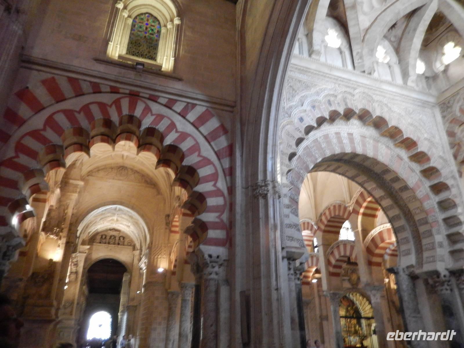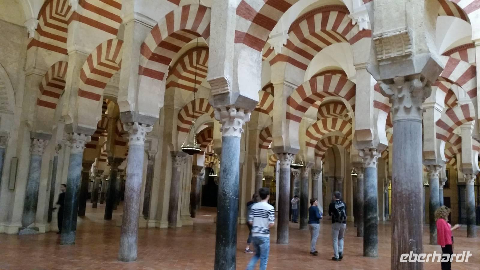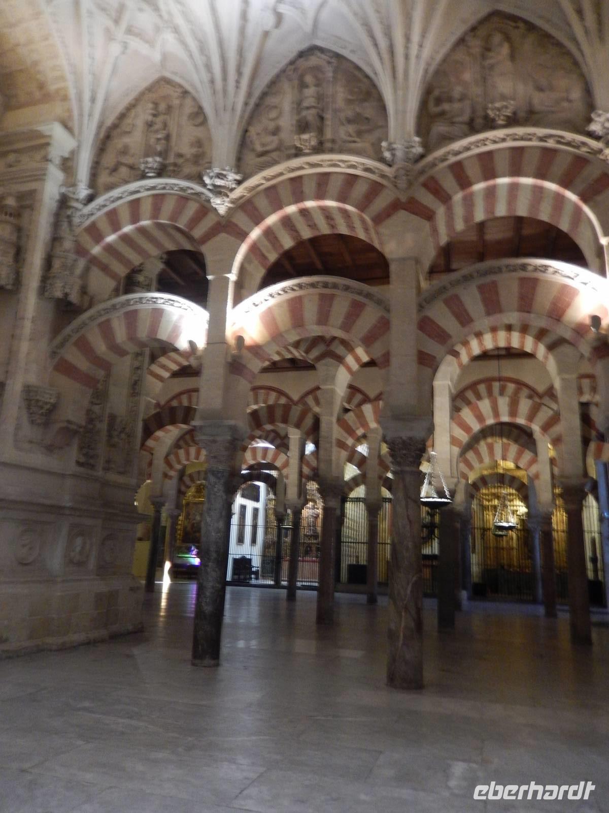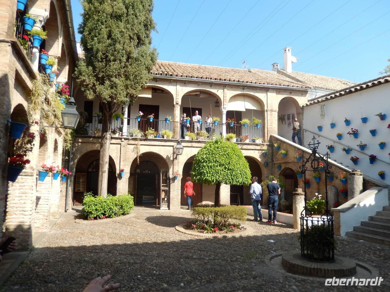 Heute ganz früh mussten wir uns leider von diesem schönen Hotel verabschieden. Es war Ostersonntag und die Sonne kam ganz neu und herrlich, um einen neuen Tag als Geschenk zu verkündigen. Was für eine ruhige Morgenstunde. Wir reisten schon mit Gepäck nach Cordoba, wo wir gegen 9 Uhr unsere Reiseleiterin Maria trafen und machten mit ihr eine geführte Stadtbesichtigung in der nach Sevilla bedeutendsten Stadt Andalusiens. Es war früh und wir konnten noch die morgendliche Stille genießen, bevor in den eng gewundenen Gassen das quirlige Leben erwacht. Wir trafen uns mit Maria auf der anderen Seite der römische Brücke Puente Romano, welche über den Fluß Guadalquivir führt, und gemeinsam überqueren wir die Brücke. Herrlich. Gegenüber von uns war die Mezquita vom Cordoba und wir holten die Eintrittskarten und Audio-guides, um sie richtig und in Ruhe zu besichtigen. Diese historische fantastische Mezquita ist die schönste Europas und man kann nicht mit Worten ausdrücken wie schön und imposant sie ist. Man muss sie einfach sehen. Wir hatten das riesige Glück, dass es Ostersonntag war und der Chor schon für die Osternmesse um 12 Uhr probte. Es was herrlich zu hören die „Alleluias" von dem Auferstehenden Sohn Gottes mit der Akustik und dem Klang diesem Jahrhunderte alten Gebäudes. Es war fast zum weinen.
