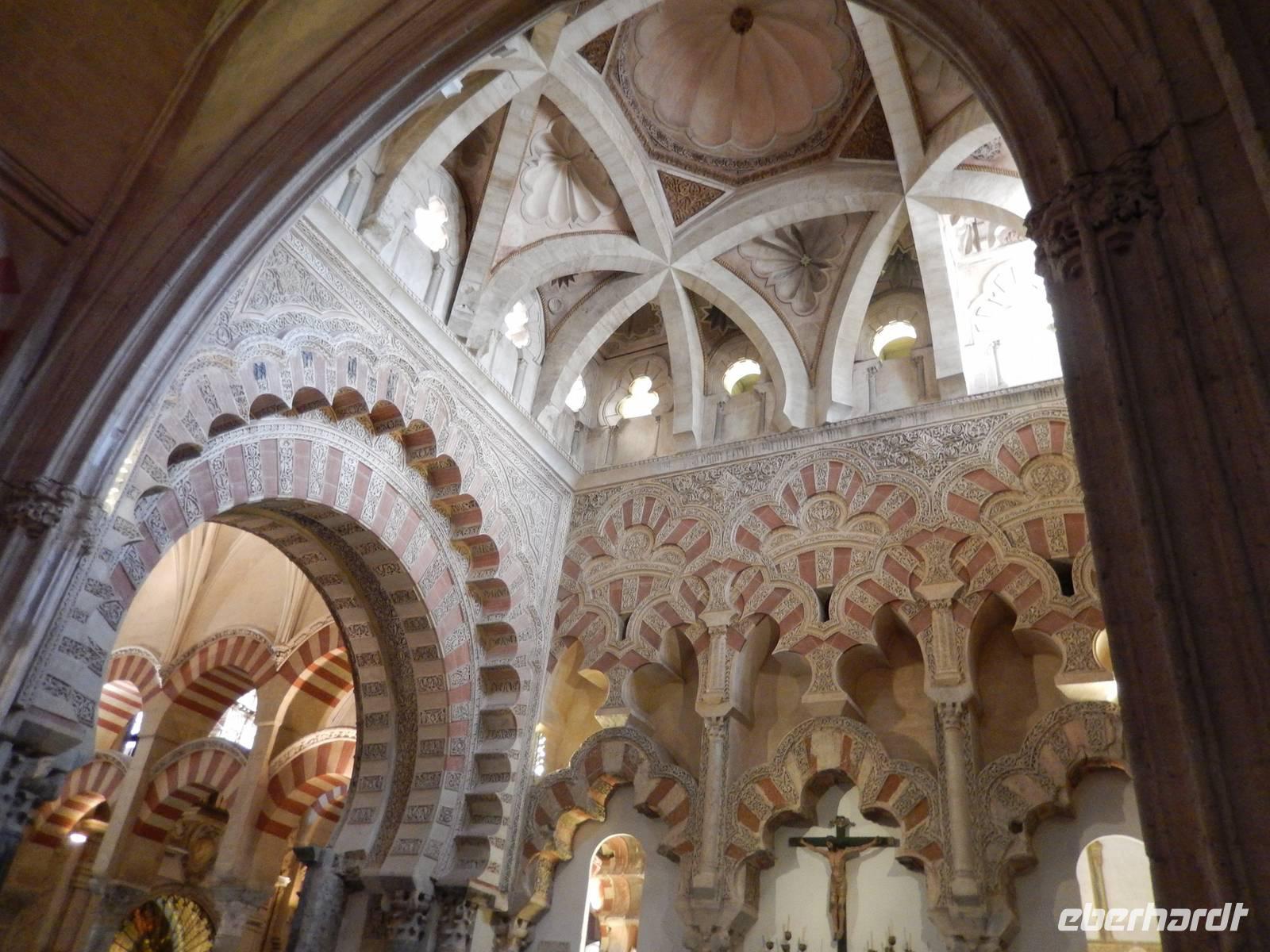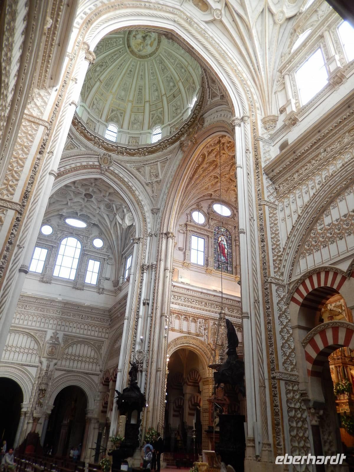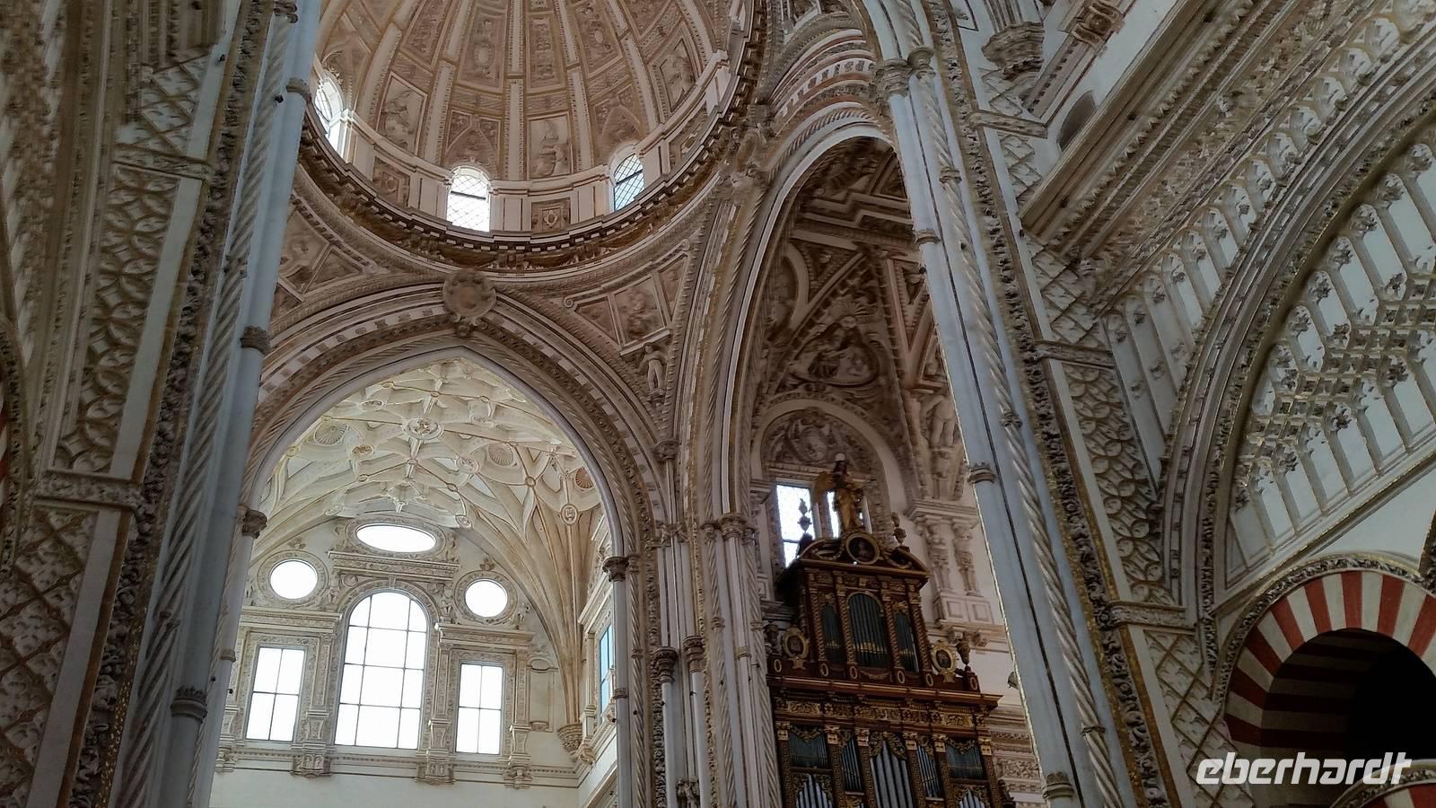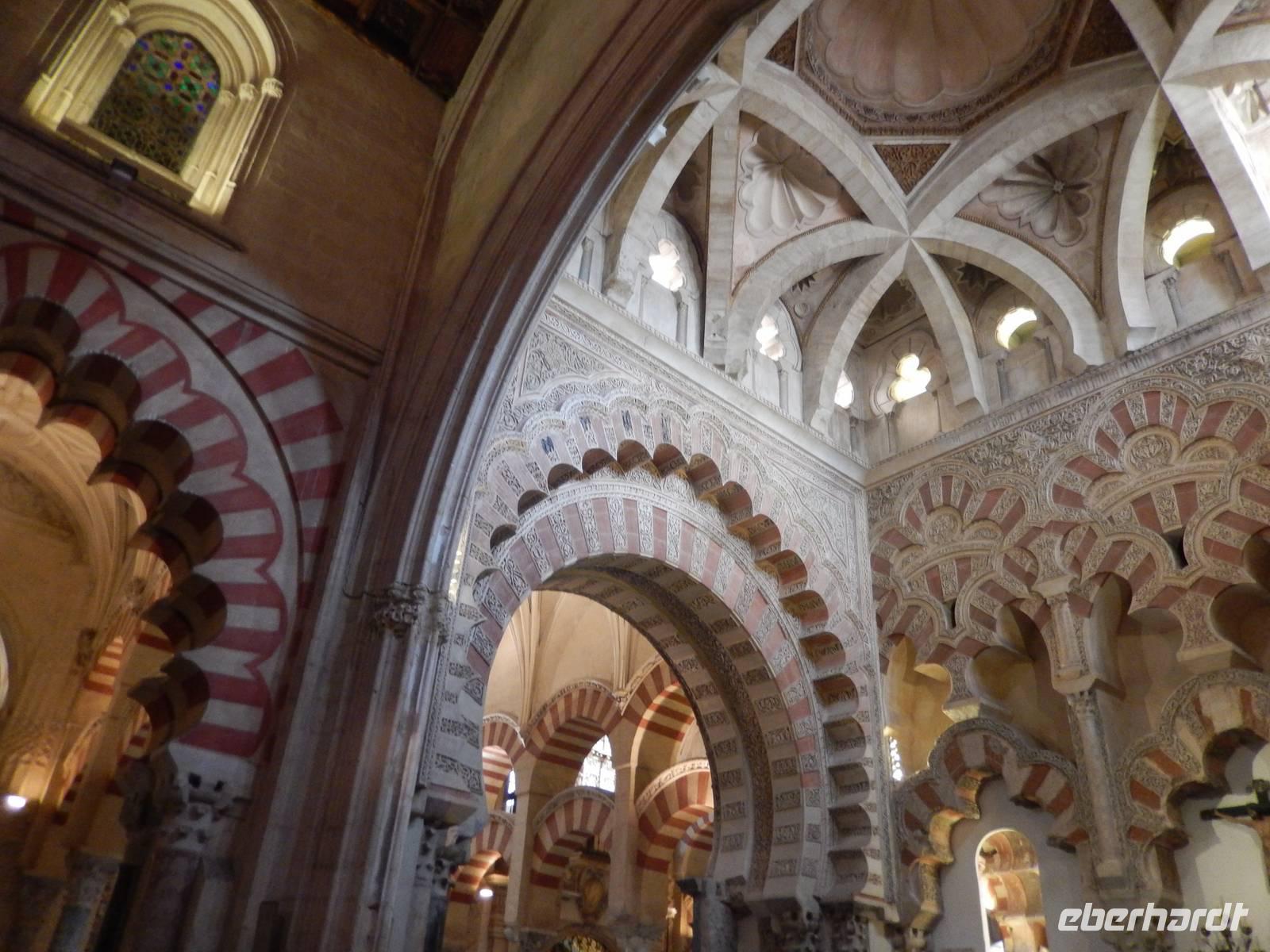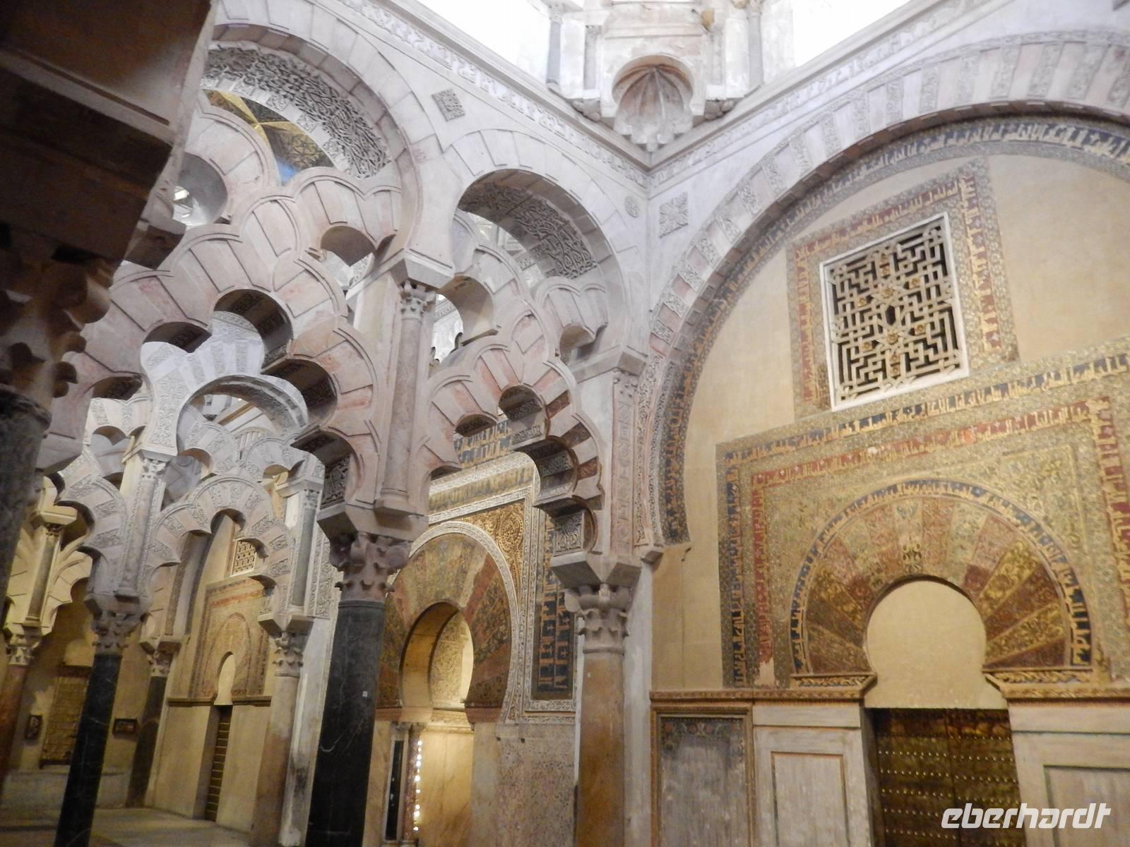 Heute ganz früh mussten wir uns leider von diesem schönen Hotel verabschieden. Es war Ostersonntag und die Sonne kam ganz neu und herrlich, um einen neuen Tag als Geschenk zu verkündigen. Was für eine ruhige Morgenstunde. Wir reisten schon mit Gepäck nach Cordoba, wo wir gegen 9 Uhr unsere Reiseleiterin Maria trafen und machten mit ihr eine geführte Stadtbesichtigung in der nach Sevilla bedeutendsten Stadt Andalusiens. Es war früh und wir konnten noch die morgendliche Stille genießen, bevor in den eng gewundenen Gassen das quirlige Leben erwacht. Wir trafen uns mit Maria auf der anderen Seite der römische Brücke Puente Romano, welche über den Fluß Guadalquivir führt, und gemeinsam überqueren wir die Brücke. Herrlich. Gegenüber von uns war die Mezquita vom Cordoba und wir holten die Eintrittskarten und Audio-guides, um sie richtig und in Ruhe zu besichtigen. Diese historische fantastische Mezquita ist die schönste Europas und man kann nicht mit Worten ausdrücken wie schön und imposant sie ist. Man muss sie einfach sehen. Wir hatten das riesige Glück, dass es Ostersonntag war und der Chor schon für die Osternmesse um 12 Uhr probte. Es was herrlich zu hören die „Alleluias" von dem Auferstehenden Sohn Gottes mit der Akustik und dem Klang diesem Jahrhunderte alten Gebäudes. Es war fast zum weinen.
