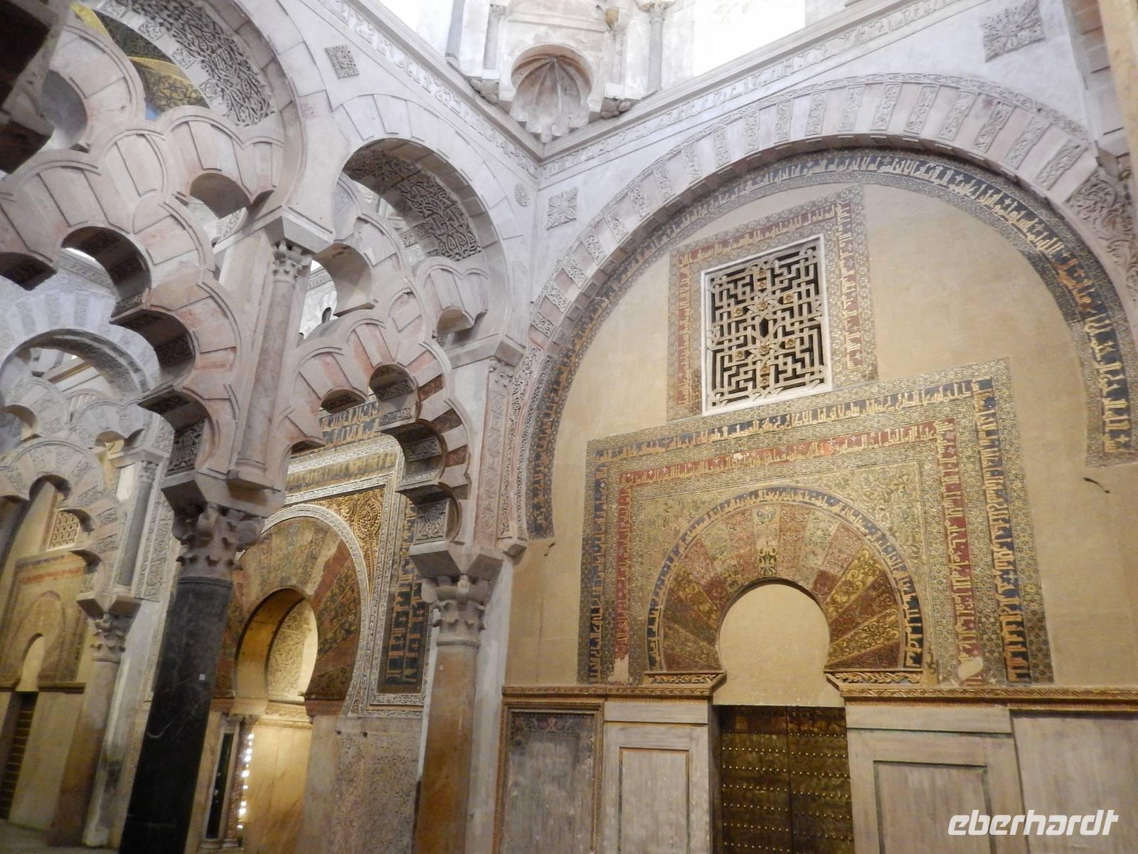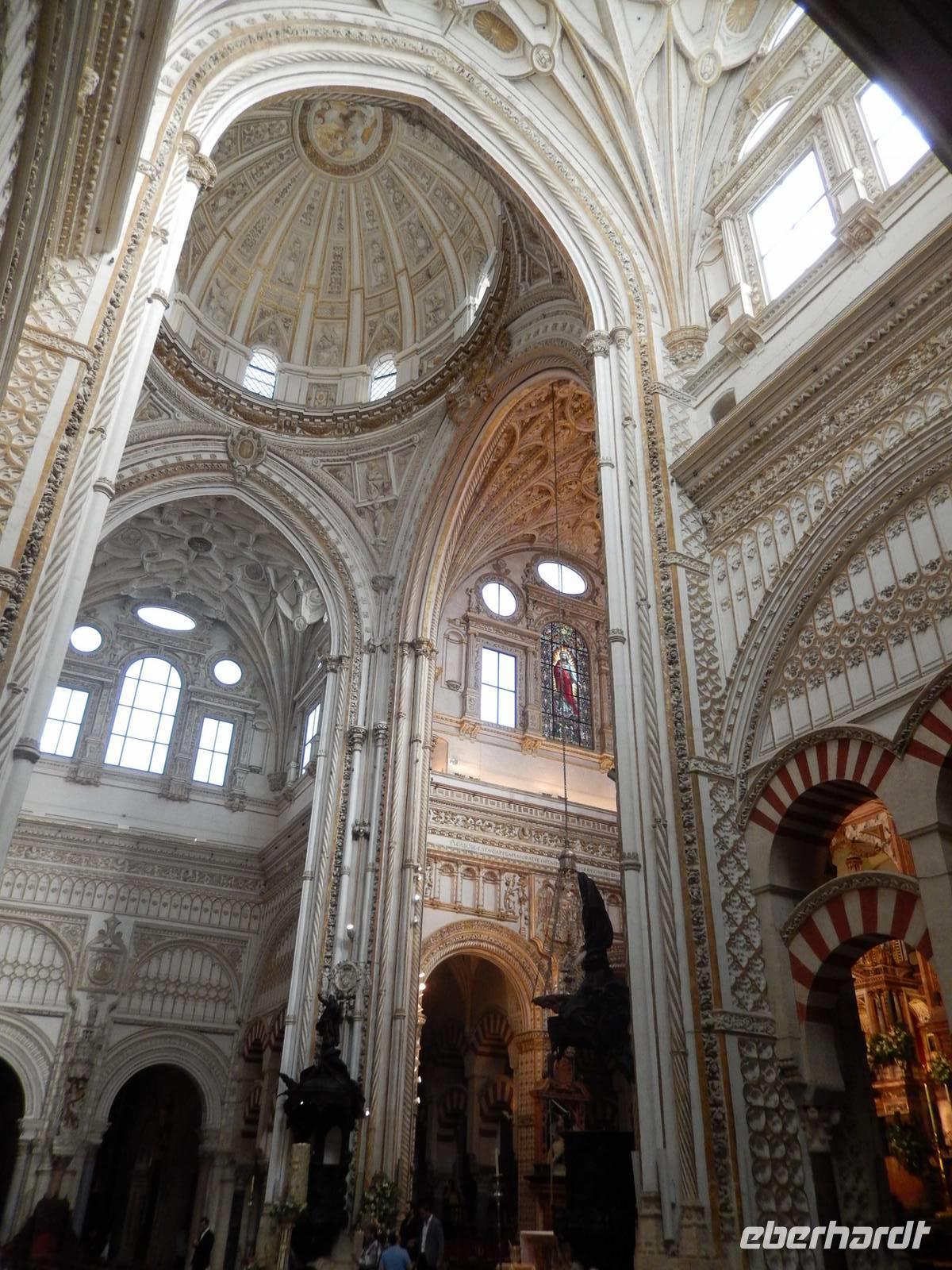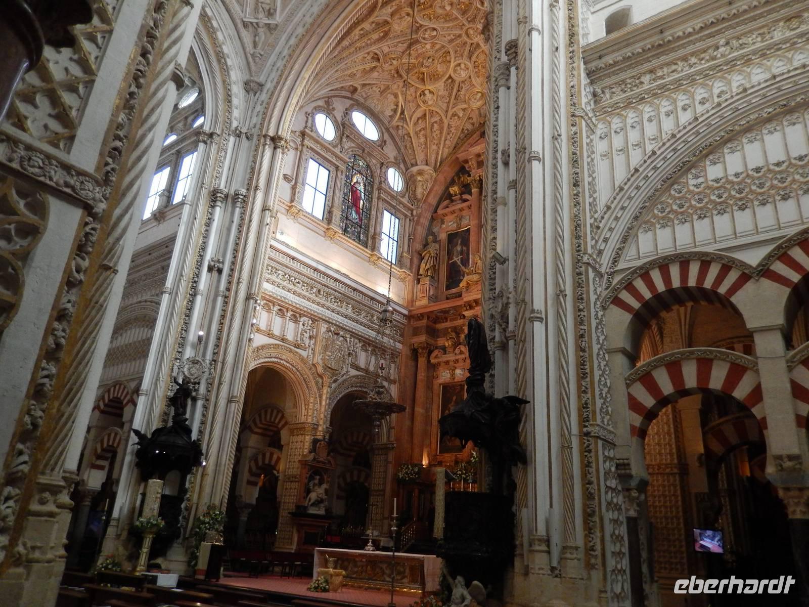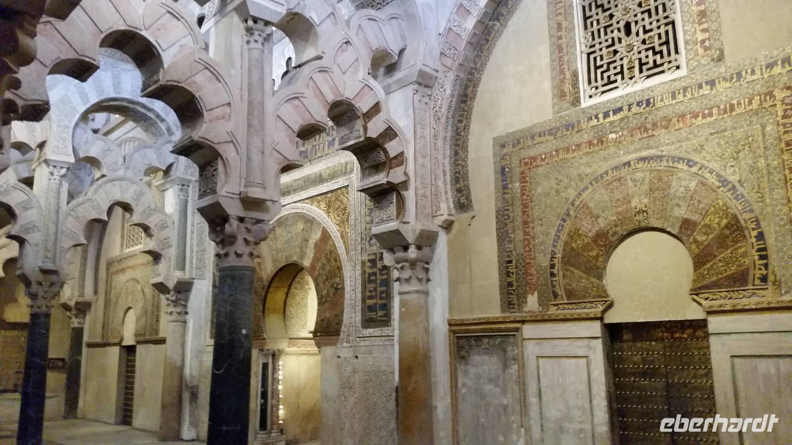 Heute ganz früh mussten wir uns leider von diesem schönen Hotel verabschieden. Es war Ostersonntag und die Sonne kam ganz neu und herrlich, um einen neuen Tag als Geschenk zu verkündigen. Was für eine ruhige Morgenstunde. Wir reisten schon mit Gepäck nach Cordoba, wo wir gegen 9 Uhr unsere Reiseleiterin Maria trafen und machten mit ihr eine geführte Stadtbesichtigung in der nach Sevilla bedeutendsten Stadt Andalusiens. Es war früh und wir konnten noch die morgendliche Stille genießen, bevor in den eng gewundenen Gassen das quirlige Leben erwacht. Wir trafen uns mit Maria auf der anderen Seite der römische Brücke Puente Romano, welche über den Fluß Guadalquivir führt, und gemeinsam überqueren wir die Brücke. Herrlich. Gegenüber von uns war die Mezquita vom Cordoba und wir holten die Eintrittskarten und Audio-guides, um sie richtig und in Ruhe zu besichtigen. Diese historische fantastische Mezquita ist die schönste Europas und man kann nicht mit Worten ausdrücken wie schön und imposant sie ist. Man muss sie einfach sehen. Wir hatten das riesige Glück, dass es Ostersonntag war und der Chor schon für die Osternmesse um 12 Uhr probte. Es was herrlich zu hören die „Alleluias" von dem Auferstehenden Sohn Gottes mit der Akustik und dem Klang diesem Jahrhunderte alten Gebäudes. Es war fast zum weinen.