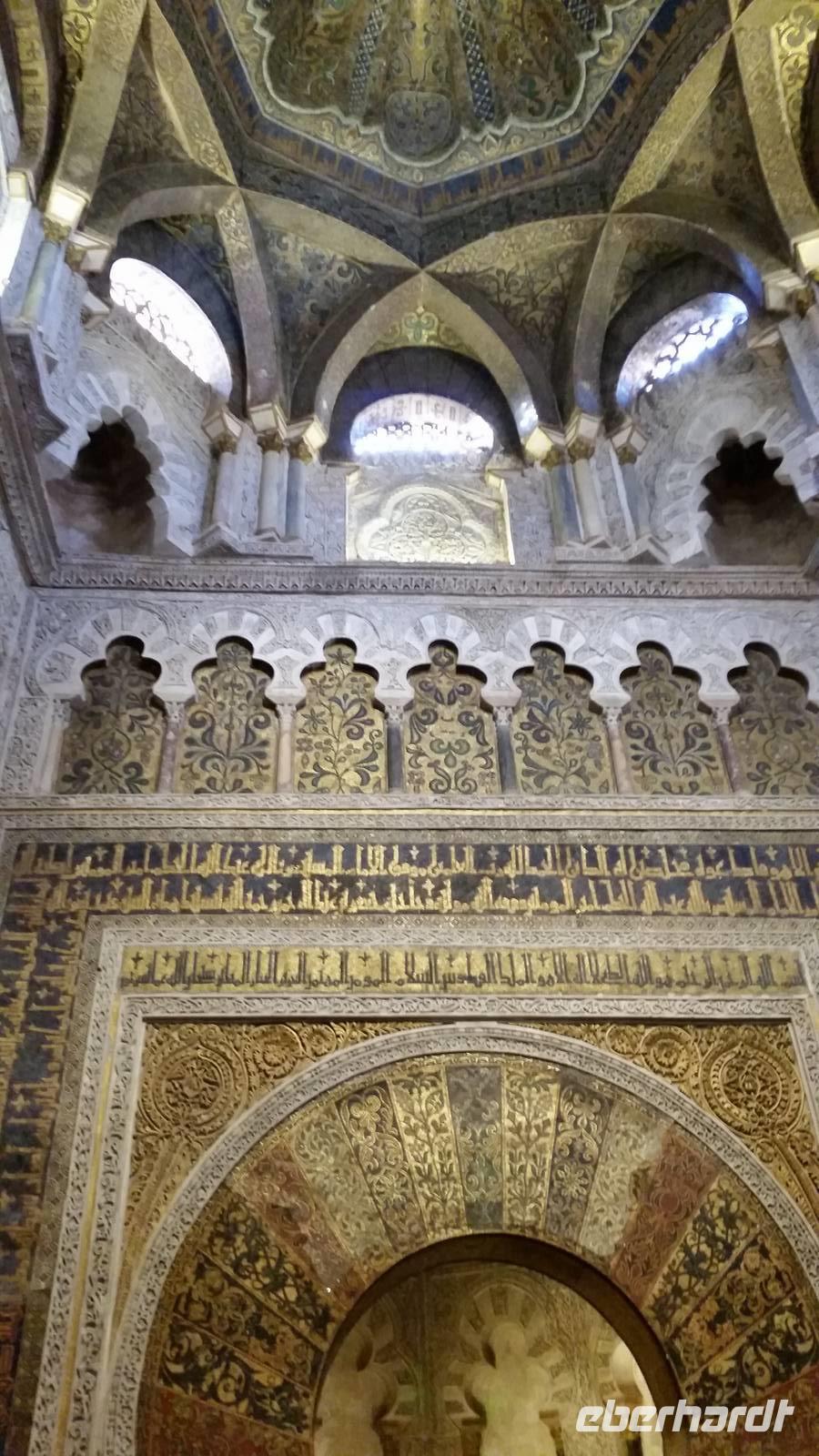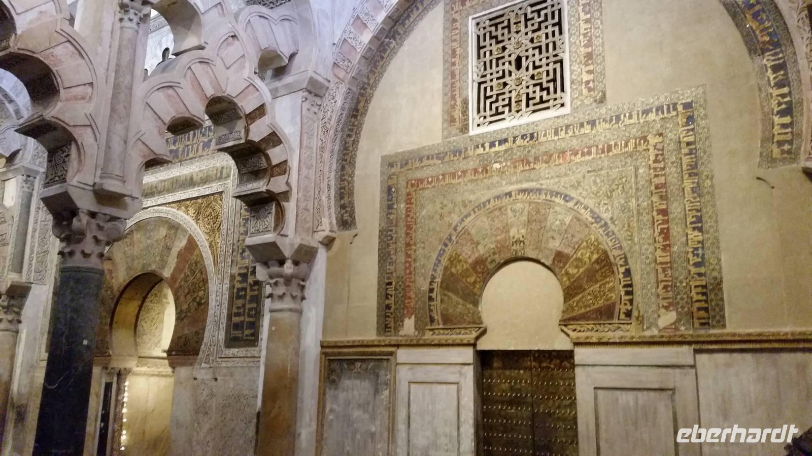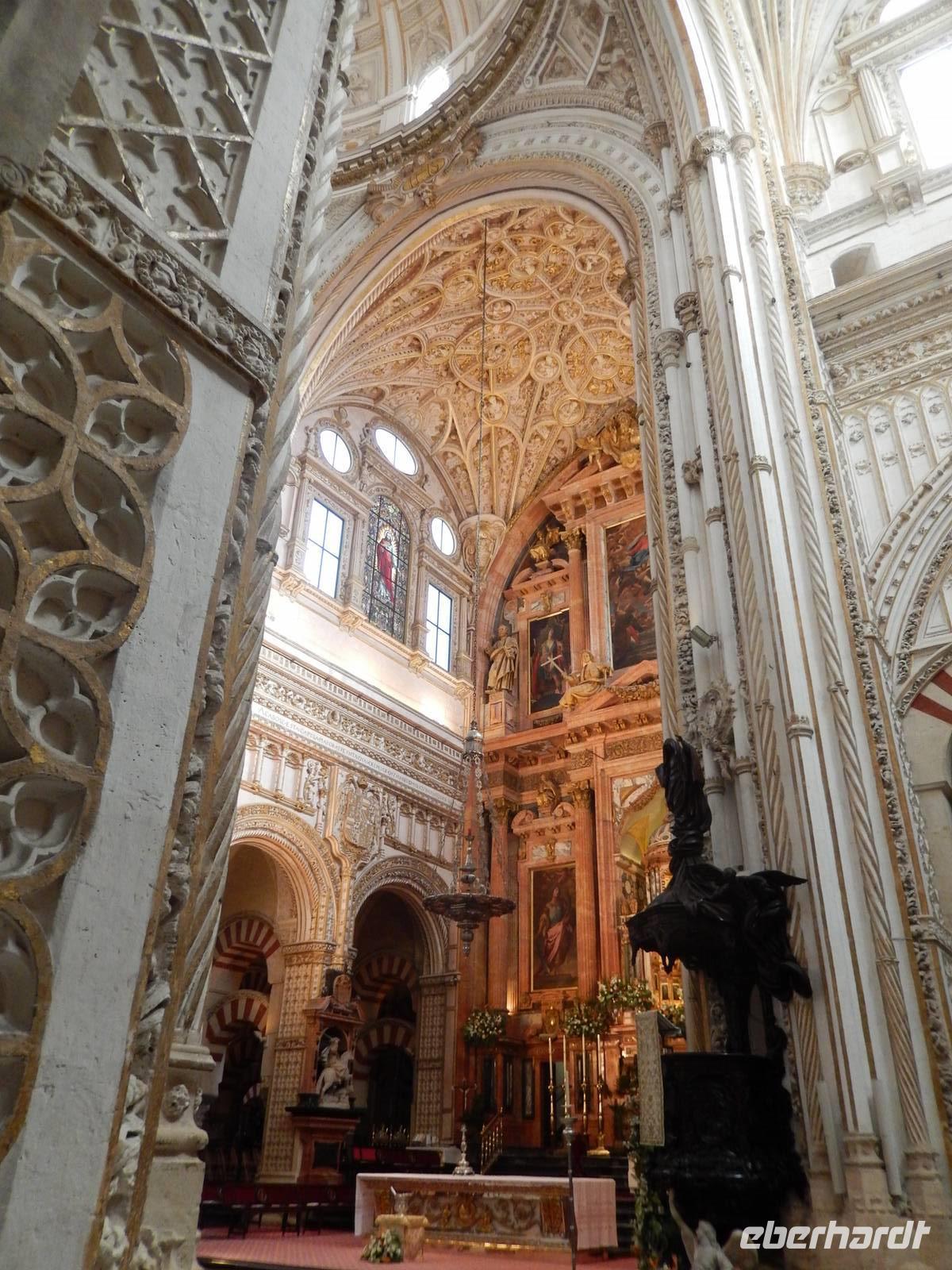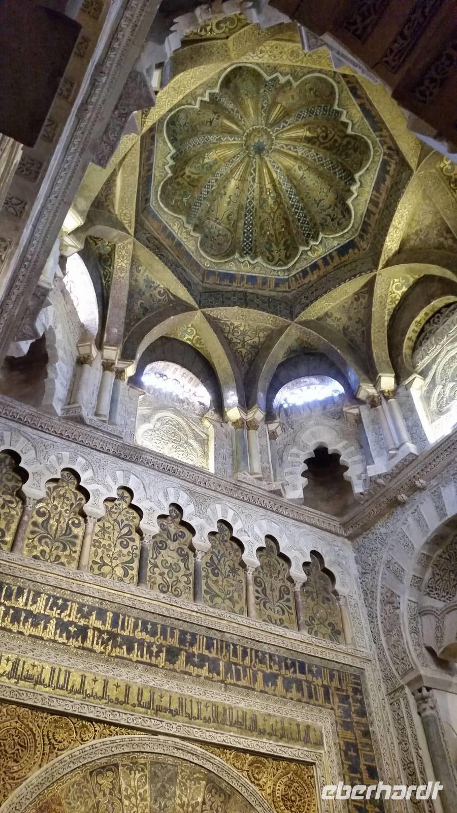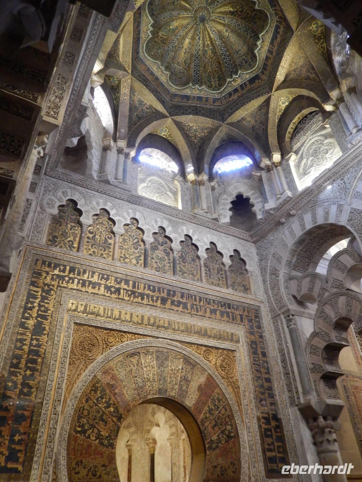 Heute ganz früh mussten wir uns leider von diesem schönen Hotel verabschieden. Es war Ostersonntag und die Sonne kam ganz neu und herrlich, um einen neuen Tag als Geschenk zu verkündigen. Was für eine ruhige Morgenstunde. Wir reisten schon mit Gepäck nach Cordoba, wo wir gegen 9 Uhr unsere Reiseleiterin Maria trafen und machten mit ihr eine geführte Stadtbesichtigung in der nach Sevilla bedeutendsten Stadt Andalusiens. Es war früh und wir konnten noch die morgendliche Stille genießen, bevor in den eng gewundenen Gassen das quirlige Leben erwacht. Wir trafen uns mit Maria auf der anderen Seite der römische Brücke Puente Romano, welche über den Fluß Guadalquivir führt, und gemeinsam überqueren wir die Brücke. Herrlich. Gegenüber von uns war die Mezquita vom Cordoba und wir holten die Eintrittskarten und Audio-guides, um sie richtig und in Ruhe zu besichtigen. Diese historische fantastische Mezquita ist die schönste Europas und man kann nicht mit Worten ausdrücken wie schön und imposant sie ist. Man muss sie einfach sehen. Wir hatten das riesige Glück, dass es Ostersonntag war und der Chor schon für die Osternmesse um 12 Uhr probte. Es was herrlich zu hören die „Alleluias" von dem Auferstehenden Sohn Gottes mit der Akustik und dem Klang diesem Jahrhunderte alten Gebäudes. Es war fast zum weinen.