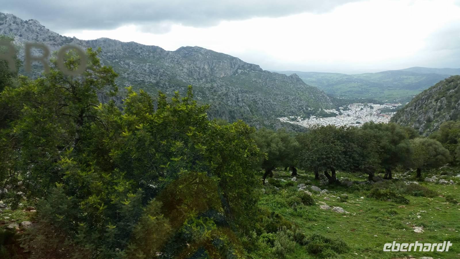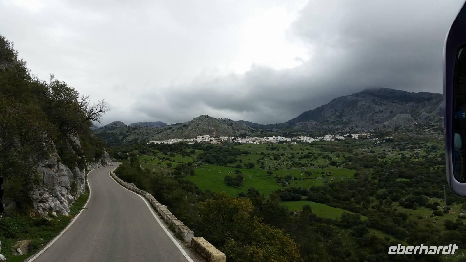 Am Morgen verabschiedeten wir uns von der Küste und fuhren in die Bergwelt um Ronda, in die Sierra de la Grazalema, die regenreichste Region Spaniens. Aber wieso? Die Wolken vom Atlantik sind voller Wasser und hängen dadurch sehr tief. Auf dem Festland treffen sie dann auf die Bergkette und müssen das Wasser abgeben, um über die Berge zu kommen, daraus folgt dann der Regen. Viele könnten denken, Südspanien ist überall flach und trocken, aber in den nächsten Tagen werden wir erfahren, dass das nicht überall der Fall ist. „Warum ist alles so grün?" fragen wir uns. In den nächsten Tagen erkunden wir das Grazalema-Gebirge, den regenreichsten Ort Spaniens. Eine bemerkenswerte Besonderheit ist das Klima des Ortes. Grazalema weist die höchste jährliche Niederschlagsmenge Spaniens auf und selbst die in wenigen Kilometern entfernten Nachbarorte erreichen nur knapp ein Viertel dieser Menge. Deswegen ist das Gebiet durch eine für Andalusien außerordentliche grüne und reiche Vegetation gekennzeichnet.