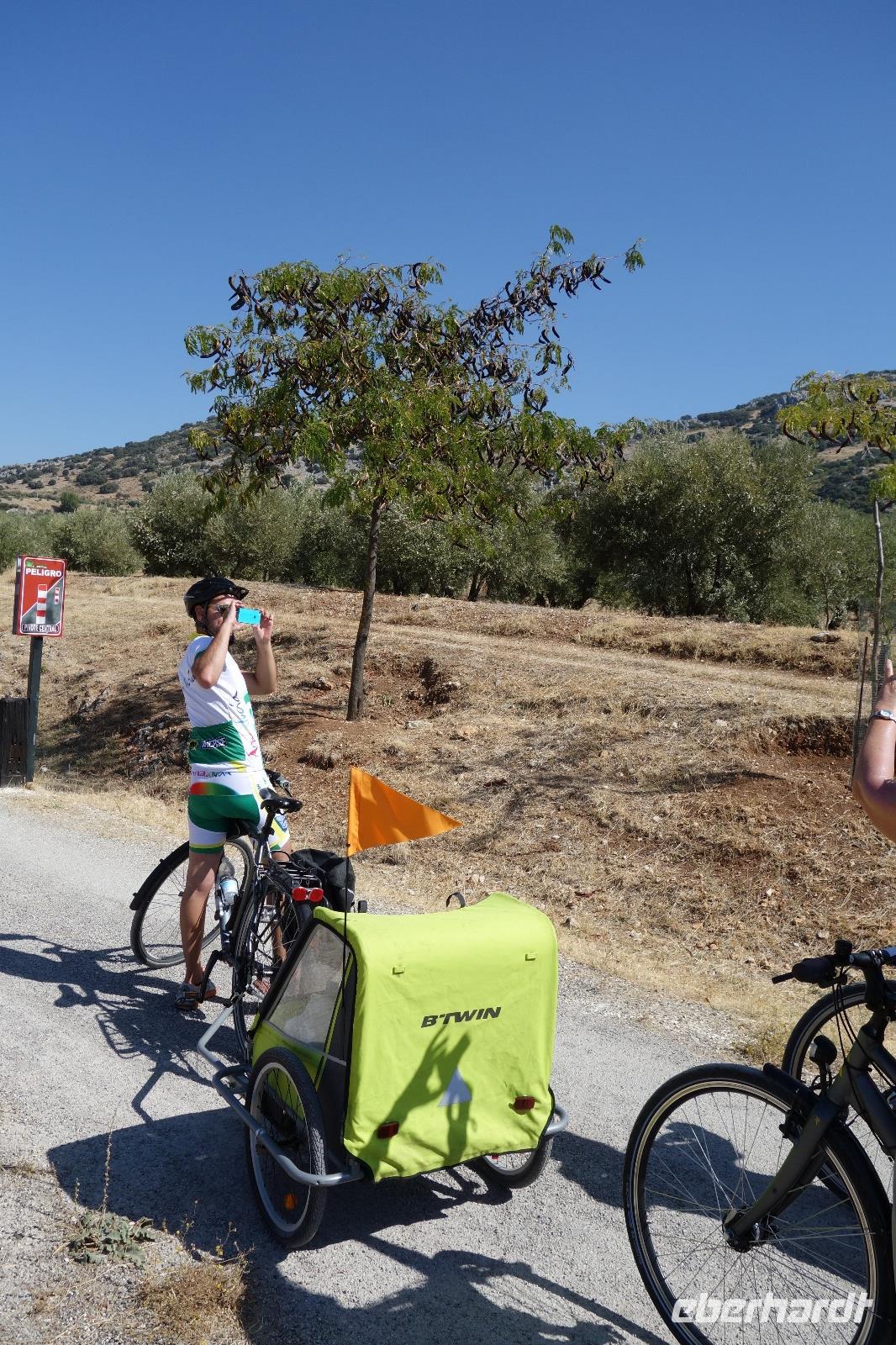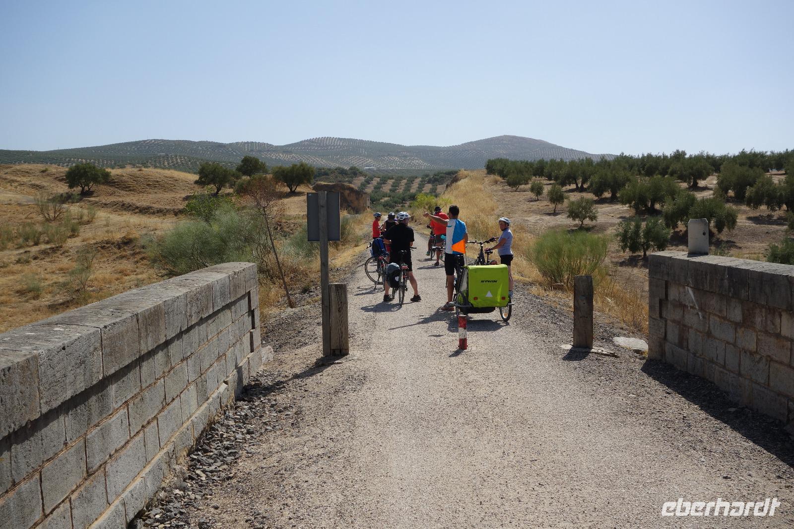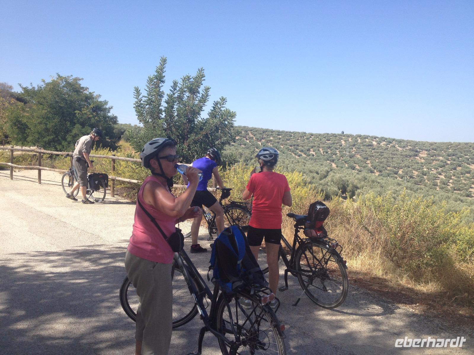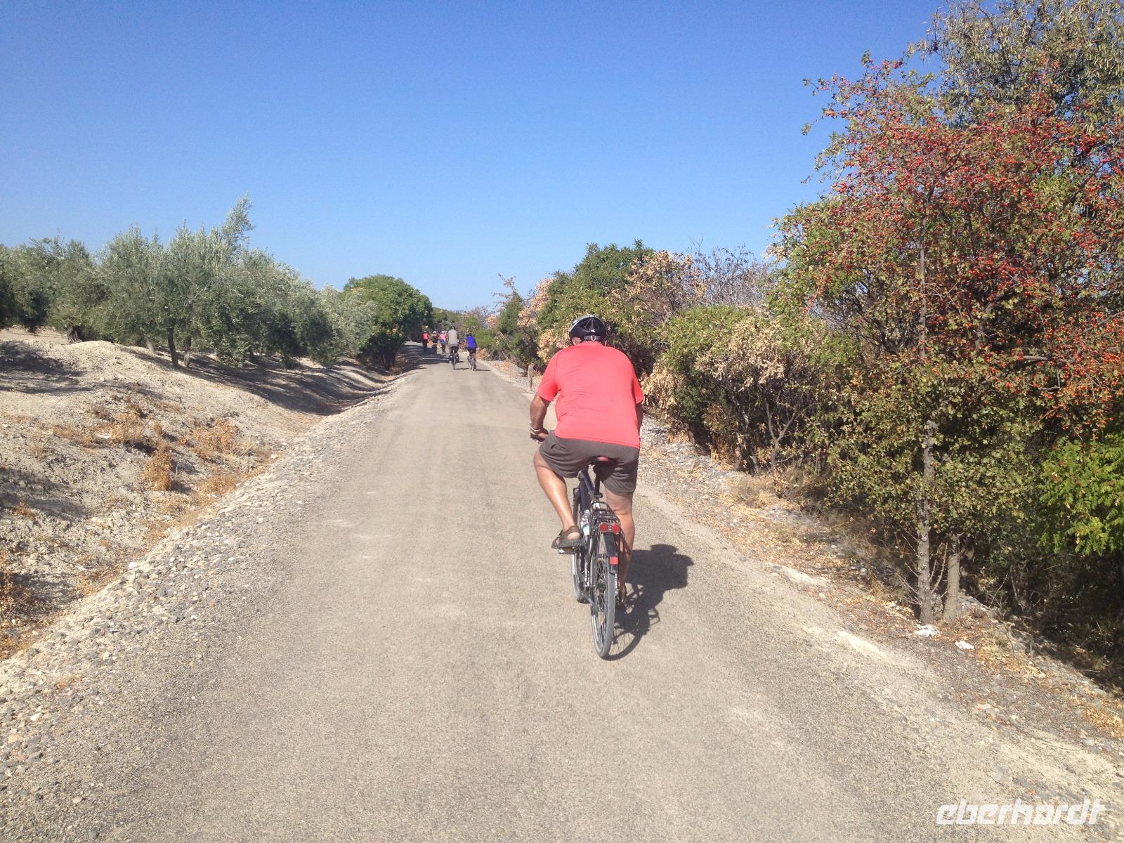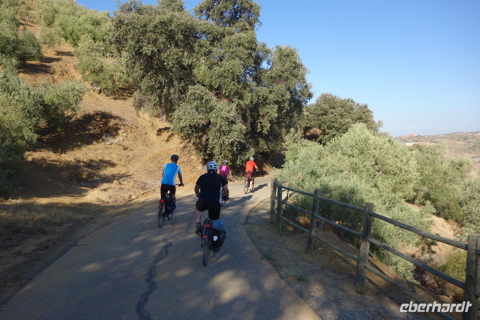 Das Thema des Tages waren Oliven und Olivenöl. Wir fuhren nach Jaén, wo wir unsere Fahrräder ausluden. Dieses Mal führte unser Weg über den Vía Verde del Aceite. Dort fährt man über die großen Olivenbaumplantagen.