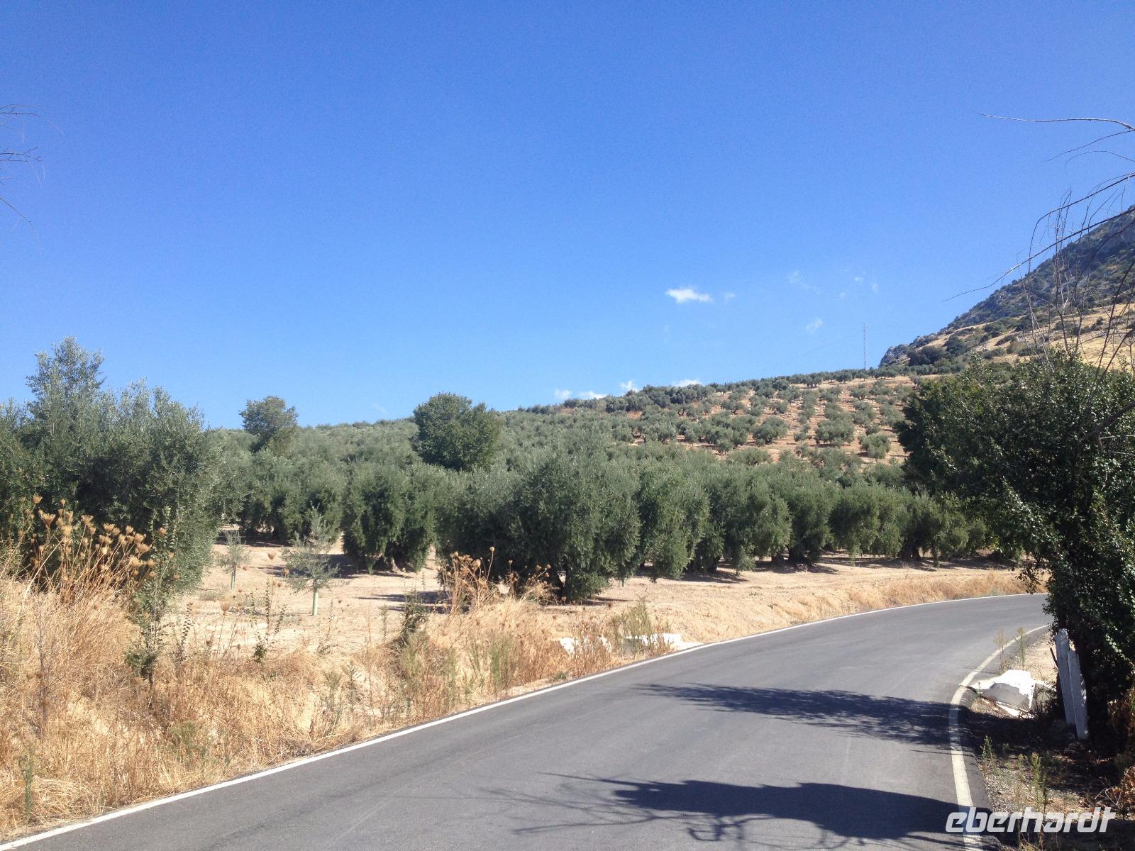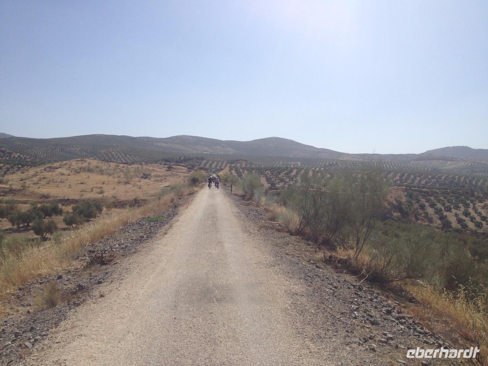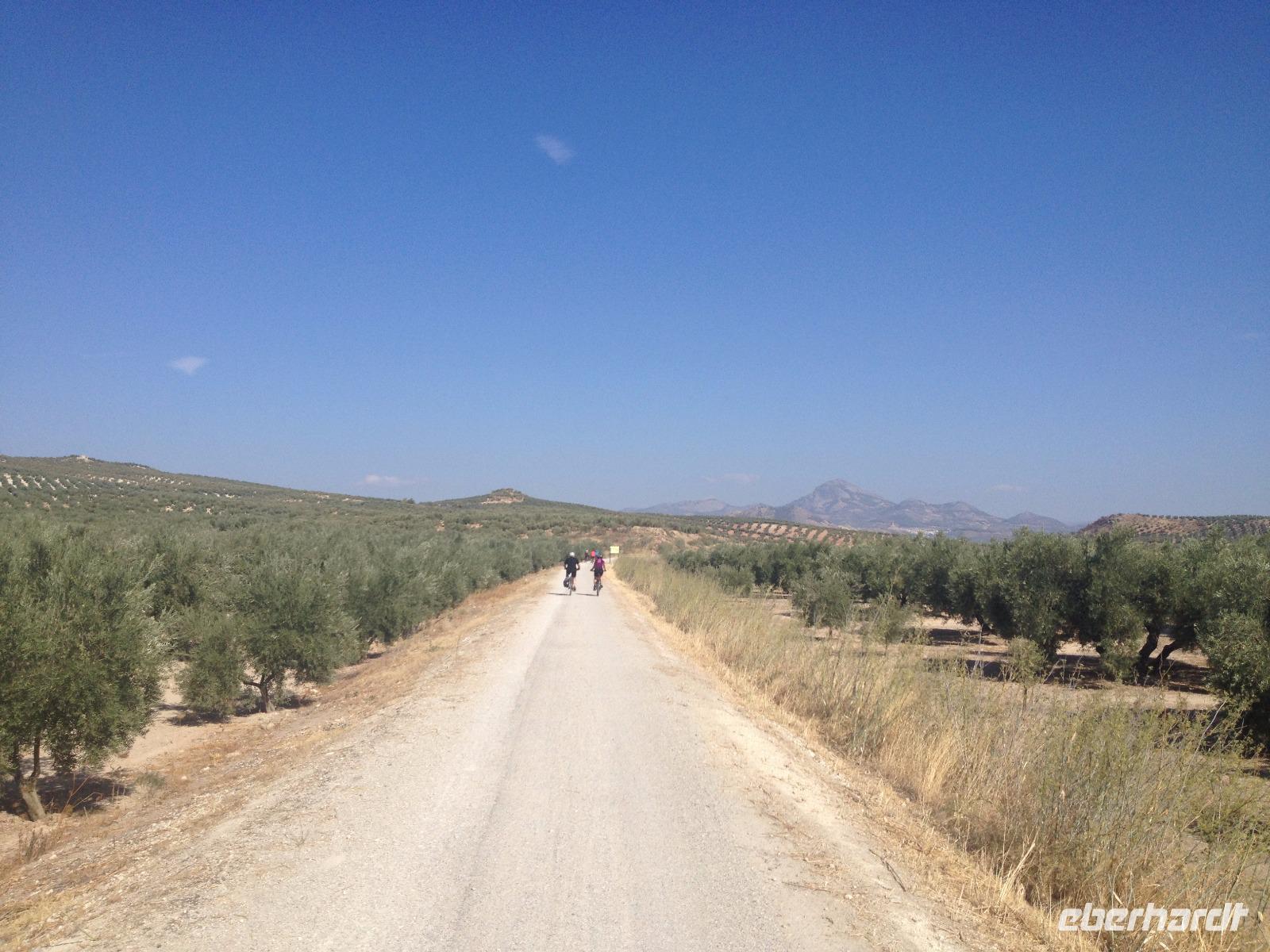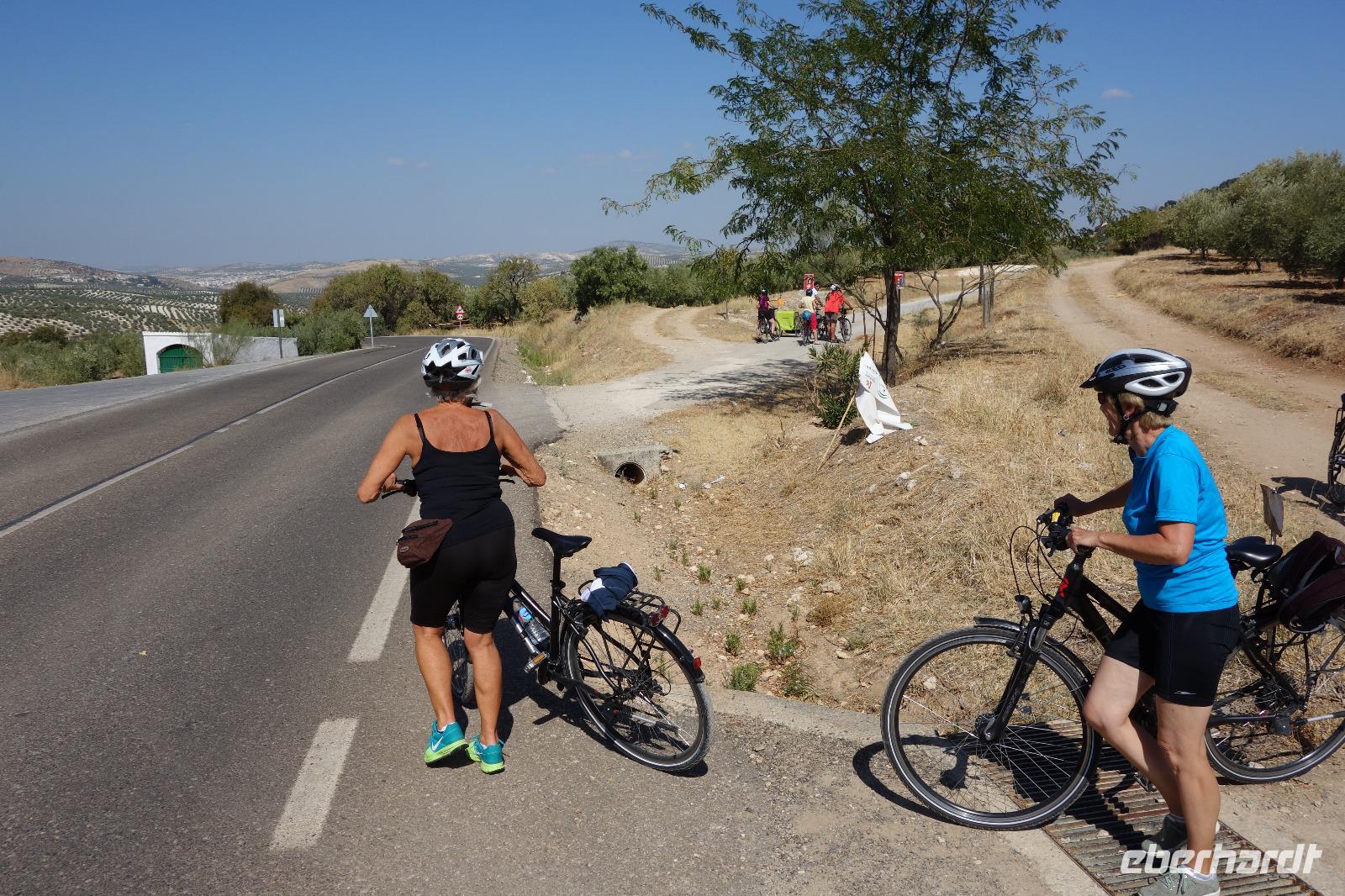 Das Thema des Tages waren Oliven und Olivenöl. Wir fuhren nach Jaén, wo wir unsere Fahrräder ausluden. Dieses Mal führte unser Weg über den Vía Verde del Aceite. Dort fährt man über die großen Olivenbaumplantagen.