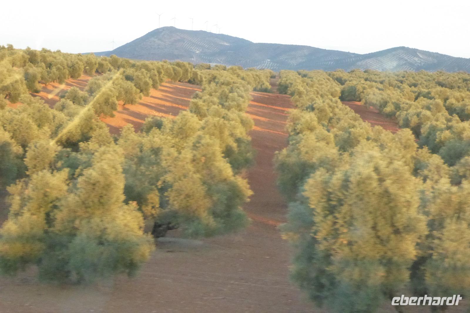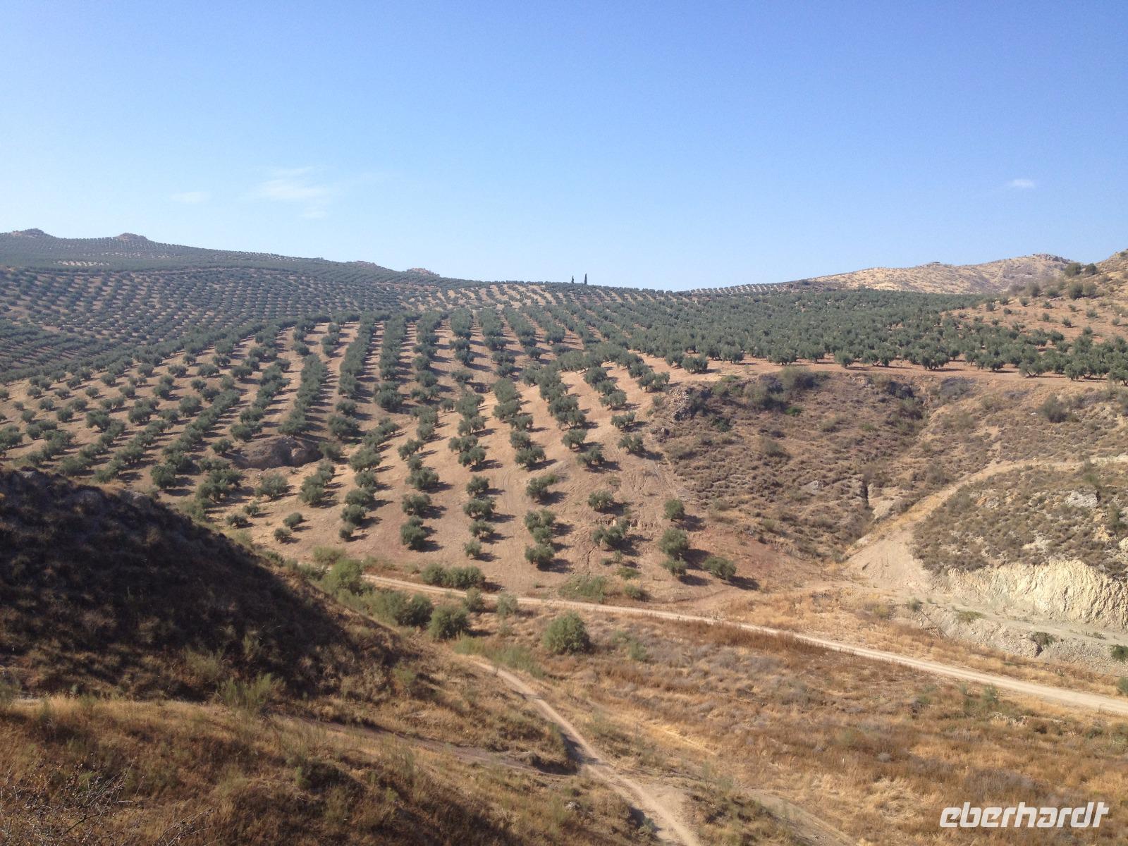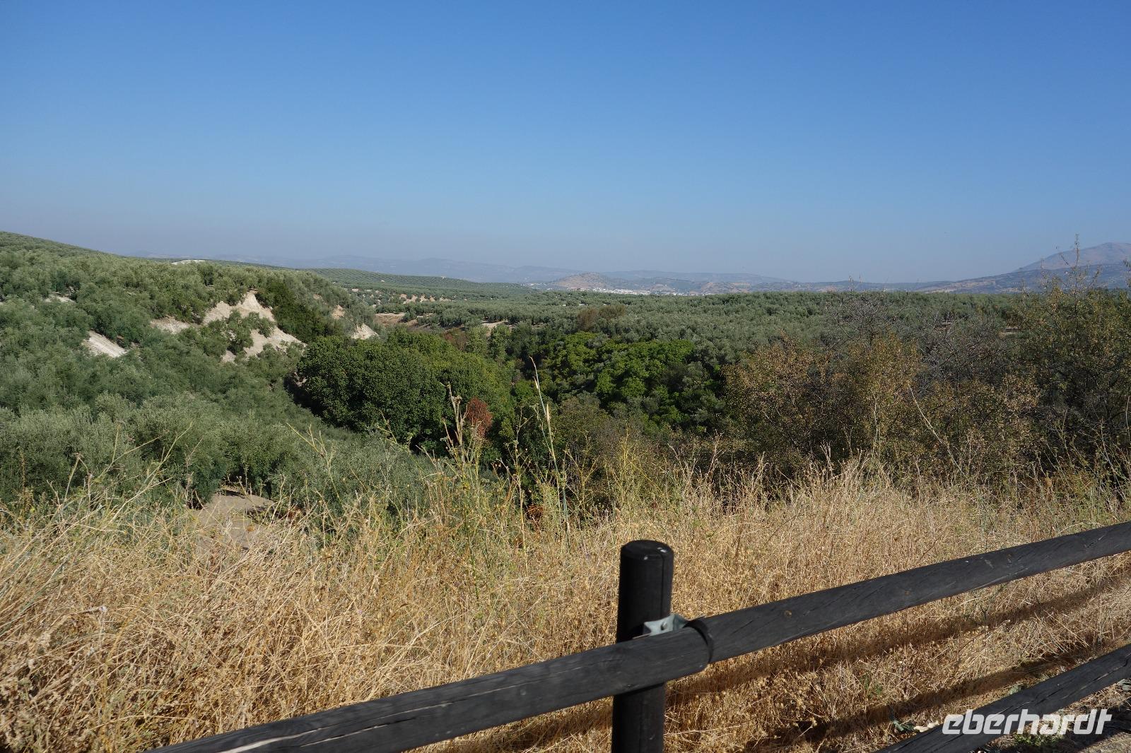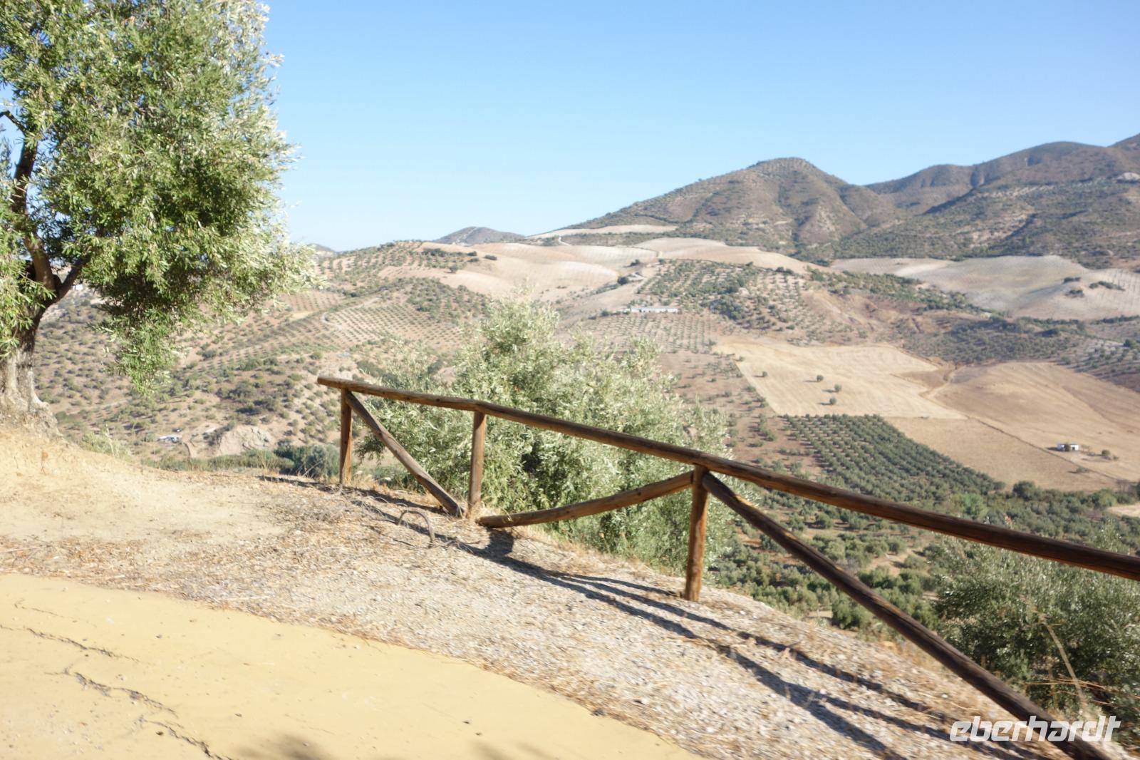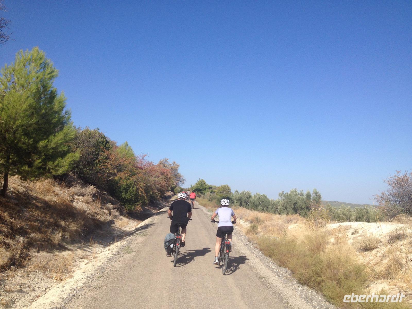 Das Thema des Tages waren Oliven und Olivenöl. Wir fuhren nach Jaén, wo wir unsere Fahrräder ausluden. Dieses Mal führte unser Weg über den Vía Verde del Aceite. Dort fährt man über die großen Olivenbaumplantagen.