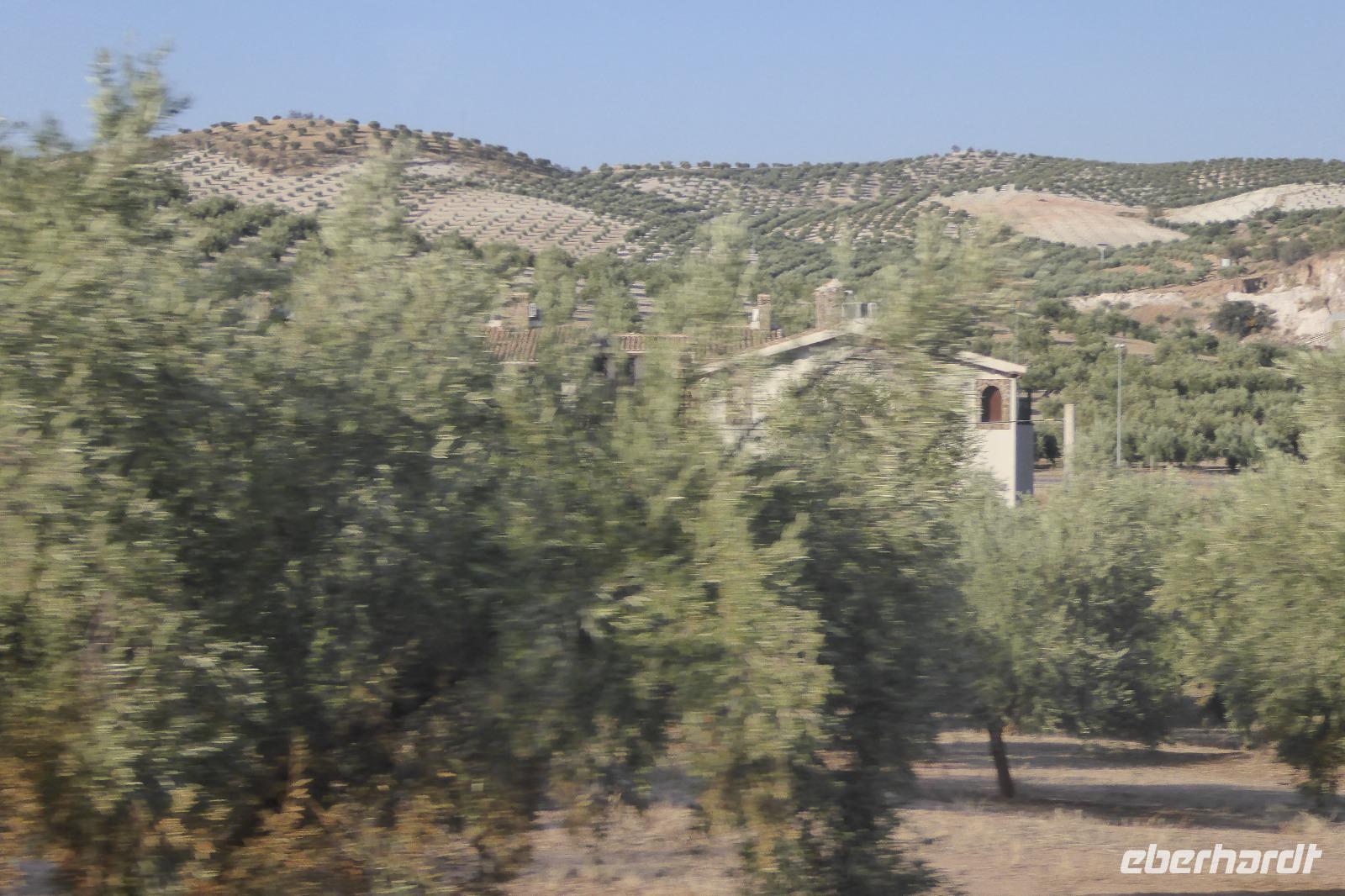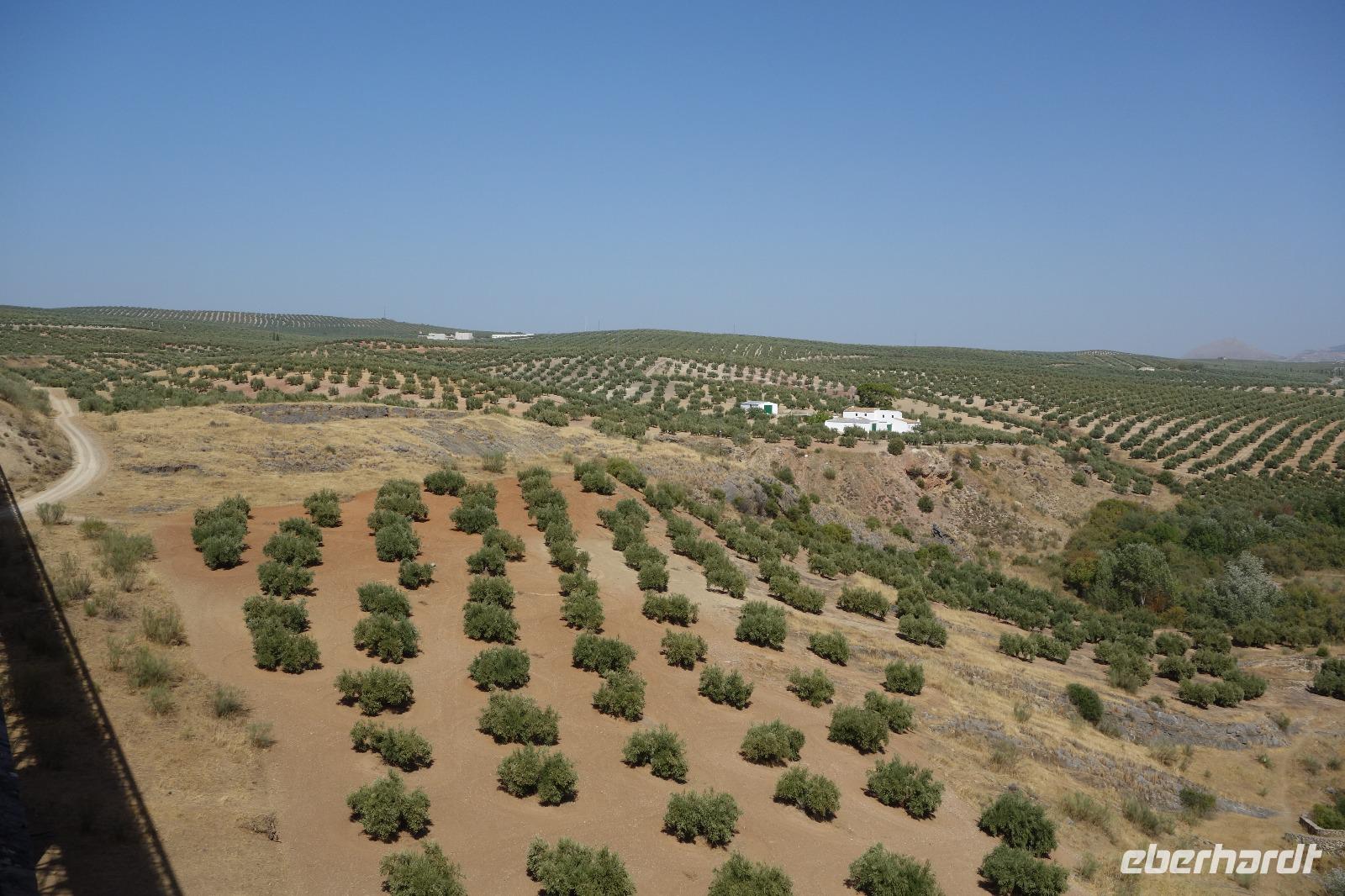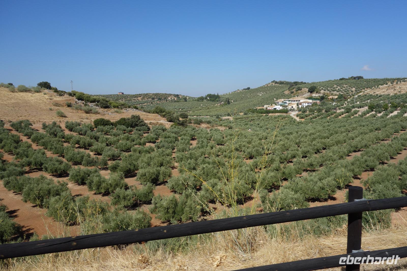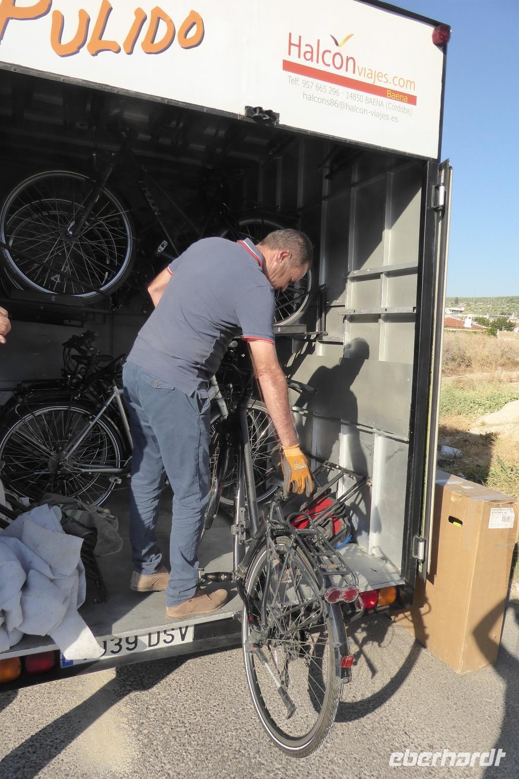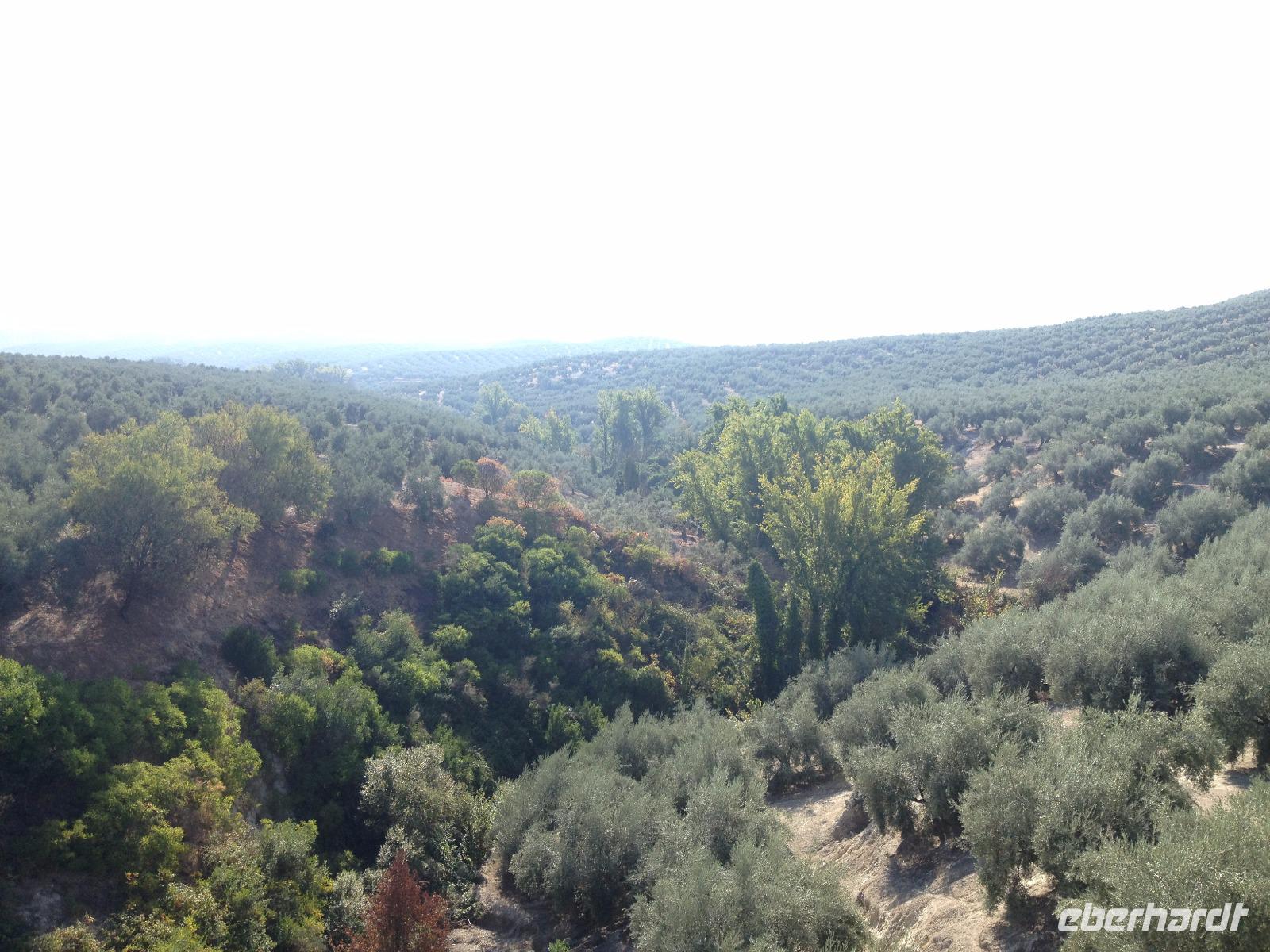 Das Thema des Tages waren Oliven und Olivenöl. Wir fuhren nach Jaén, wo wir unsere Fahrräder ausluden. Dieses Mal führte unser Weg über den Vía Verde del Aceite. Dort fährt man über die großen Olivenbaumplantagen.