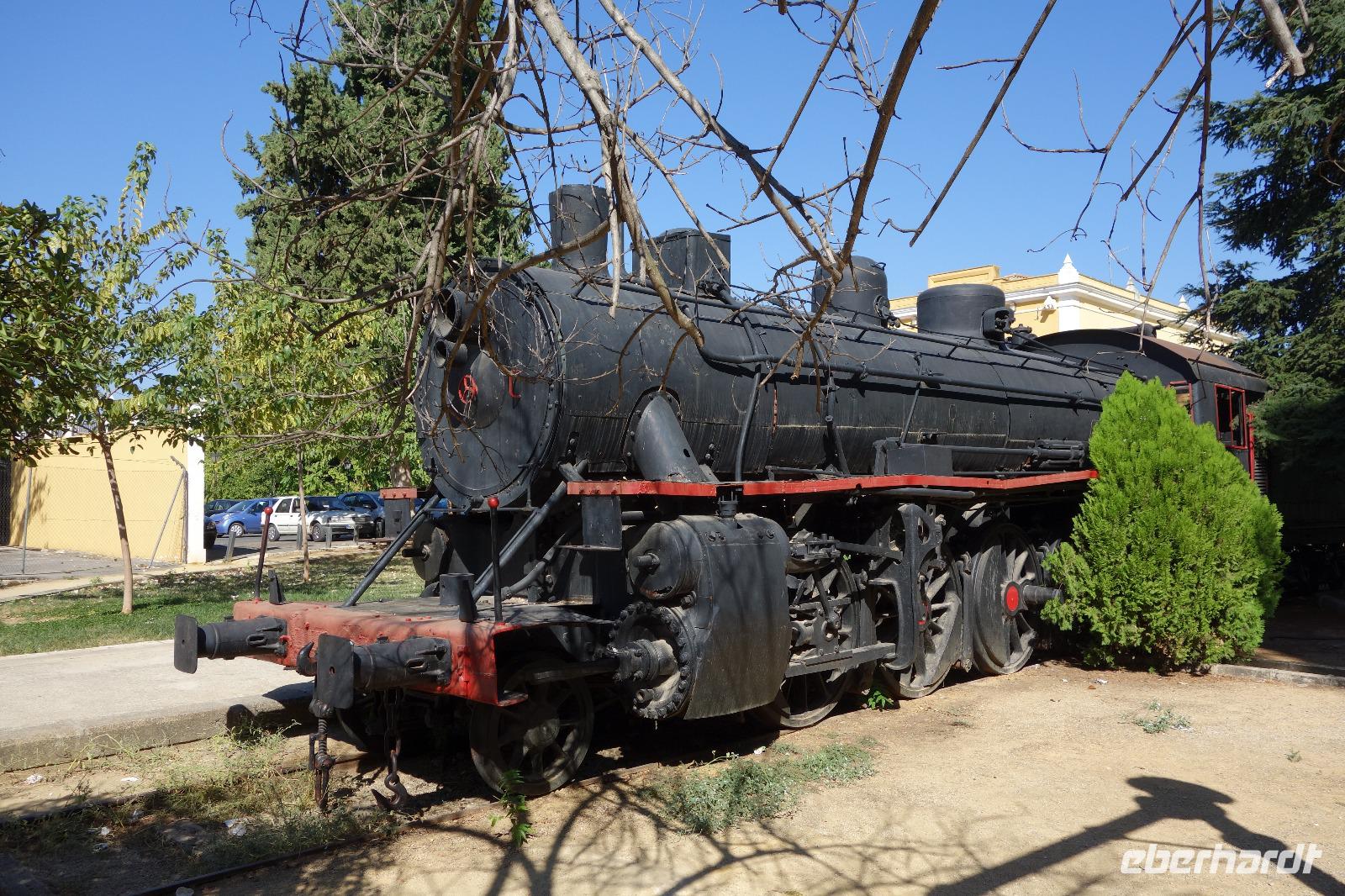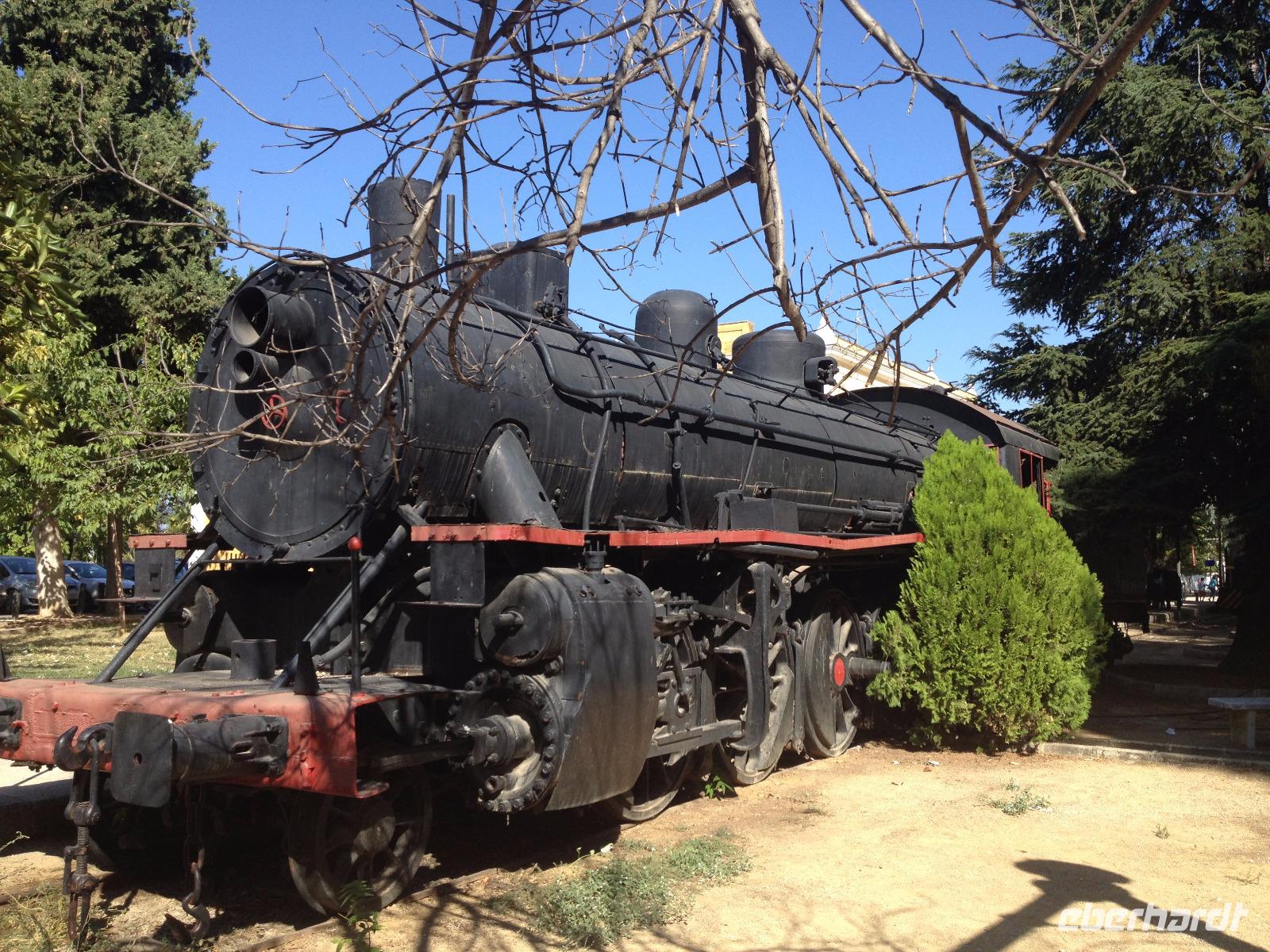 Die erste Pause machten wir in einem alten Bahnhof, wo wir eine alte Dampflock sahen und einen Kaffee bzw. Orangensaft genossen.