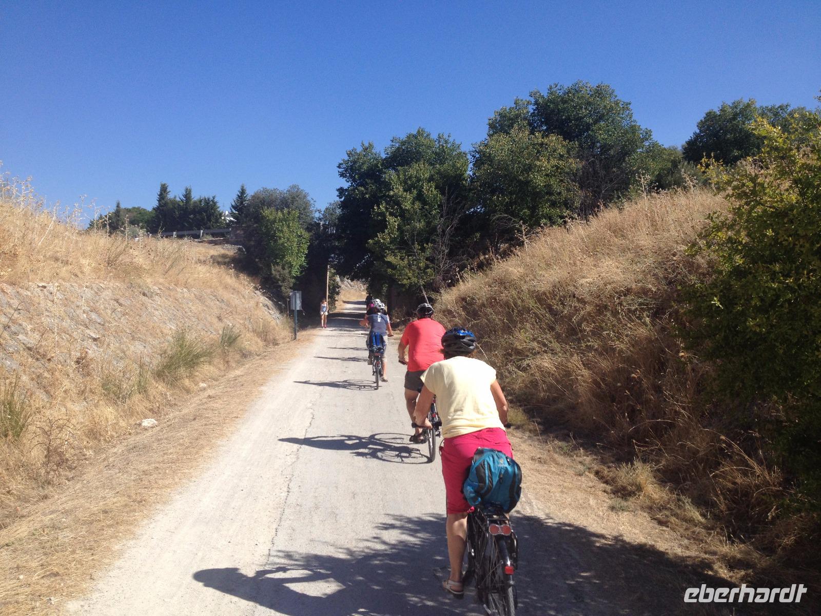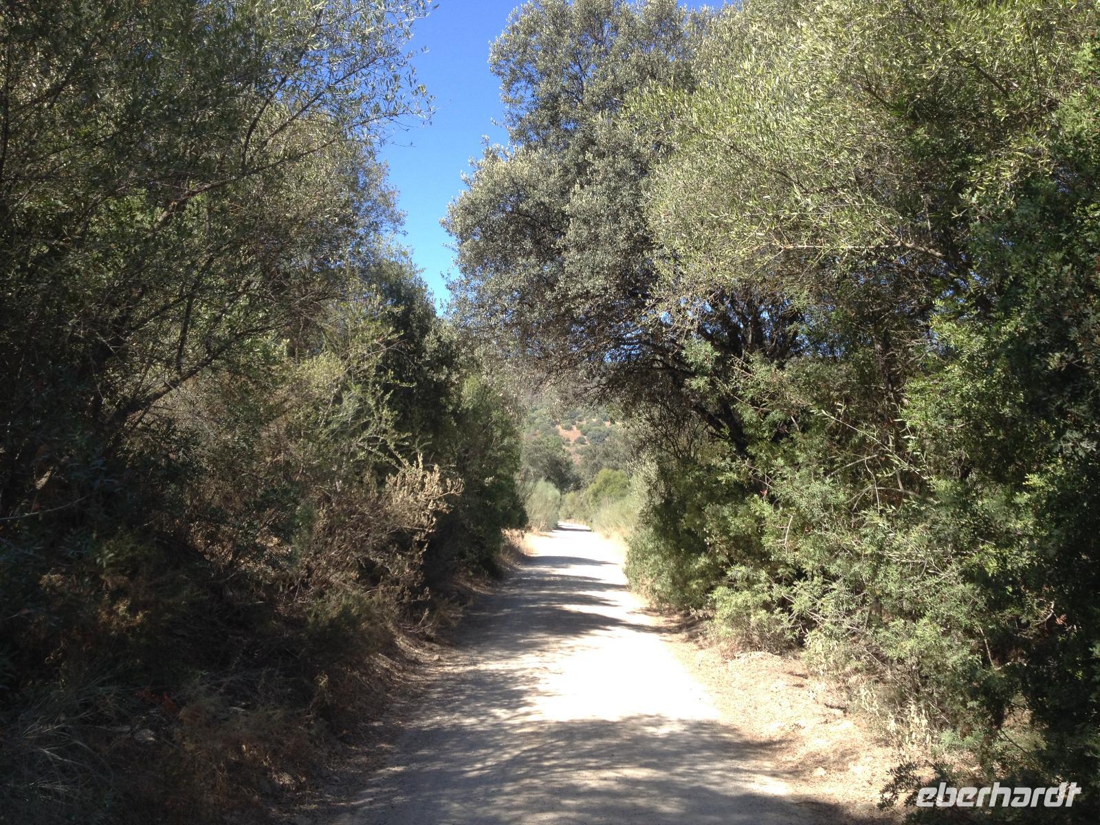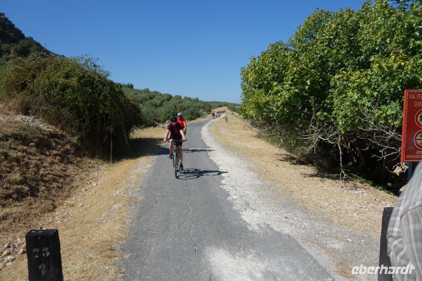 Dann fuhren wir weiter über die alten Eisenbahnlinien, die heutzutage der grüne Weg sind. Auf diesem entdeckten wir viele Olivenbäume, Feigenbäume, Johannesbrotbäume und Steineichen, sowie auch einige Avocados oder Orangenbäume.