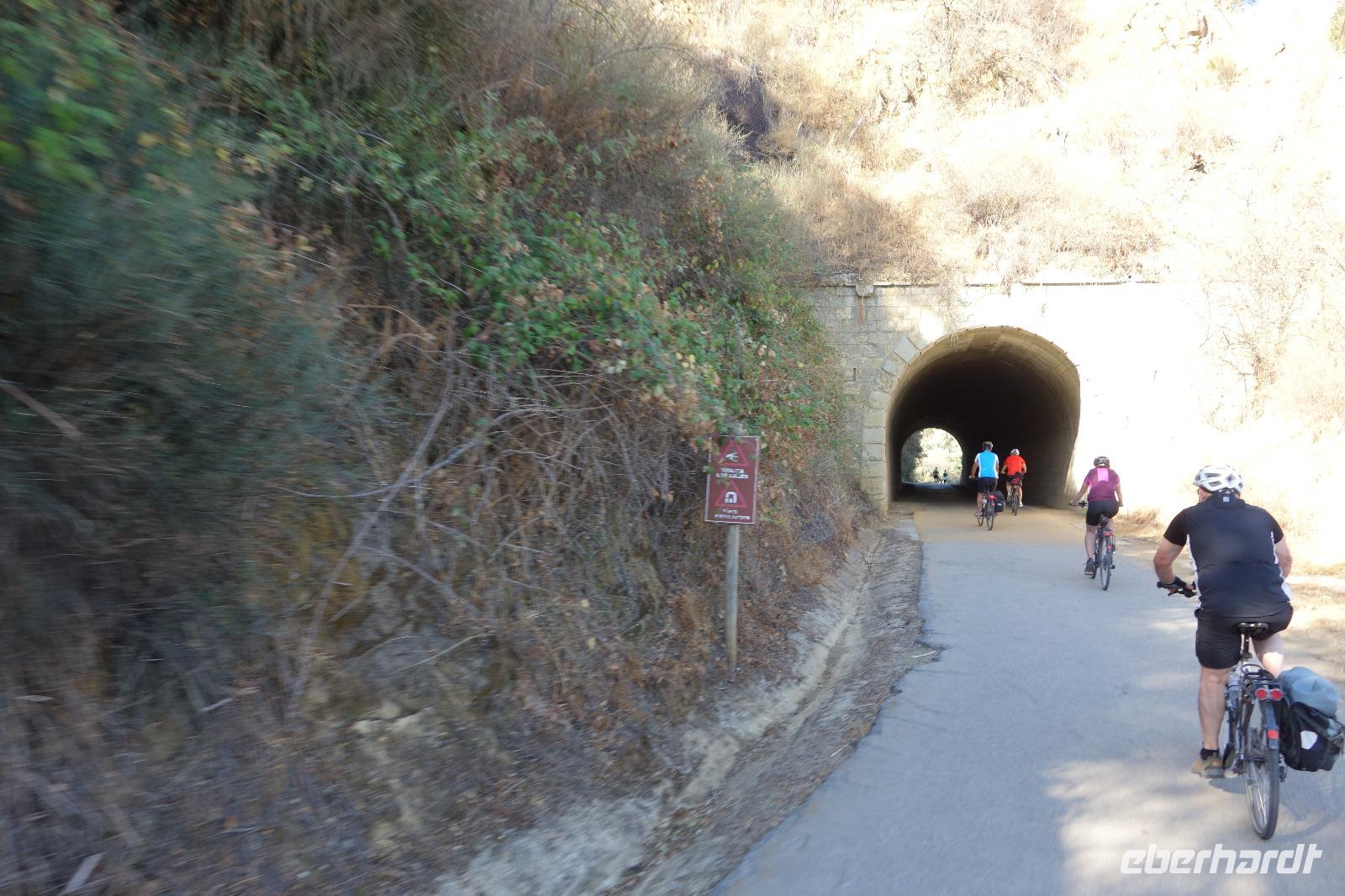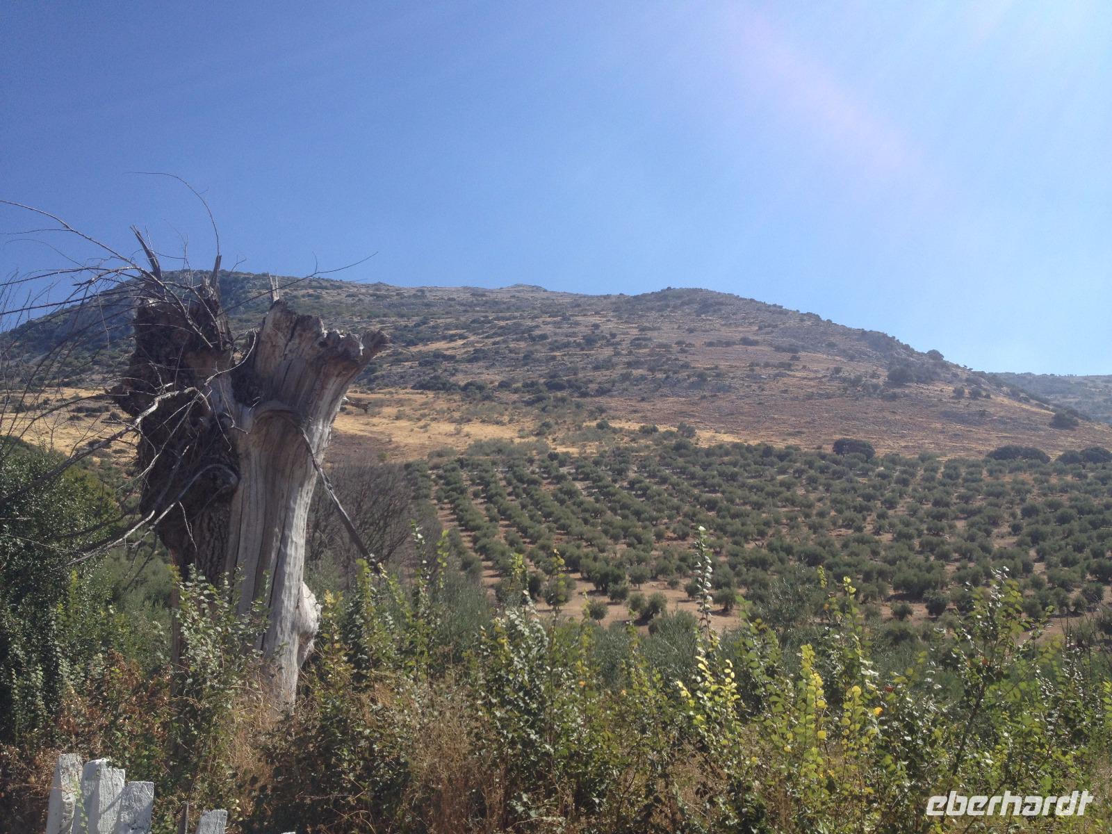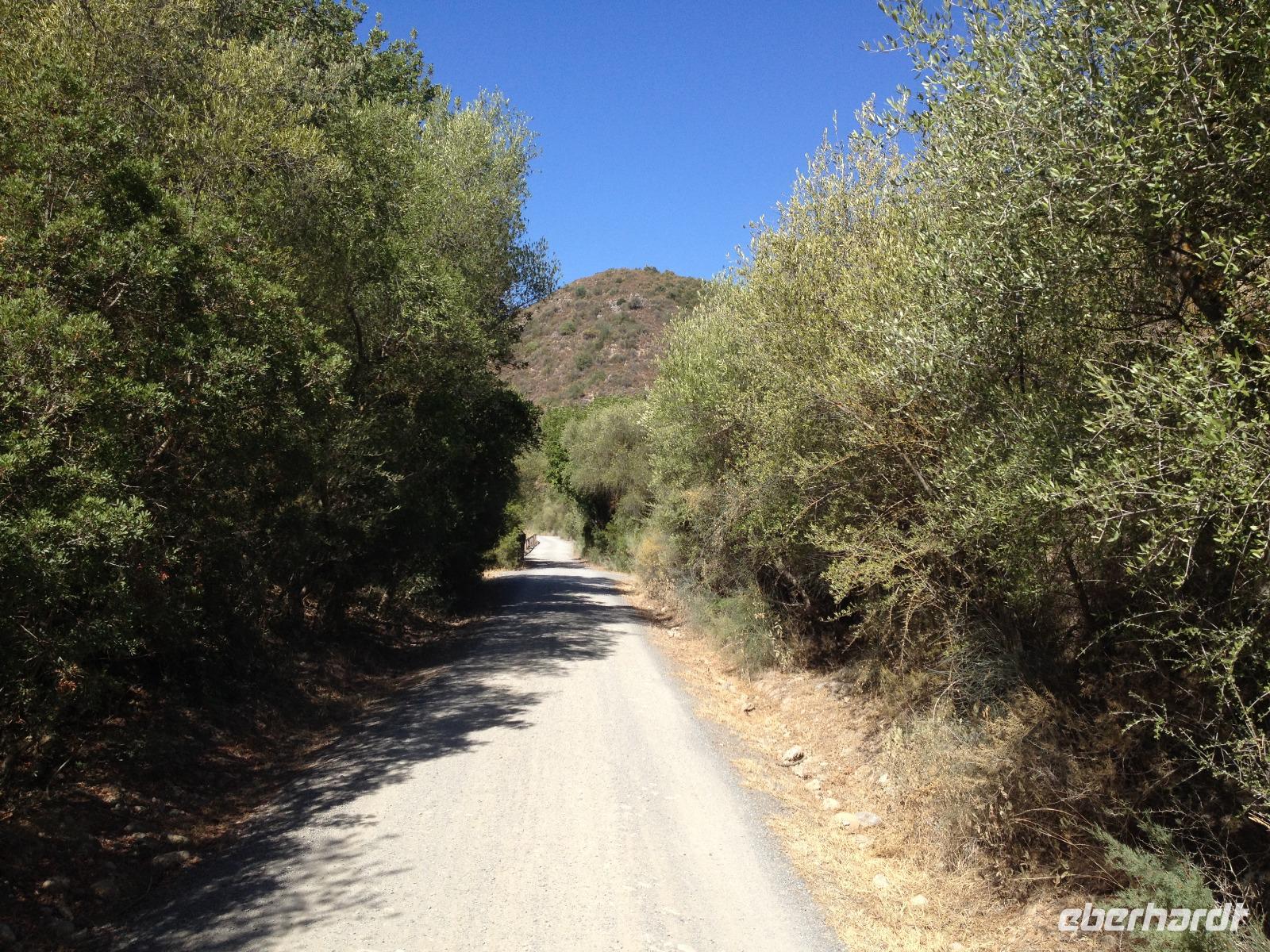 Dann fuhren wir weiter über die alten Eisenbahnlinien, die heutzutage der grüne Weg sind. Auf diesem entdeckten wir viele Olivenbäume, Feigenbäume, Johannesbrotbäume und Steineichen, sowie auch einige Avocados oder Orangenbäume.