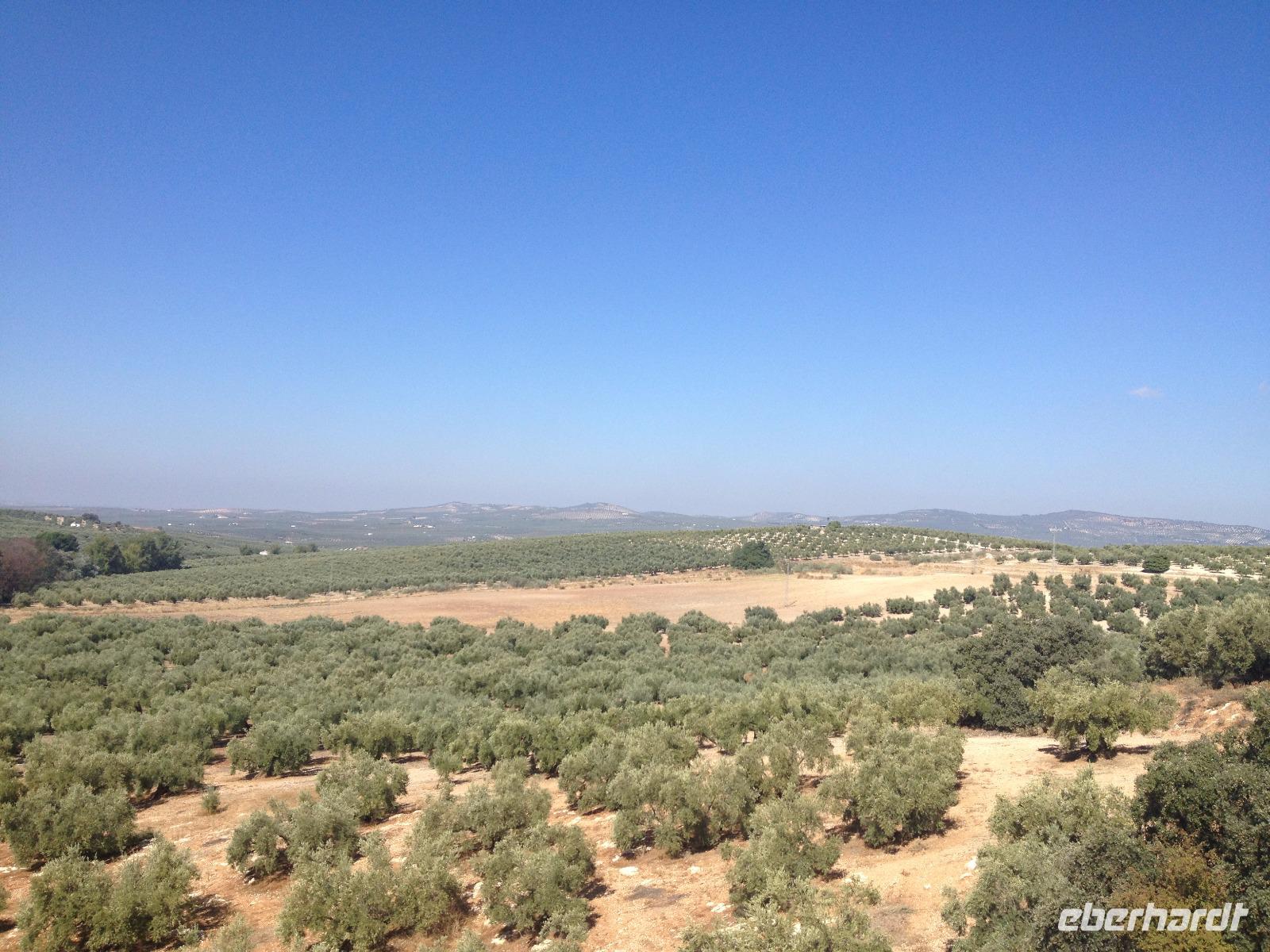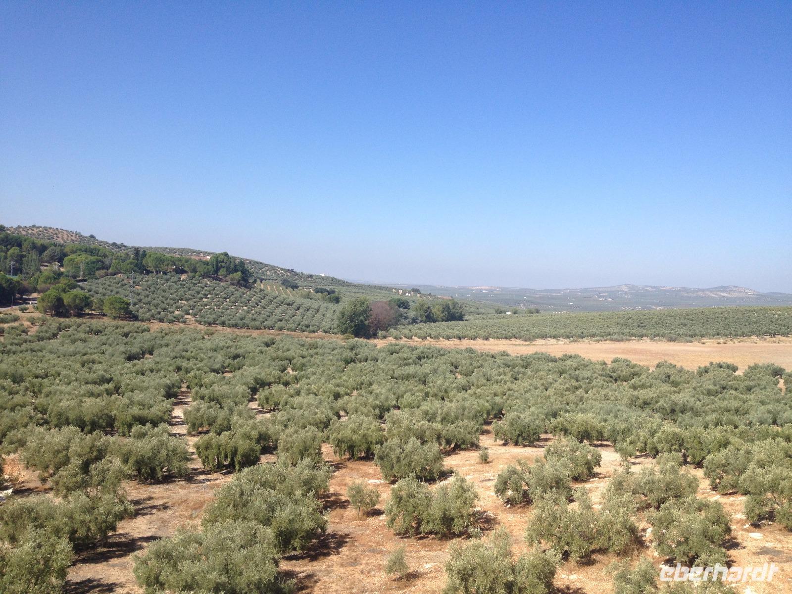 Wir fuhren unter der Sonne gen West. Das erste Dorf, welches wir auf unserem Weg erreichten, war Torre del Campo. Dann ging es weiter über Torre del Campo über Torre Don Jimeno nach Martos, um dort unser Picknick abzuholen und eine leckeres Mittagsessen zwischen den Olivenbäumen zu genießen. Auf unserem Weg zählte Salke die Oliven. Wir sahen viele Kaninchen, Hasen und Vögel zwischen den Olivenbäumen.