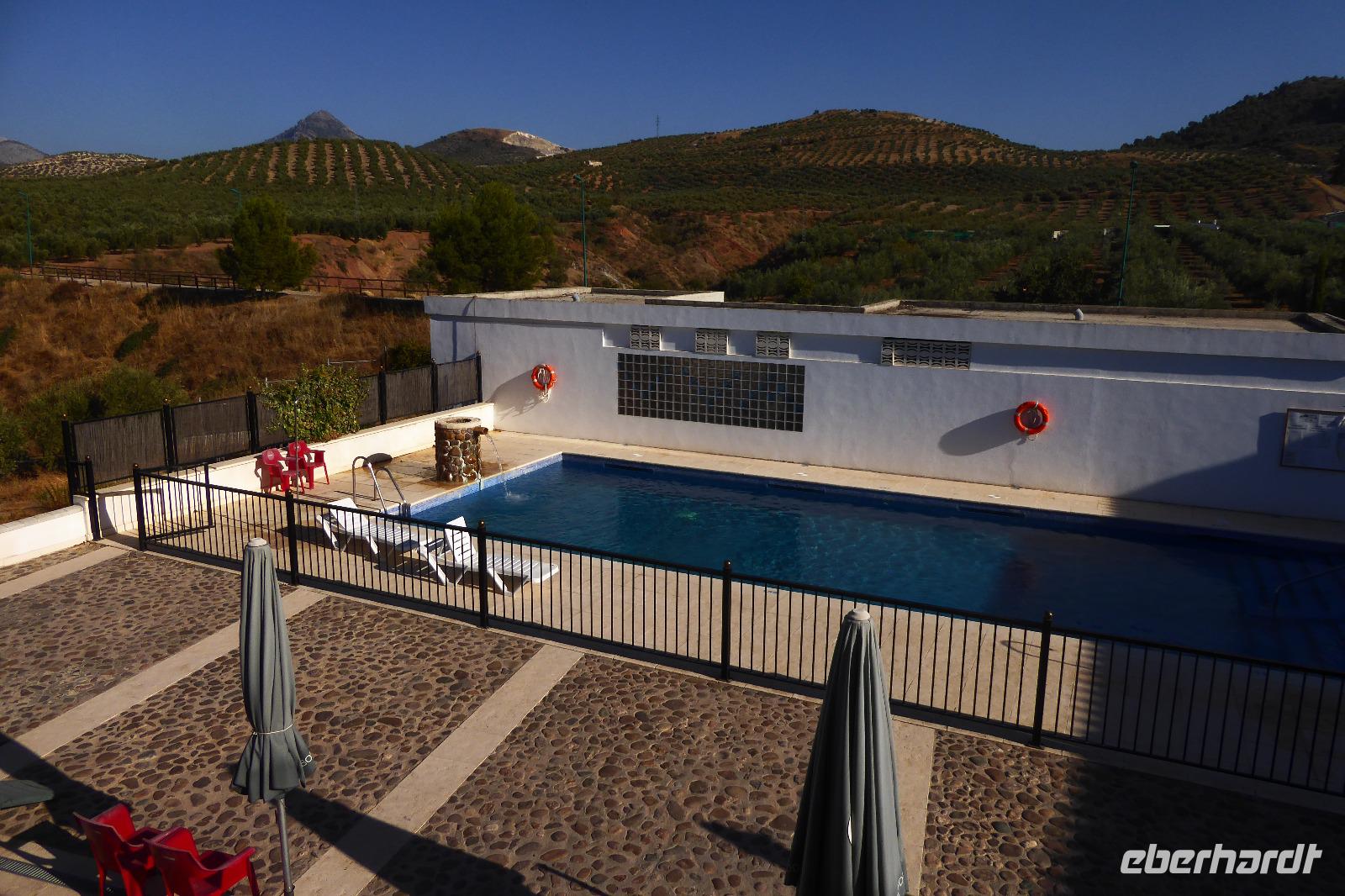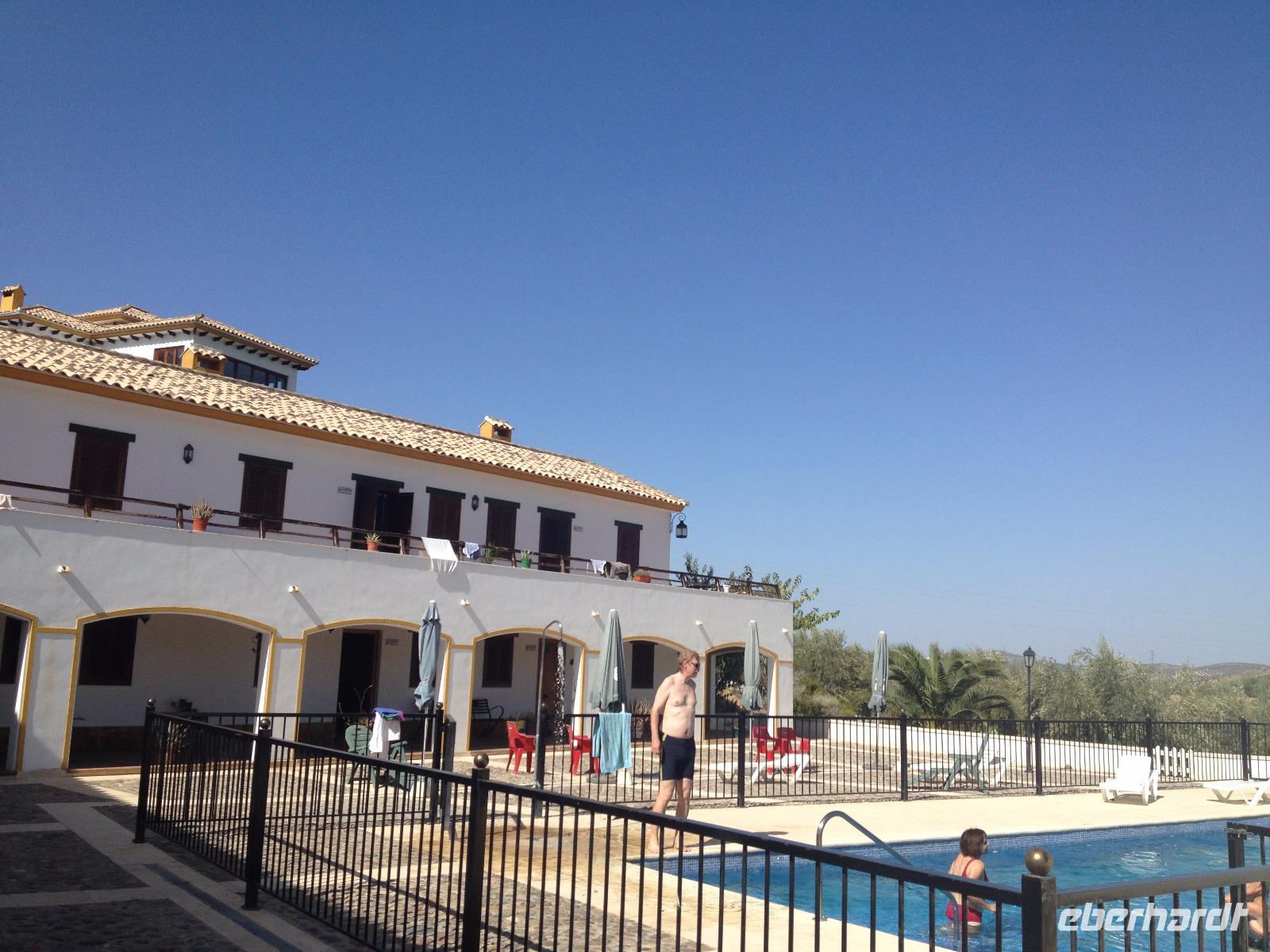 Im Hotel genossen wir ein gutes spanisches Menü und einige von uns nahmen danach noch ein Bad im Pool. Die Ruhe der Landschaft zwischen den Olivenbäumen brachte uns die nötige Entspannung.
