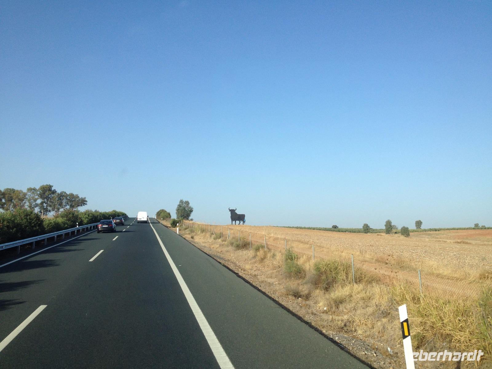 Auf unserem Weg sahen wir verschiedene Fincas mit Stieren, El Toro Bravo!